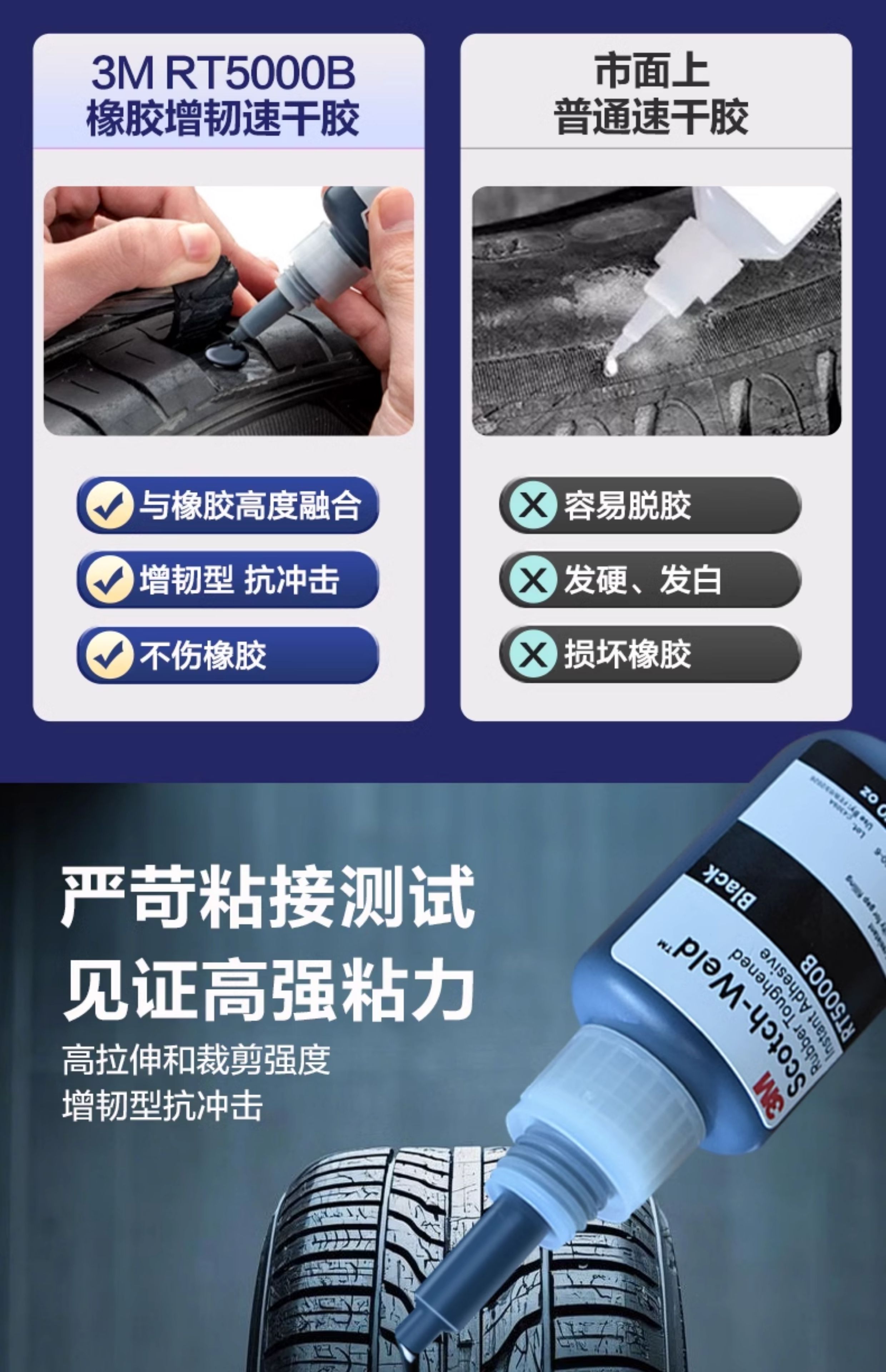 正品3M 4799L汽车轮胎修补胶修复侧面胶水黑色强力耐高温粘接汽车密封条轮胎刮伤破皮橡胶1099胶粘剂适用金属