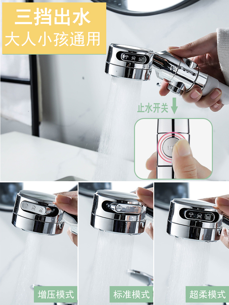 多档家用淋浴增压花洒喷头加压浴室热水器淋雨花酒莲蓬头洗澡套装