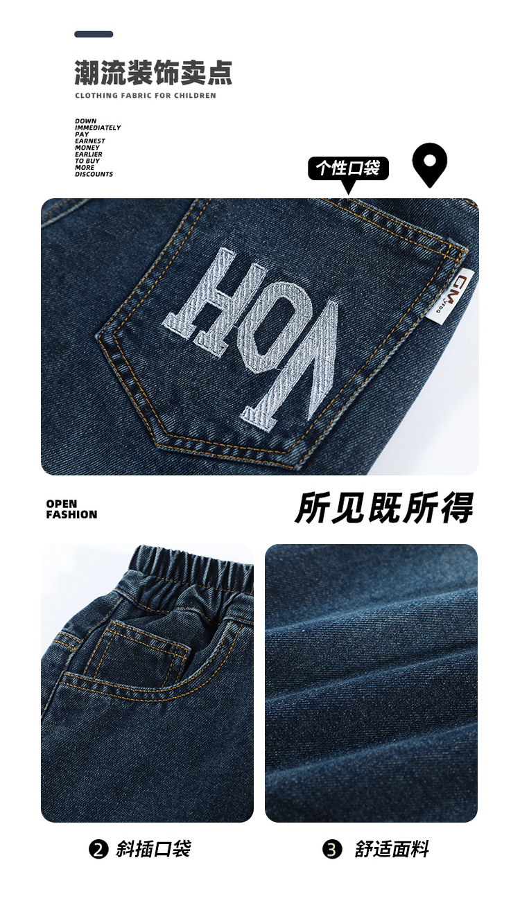 男童裤子春秋款复古软牛仔裤2025新款儿童春季耐磨长裤潮