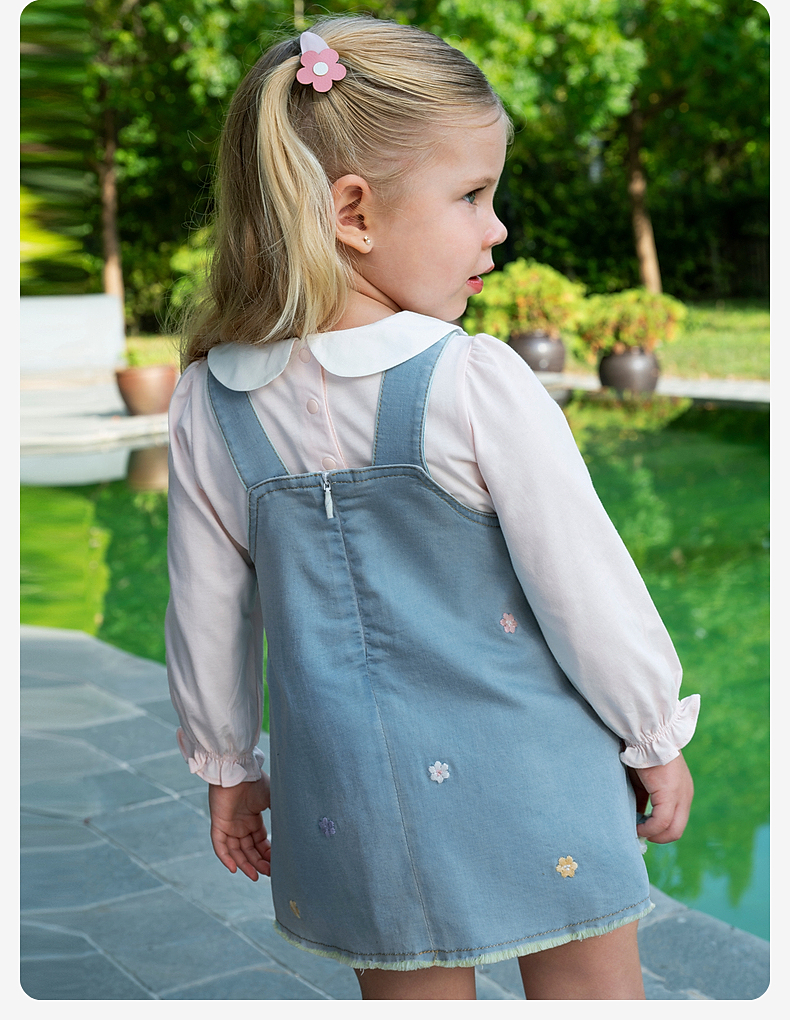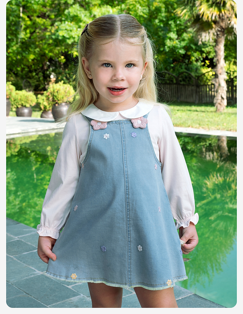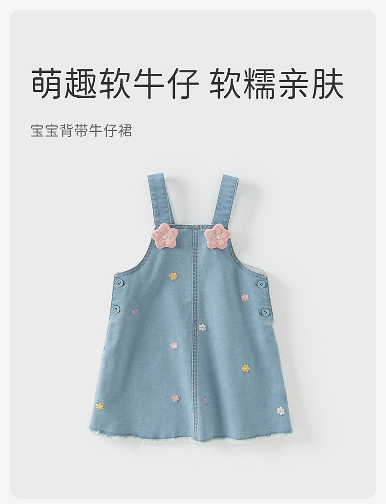 戴维贝拉儿童牛仔背带裙2025春装新款女童宝宝甜美裙子连衣裙童装