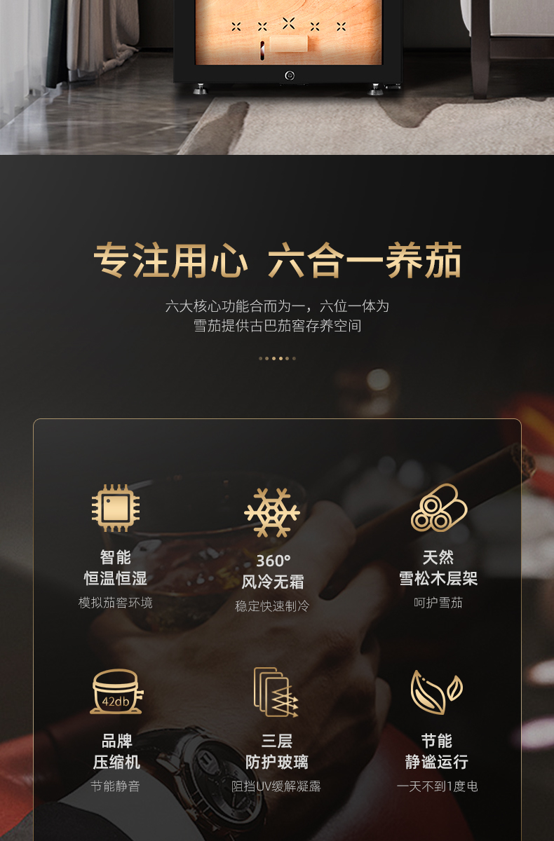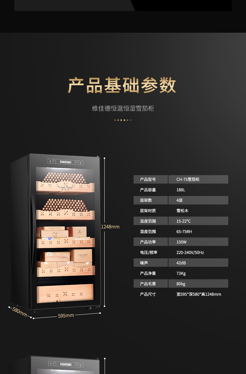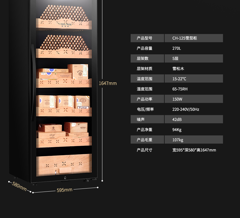 VINGARDE/维佳德CH-125雪茄柜恒温恒湿红酒一体柜雪松木冷储存柜