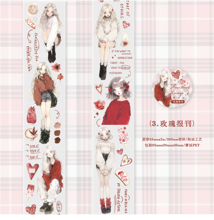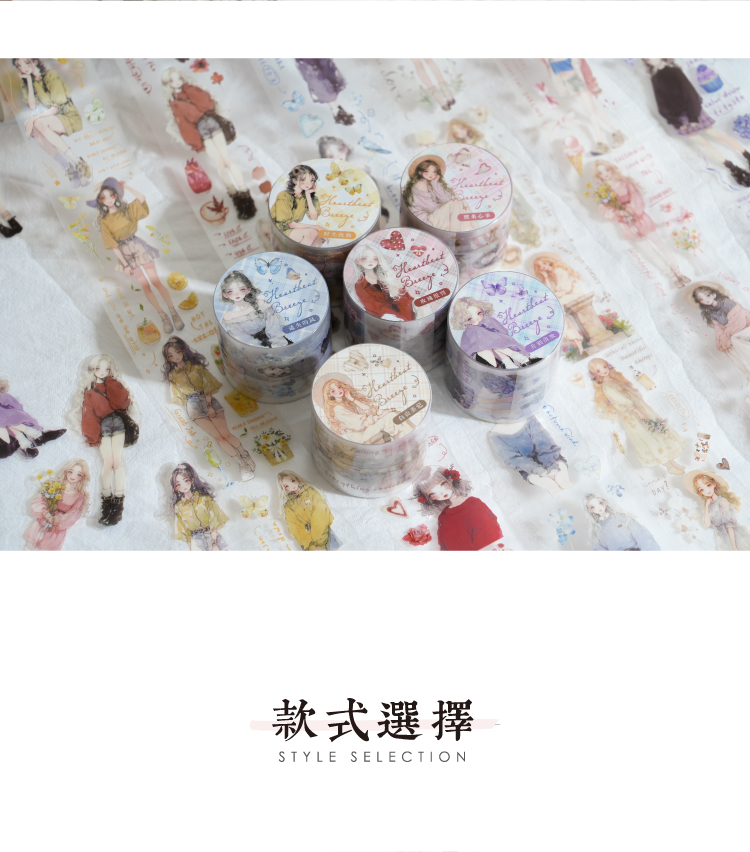 心动晚风特油雾面PET胶带盐系少女人物素材手帐拼贴装饰diy贴画