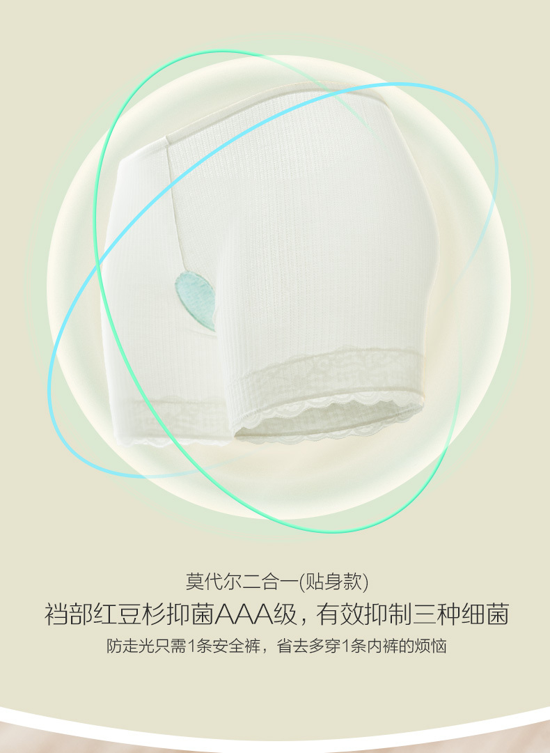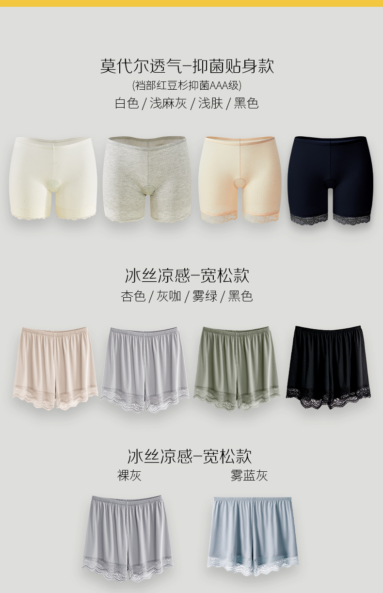 红豆女士安全裤防走光莫代尔蕾丝不卷边抗菌裆宽松打底裤1条装