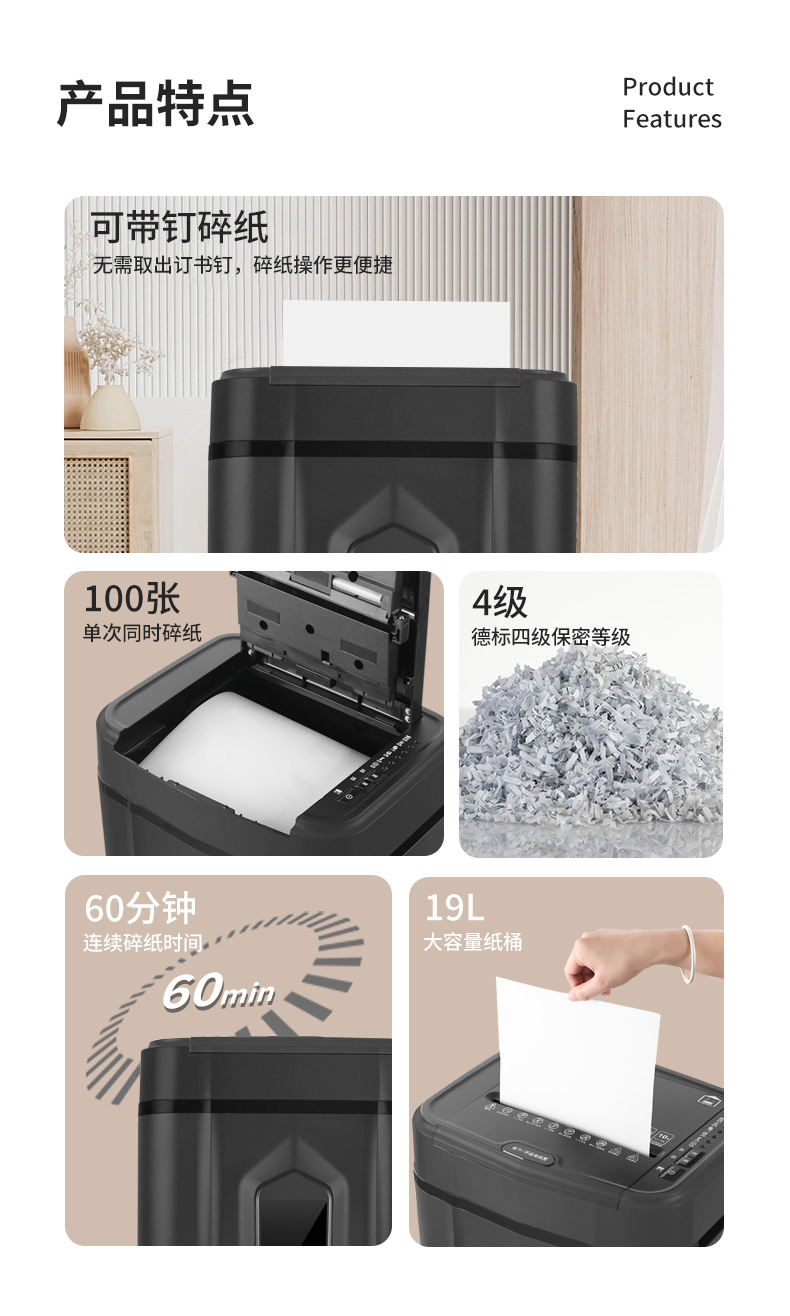 震旦AURORA碎纸机办公全自动文件粉碎机废纸电动碎纸神器大型大功率大容量高专业保密碎卡碎光盘粒状AS80CD