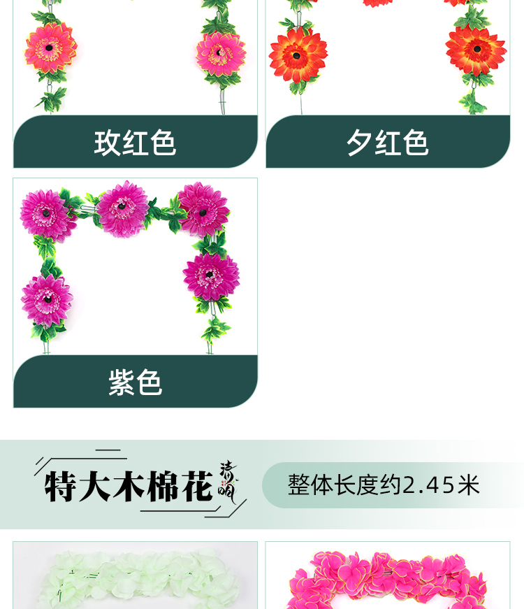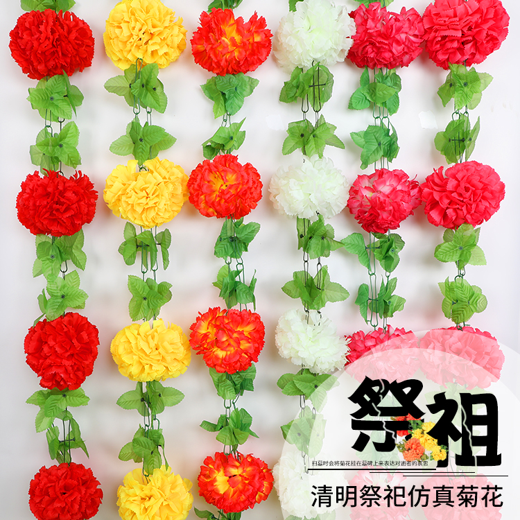 仿真菊花条假花藤条墓地扫墓碑祭祀挂花装饰绢花塑料拉花清明祭奠
