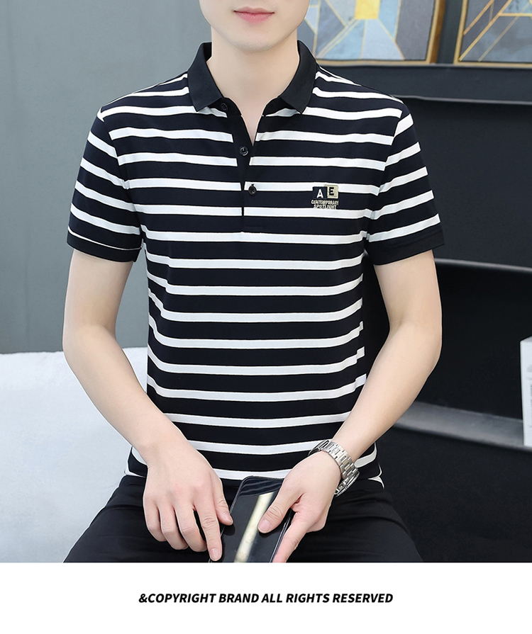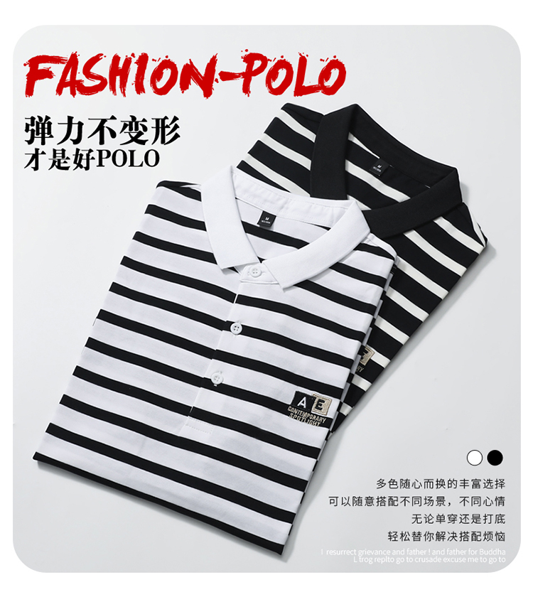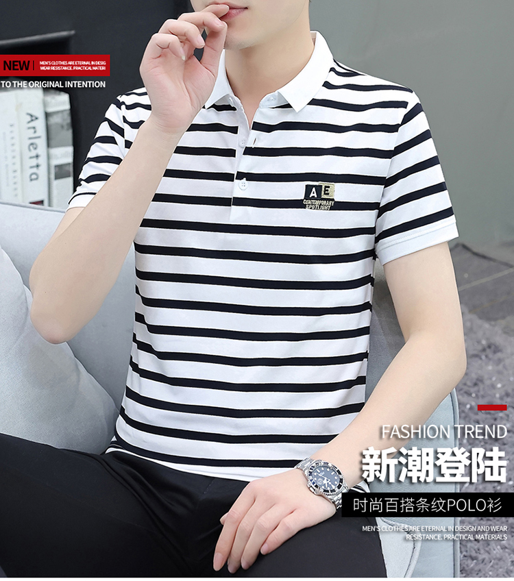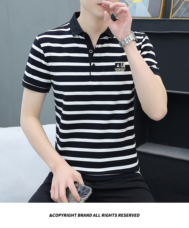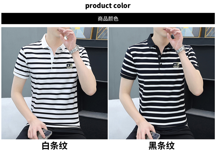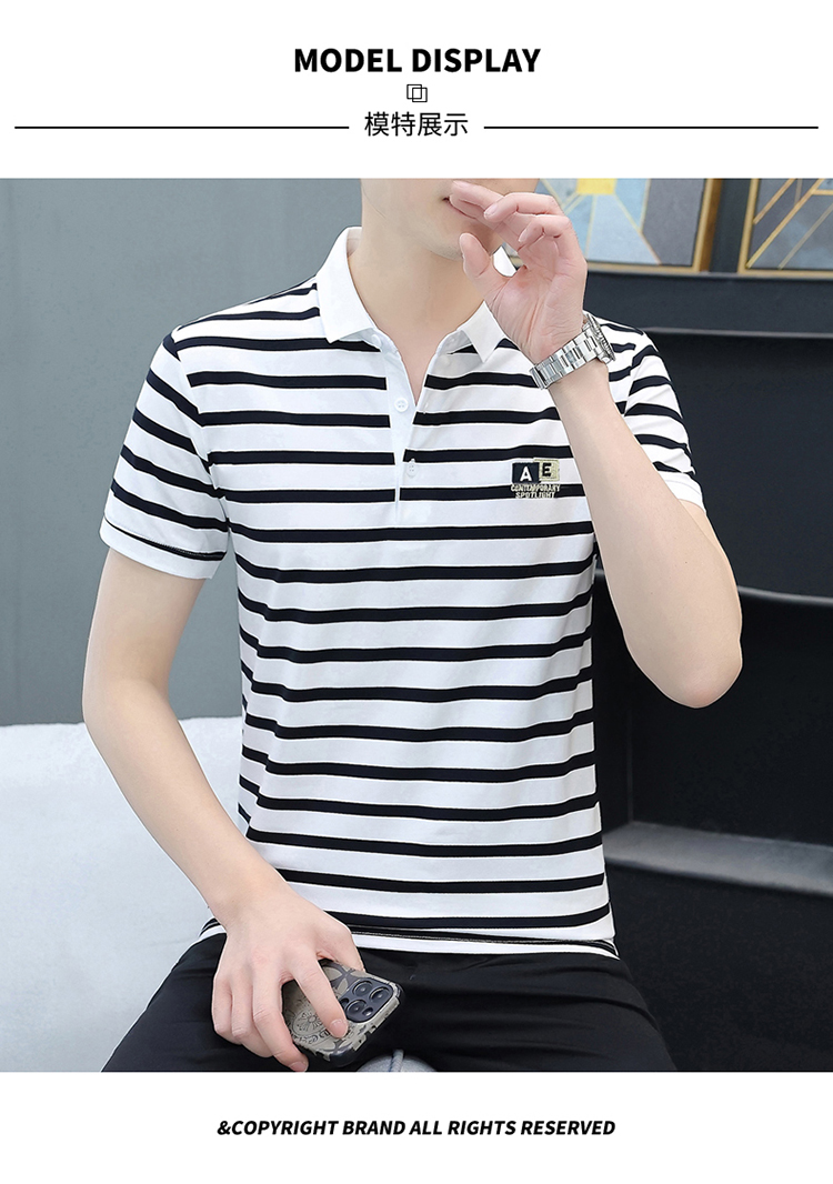 夏季男士翻领条纹短袖T恤纯棉polo衫高级感修身男装休闲半袖体恤
