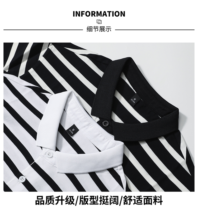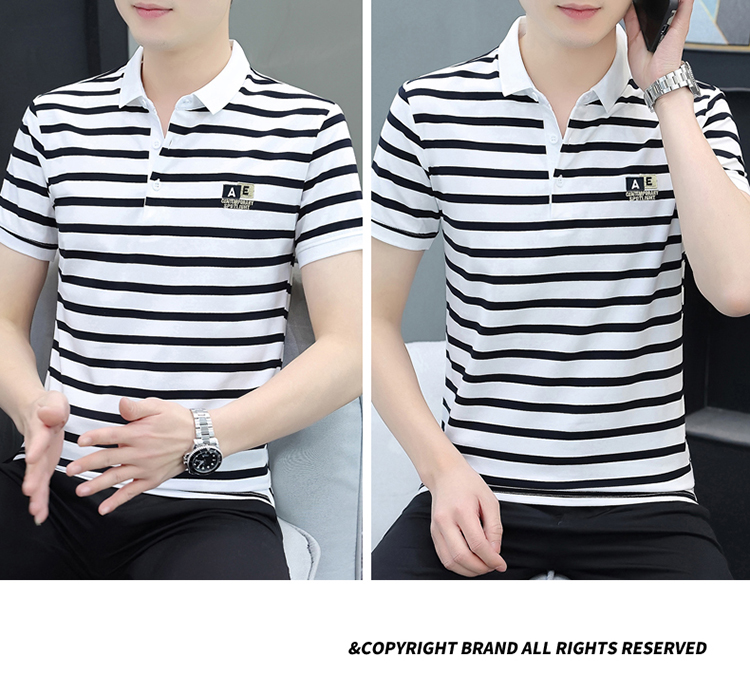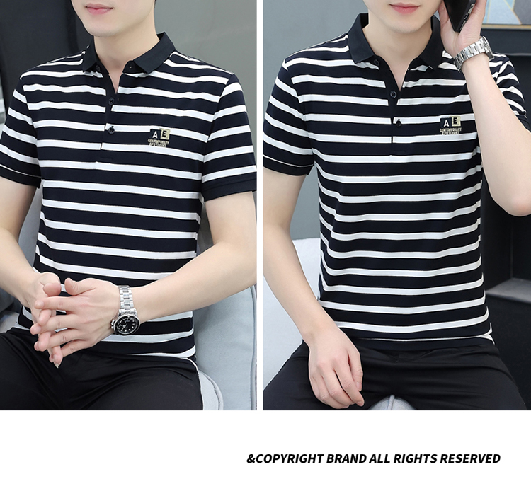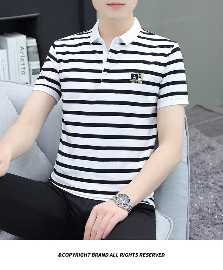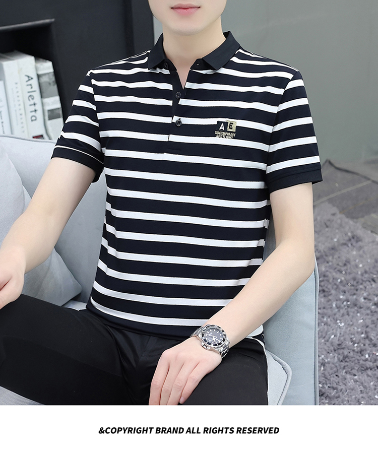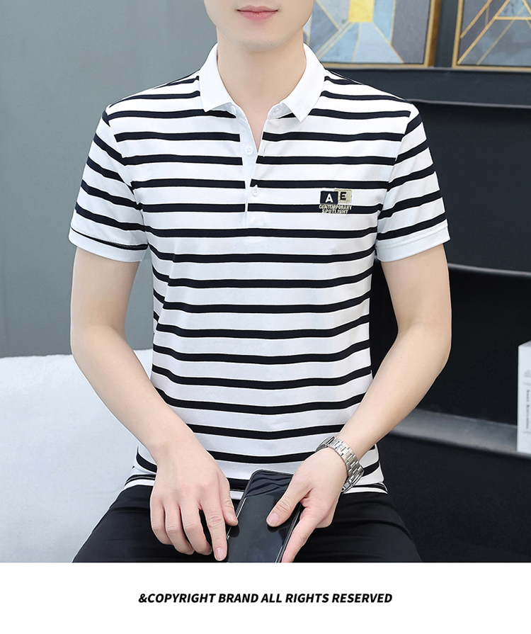 夏季男士翻领条纹短袖T恤纯棉polo衫高级感修身男装休闲半袖体恤