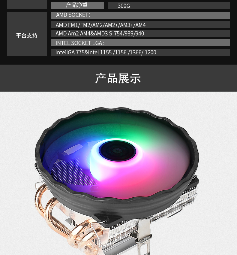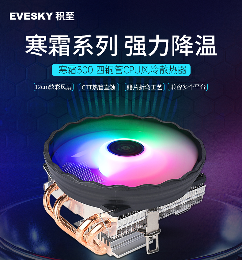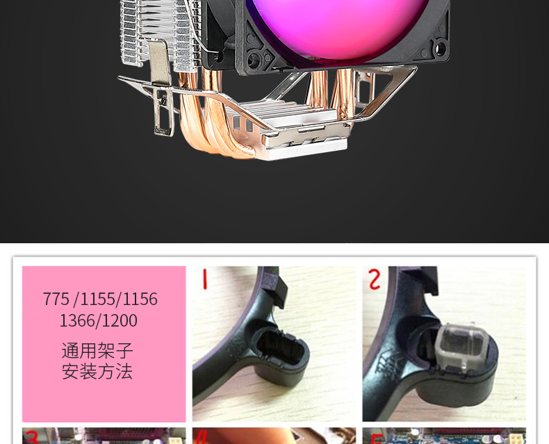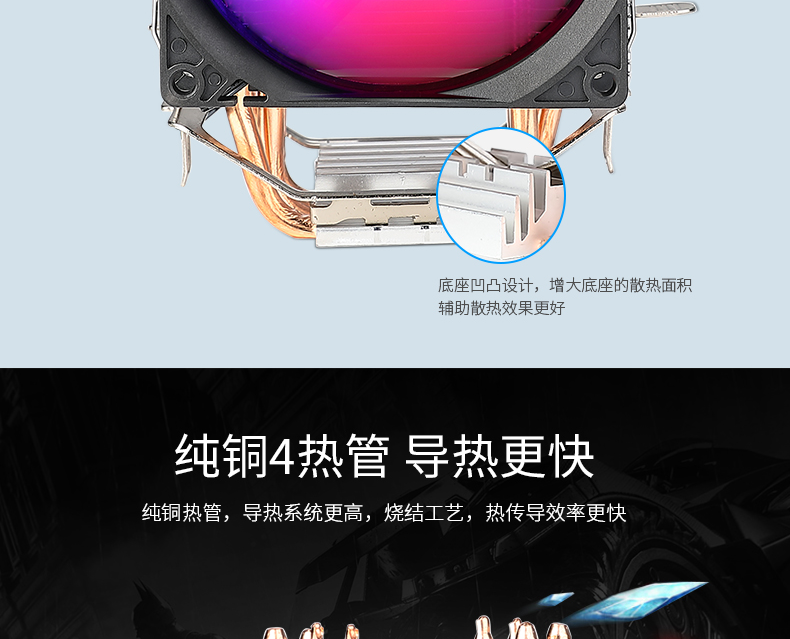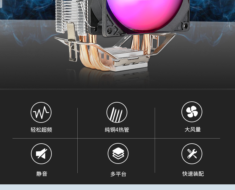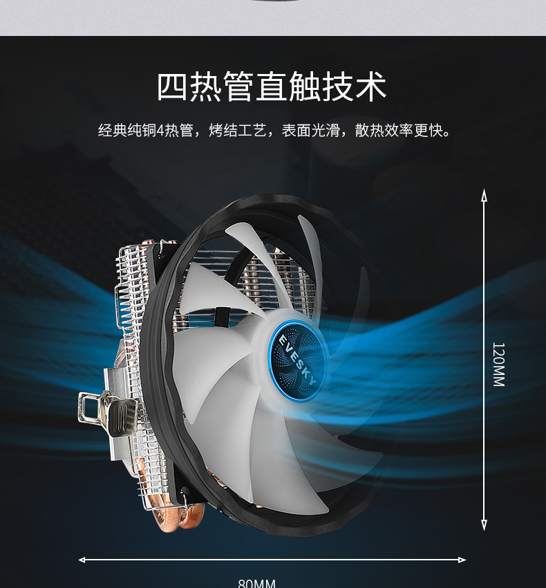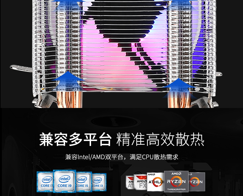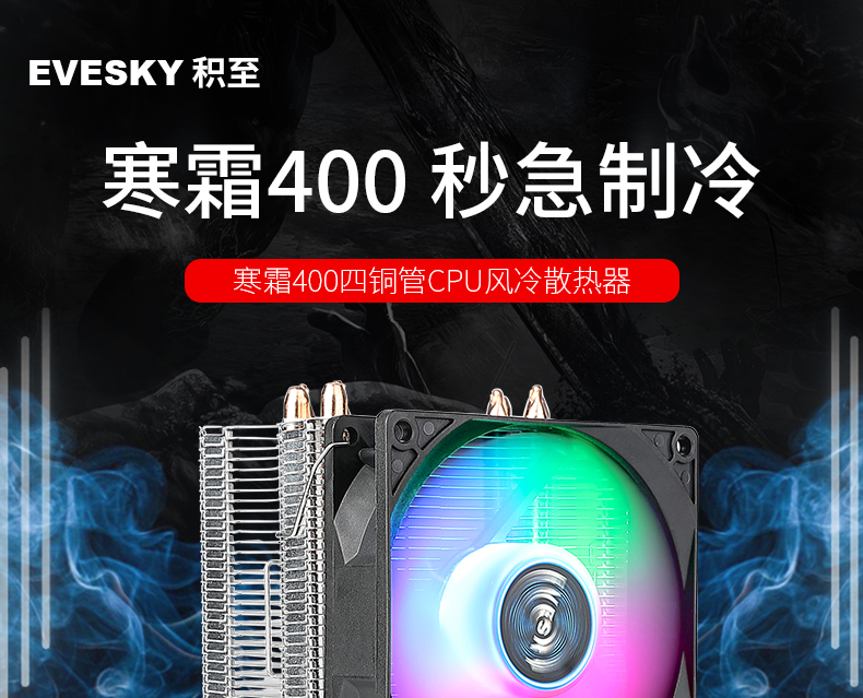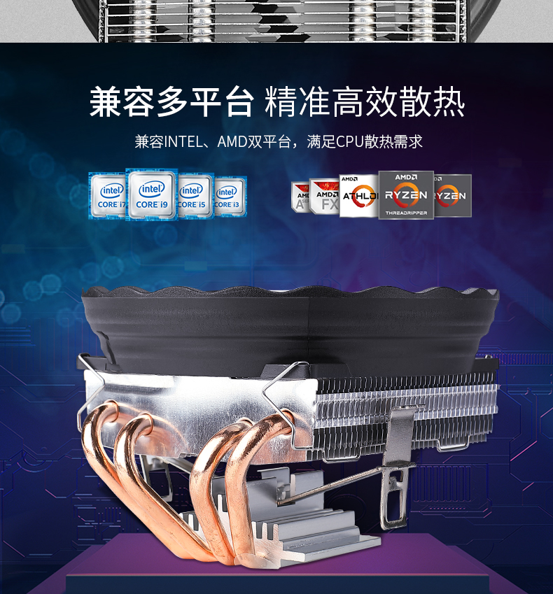 寒霜400 cpu散热器主机风扇4铜管1155静音amd台式电脑AM4散热风扇