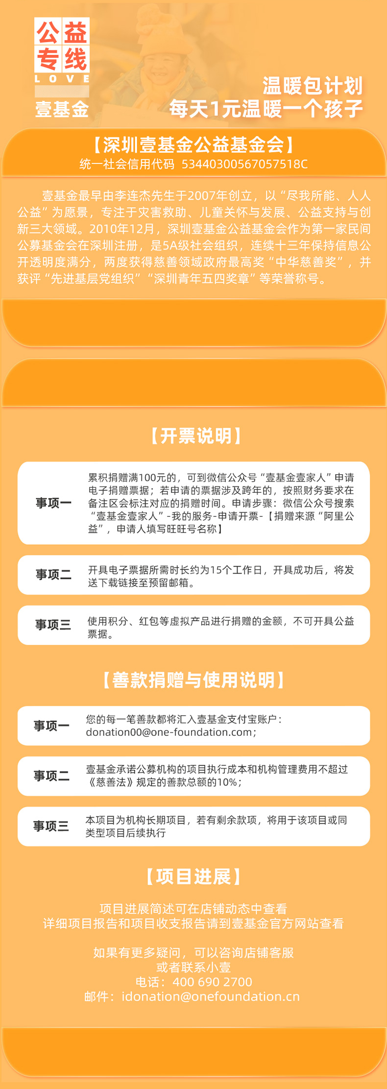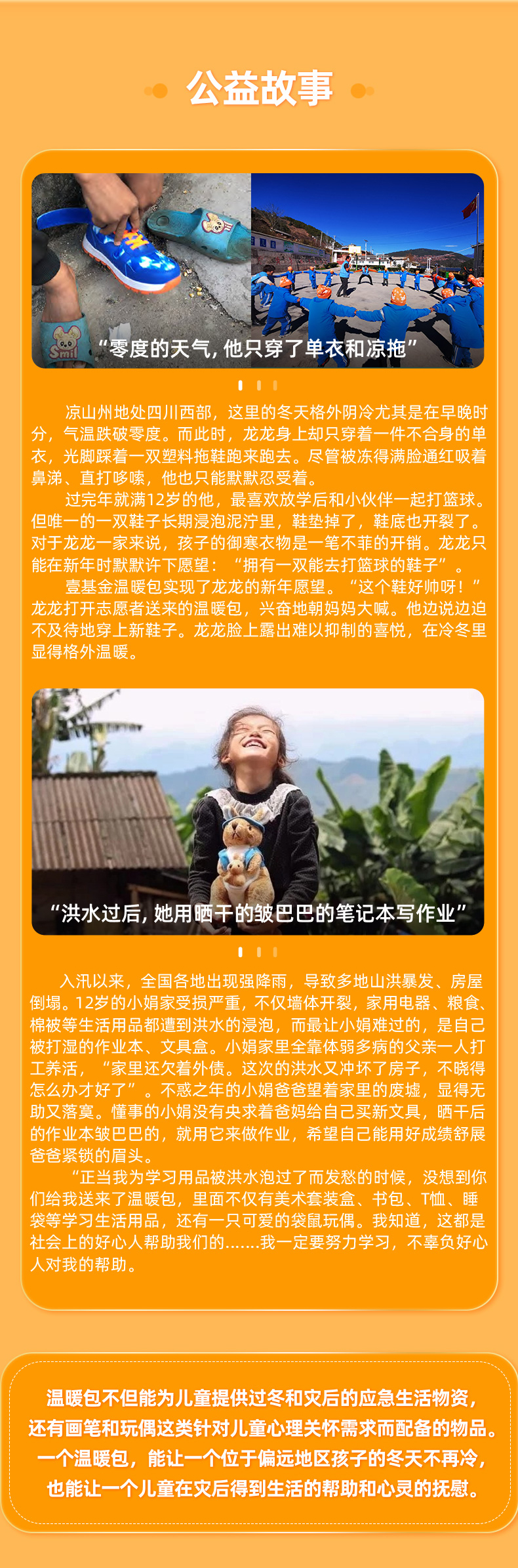 壹基金温暖包项目温暖受灾害影响的儿童爱心公益捐款