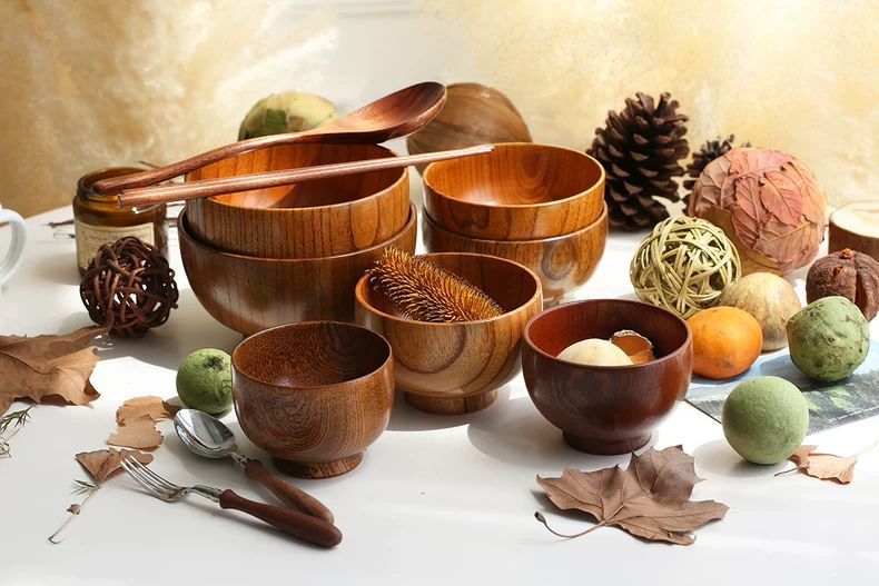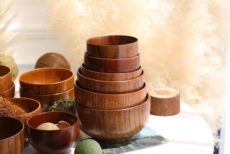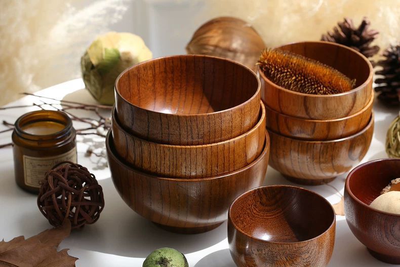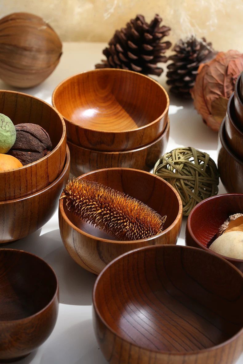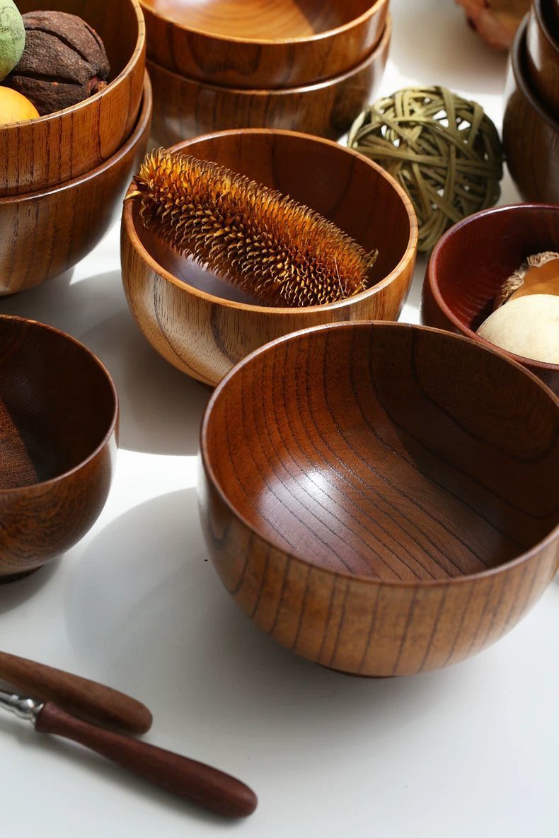 日式酸枣木碗儿童家用宝宝婴儿复古实木小饭碗木质餐具木头碗套装