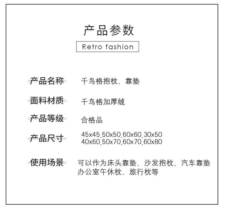 抱枕千鸟格腰靠垫套沙发客厅床头长方形大号靠背抱枕不含芯靠背枕