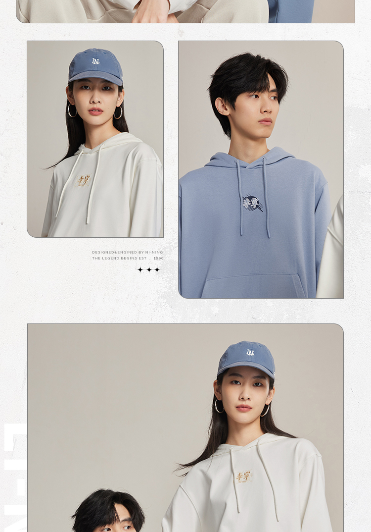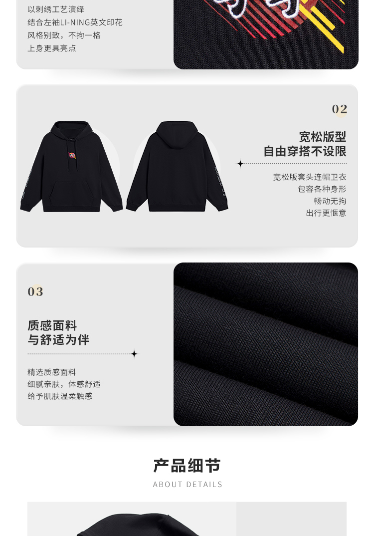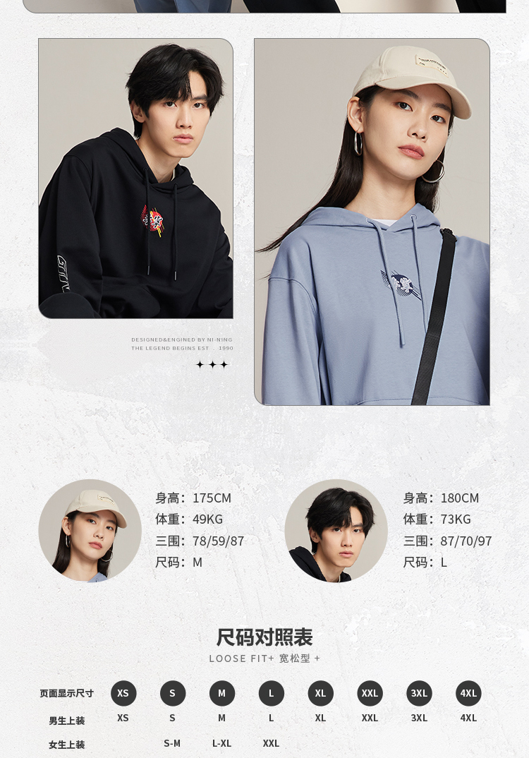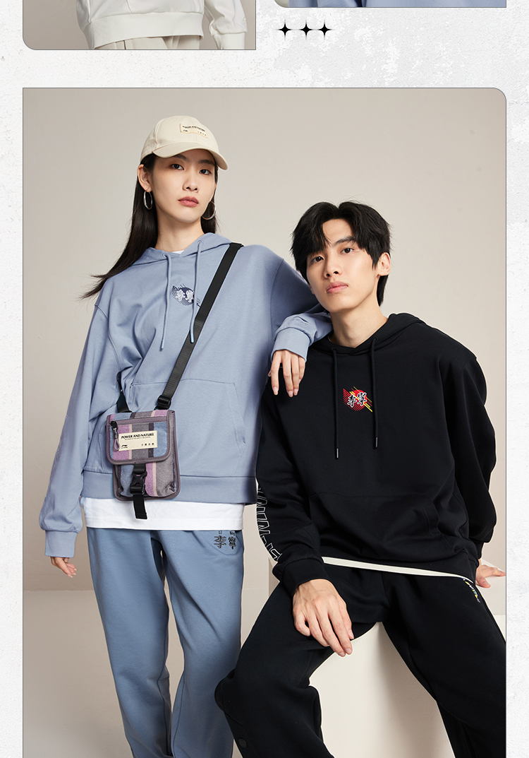 李宁男套头连帽卫衣秋季运动潮流列宽松套头衫运动连帽上衣-B品