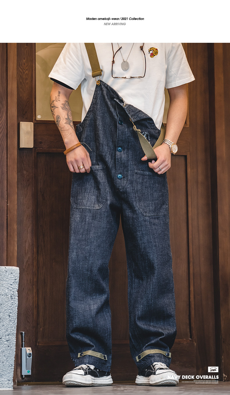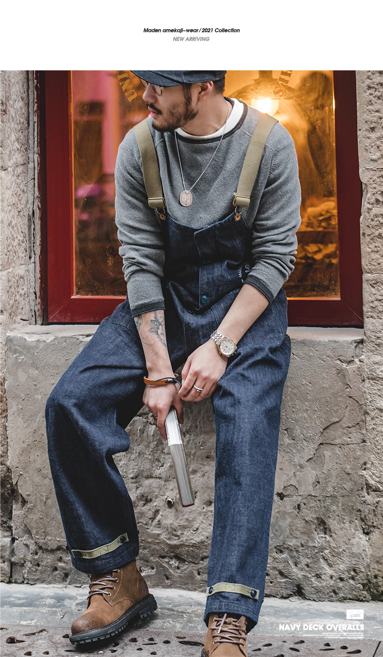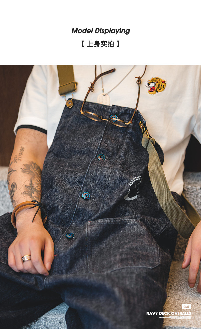 马登工装美式复古海上甲板背带裤秋季直筒阔腿套装吊带牛仔裤子男