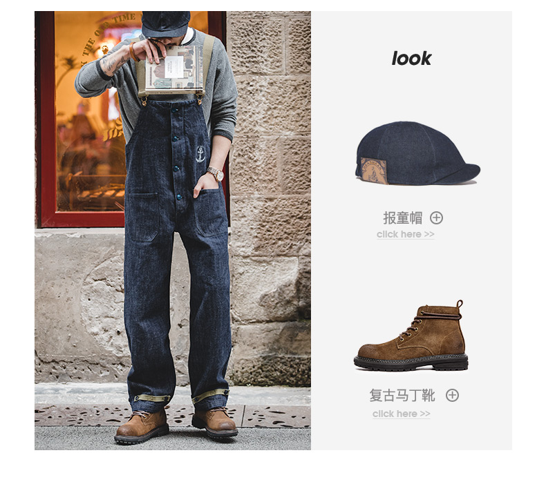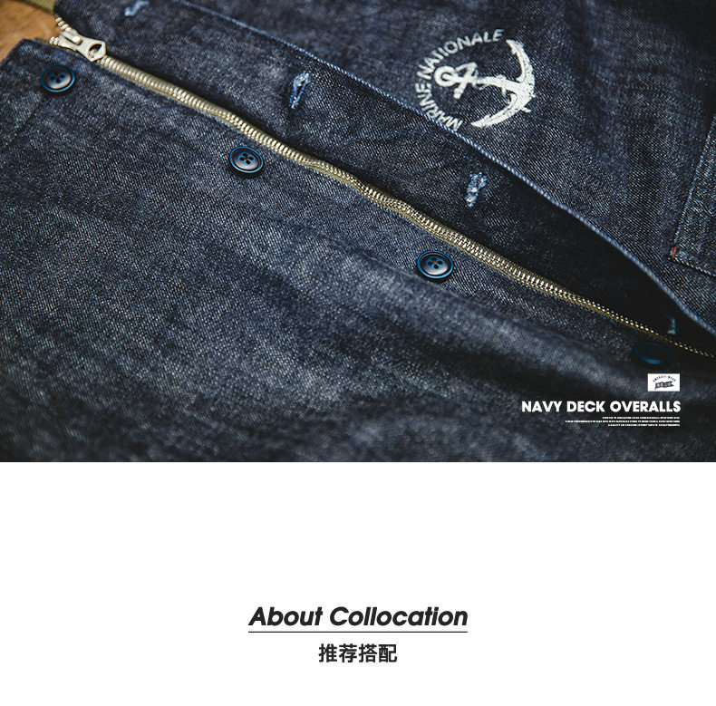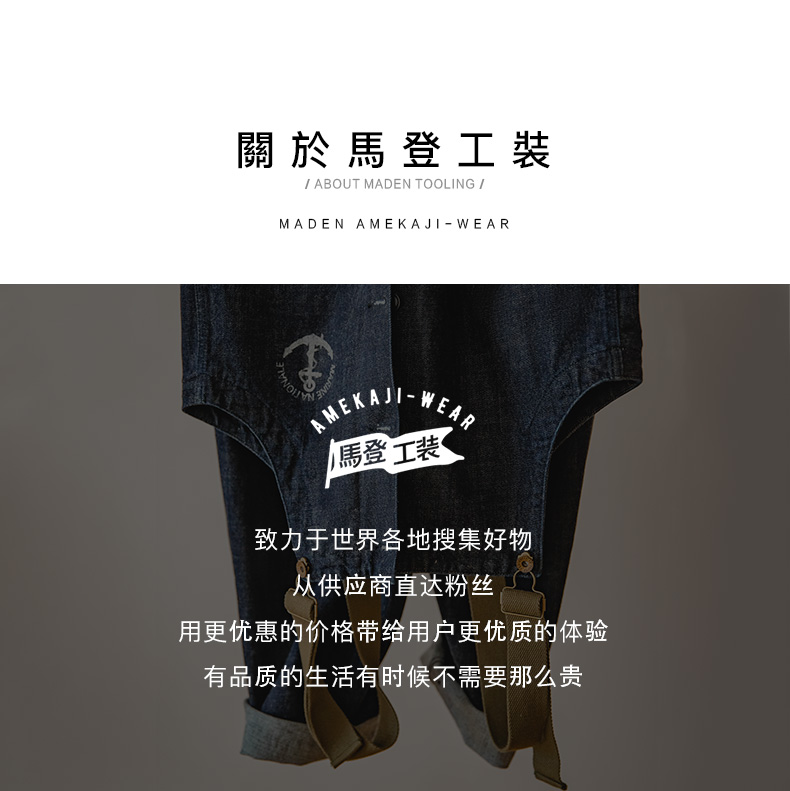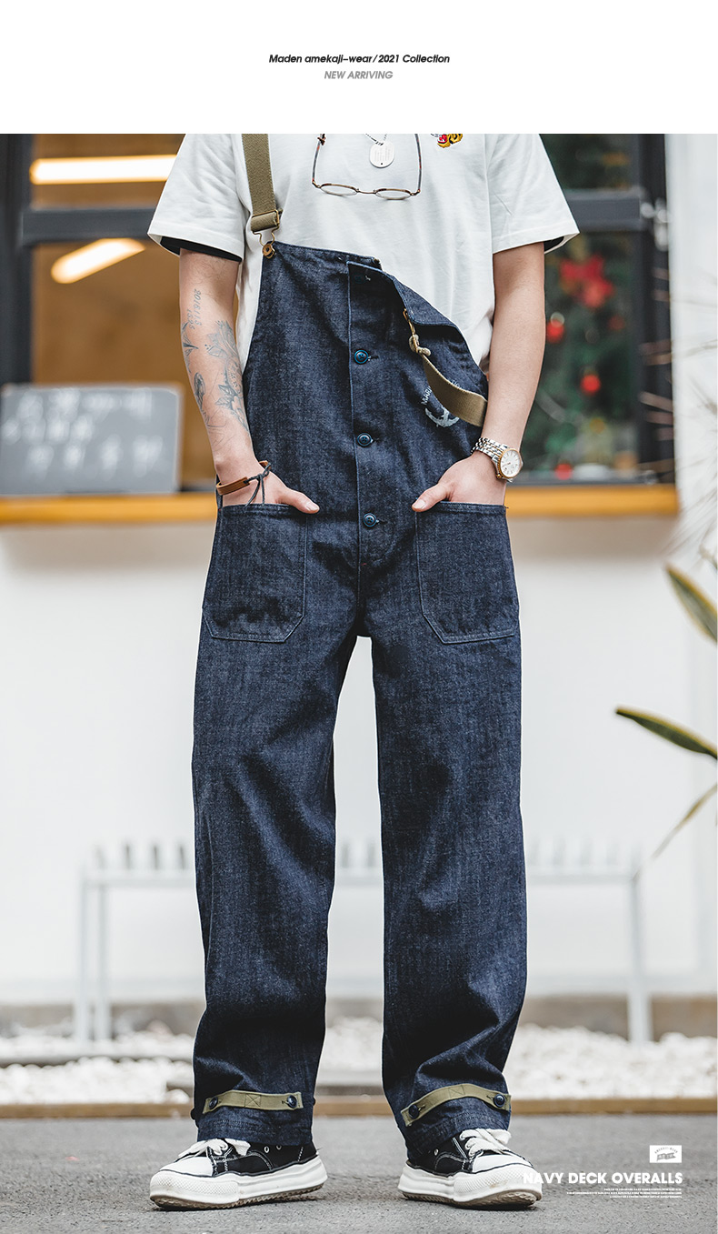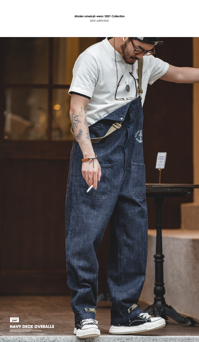 马登工装美式复古海上甲板背带裤秋季直筒阔腿套装吊带牛仔裤子男