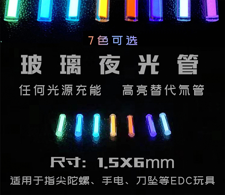 食肉者玻璃夜光氚气管1.5*6mm 2*12mm3*11mm平替玩具指尖陀螺配件