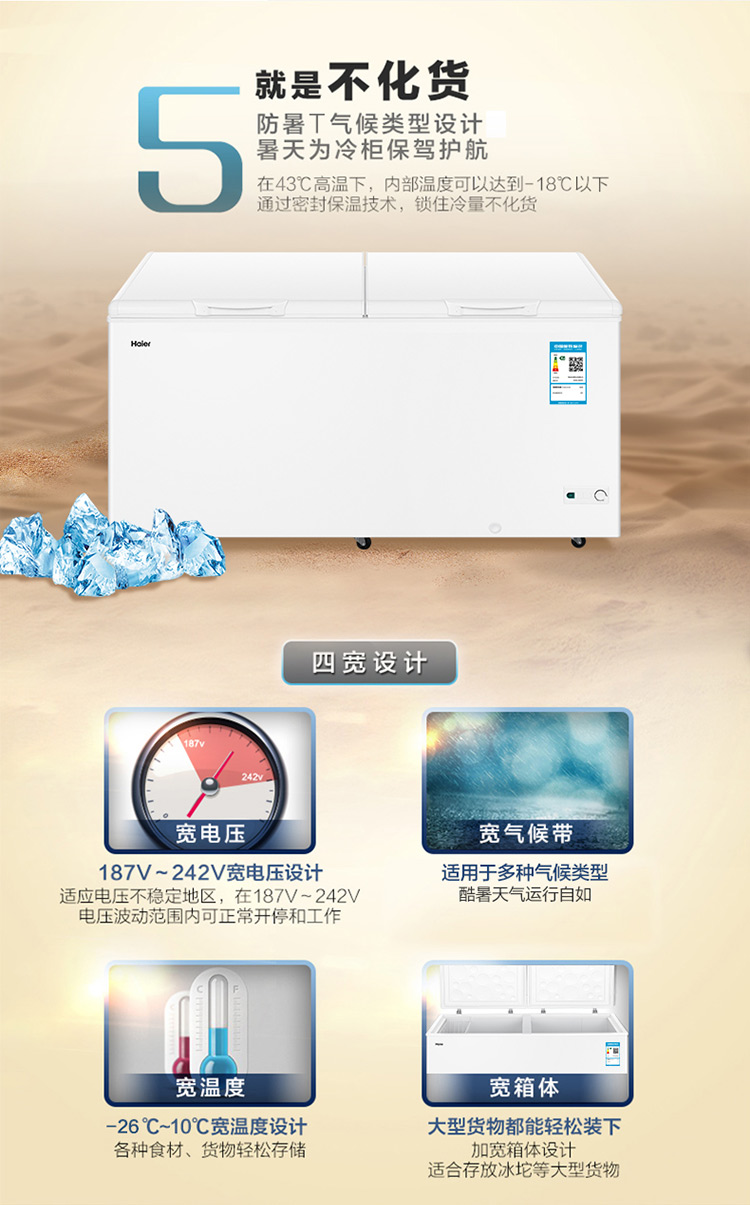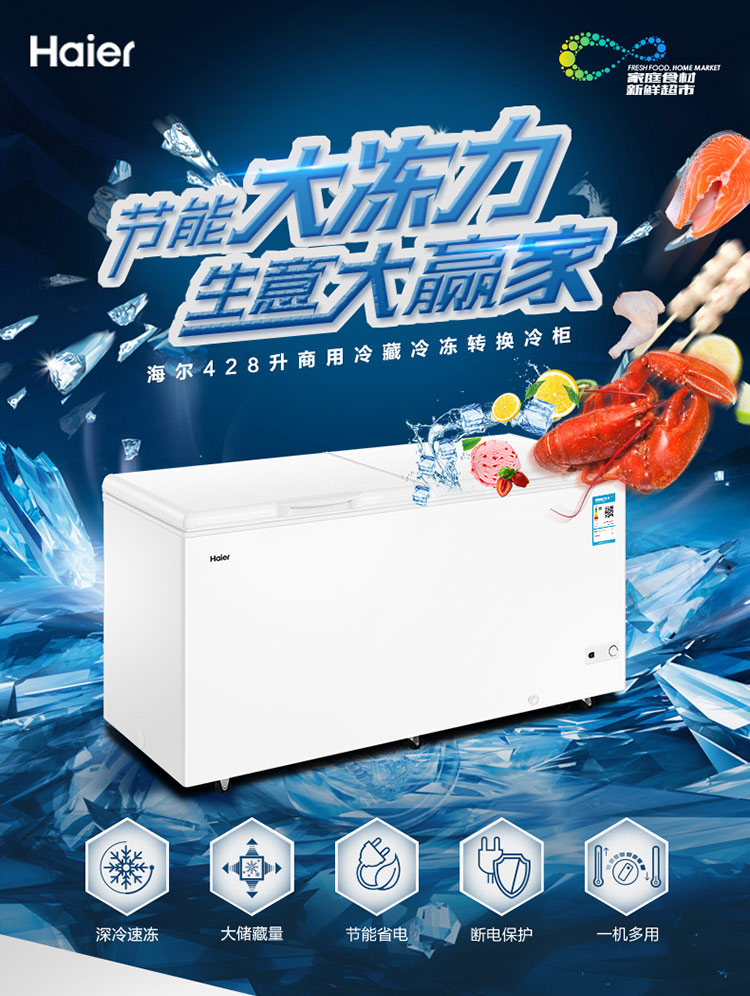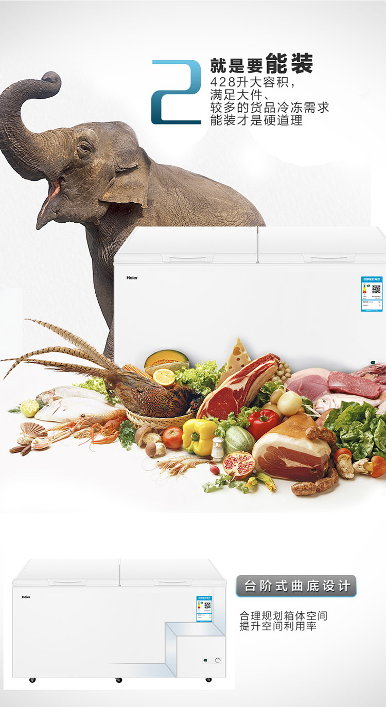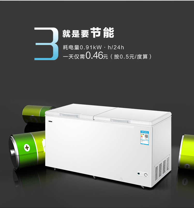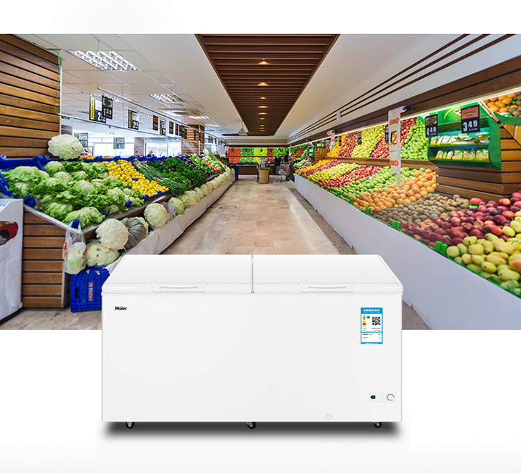海尔428升大容量冰柜家用商用卧式大冷柜全冷冻两用冰箱