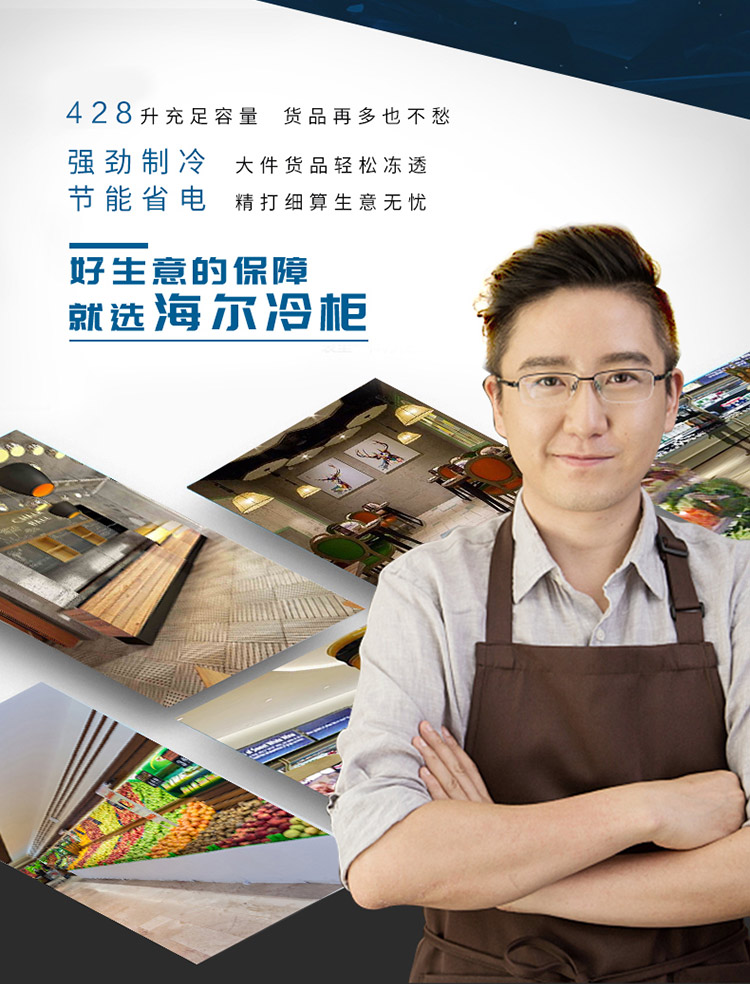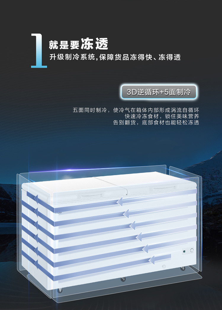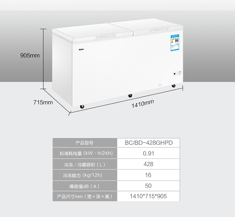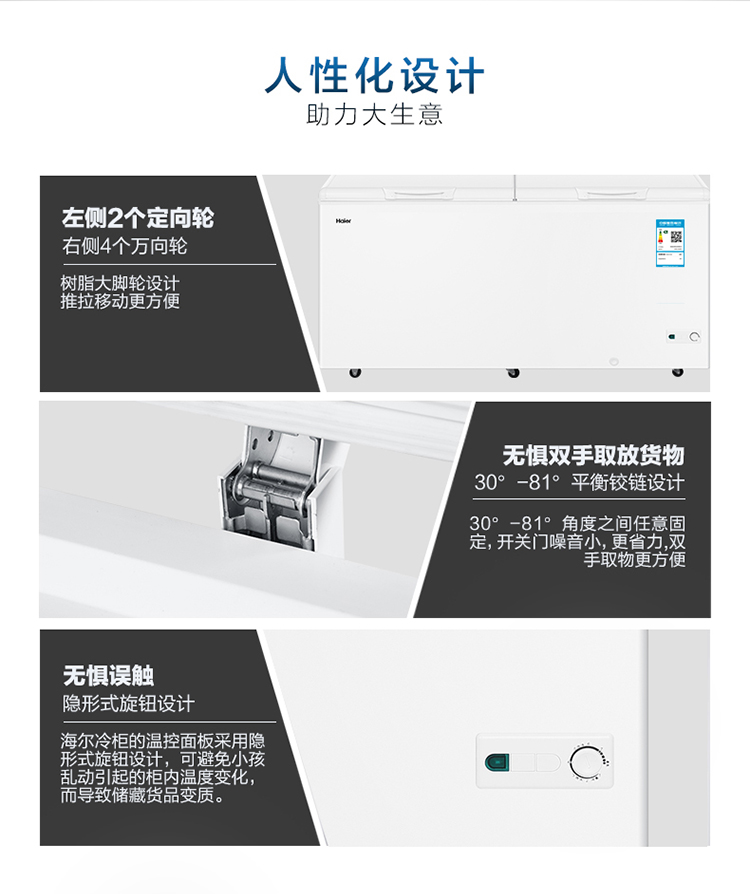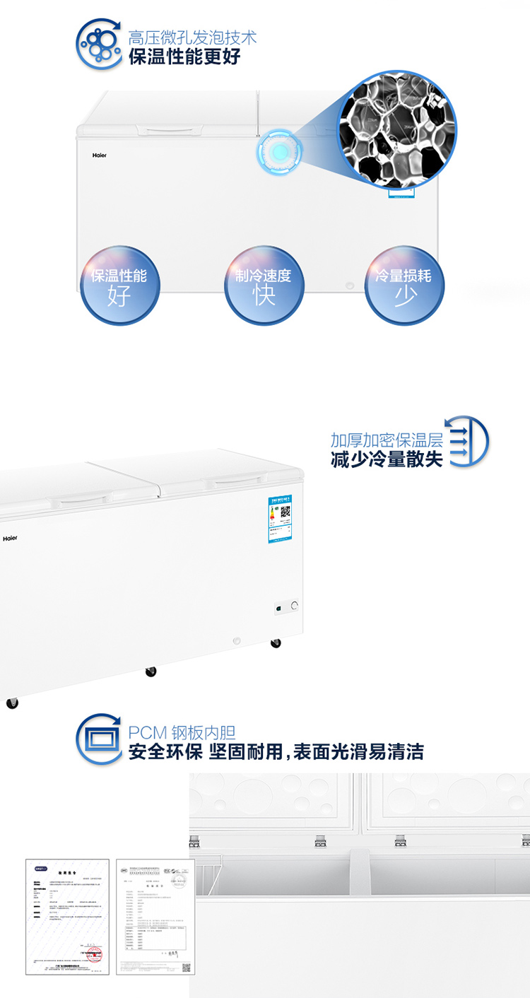 海尔428升大容量冰柜家用商用卧式大冷柜全冷冻两用冰箱
