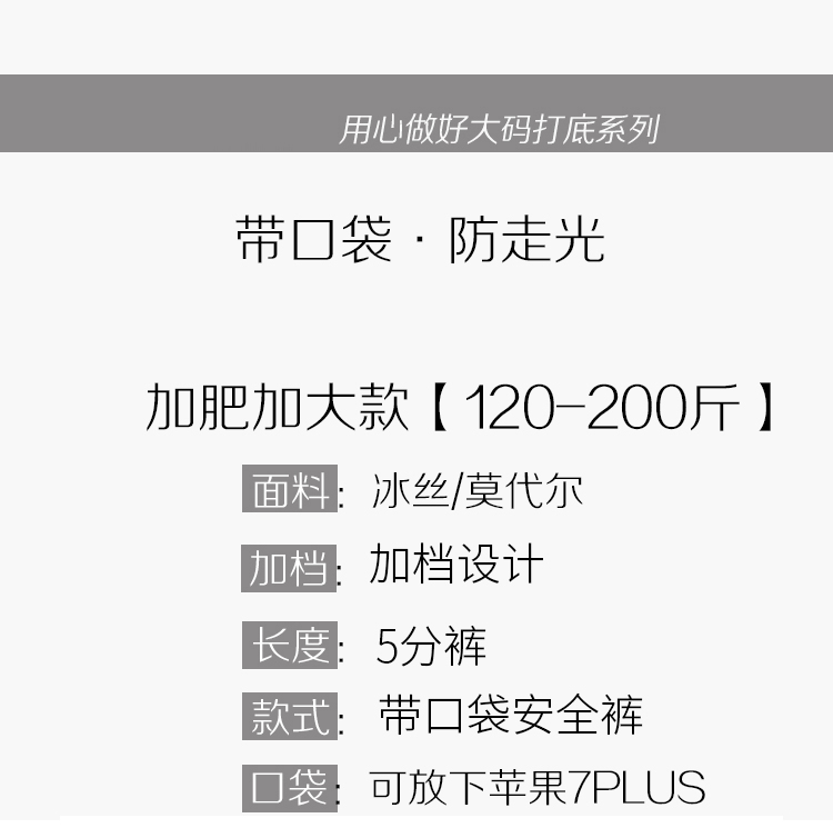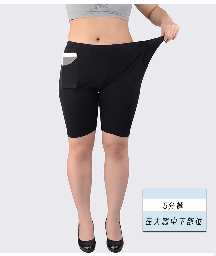 大码安全裤防走光5分裤带口袋带包高腰打底短裤胖mm200斤保险裤