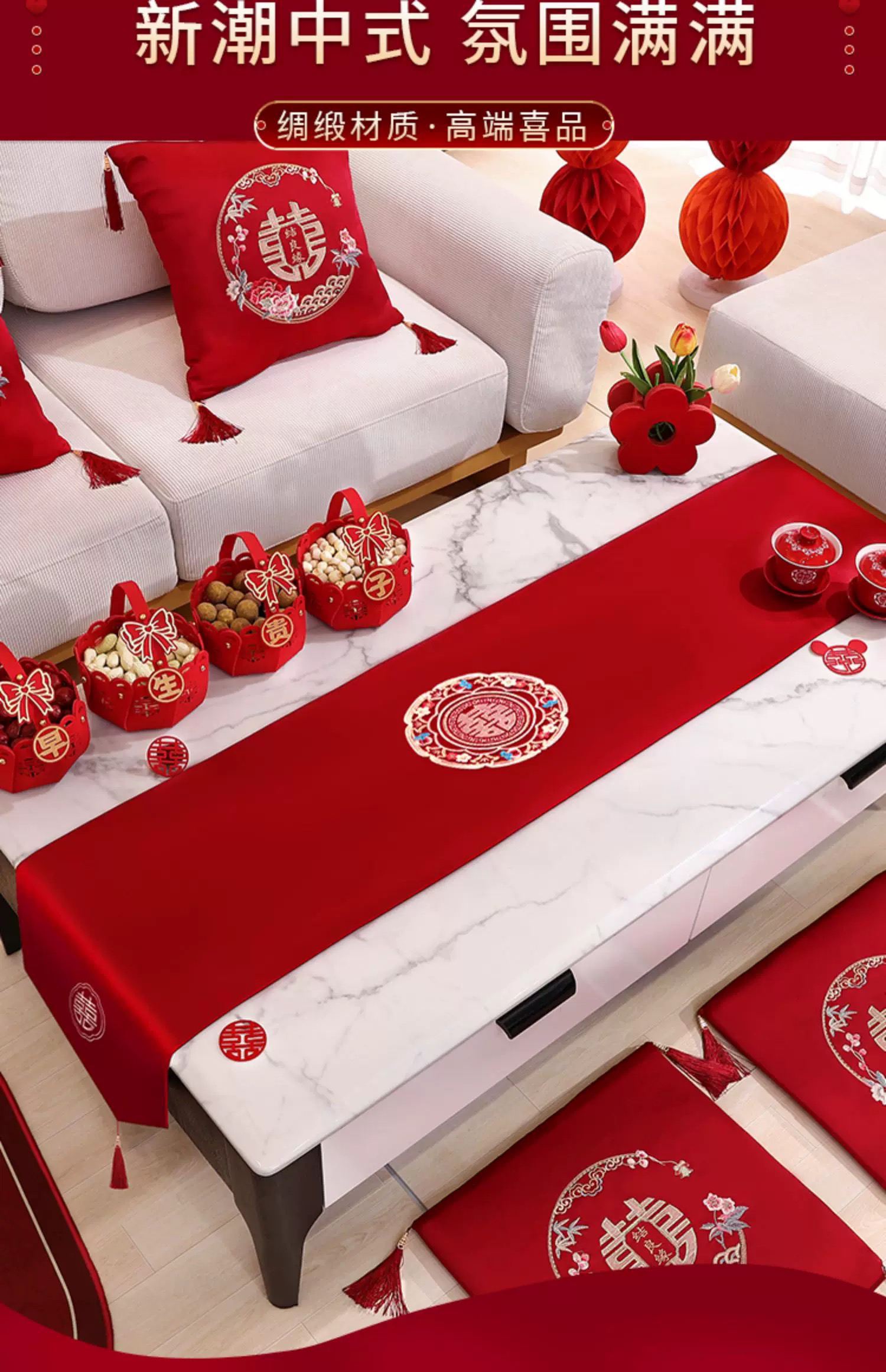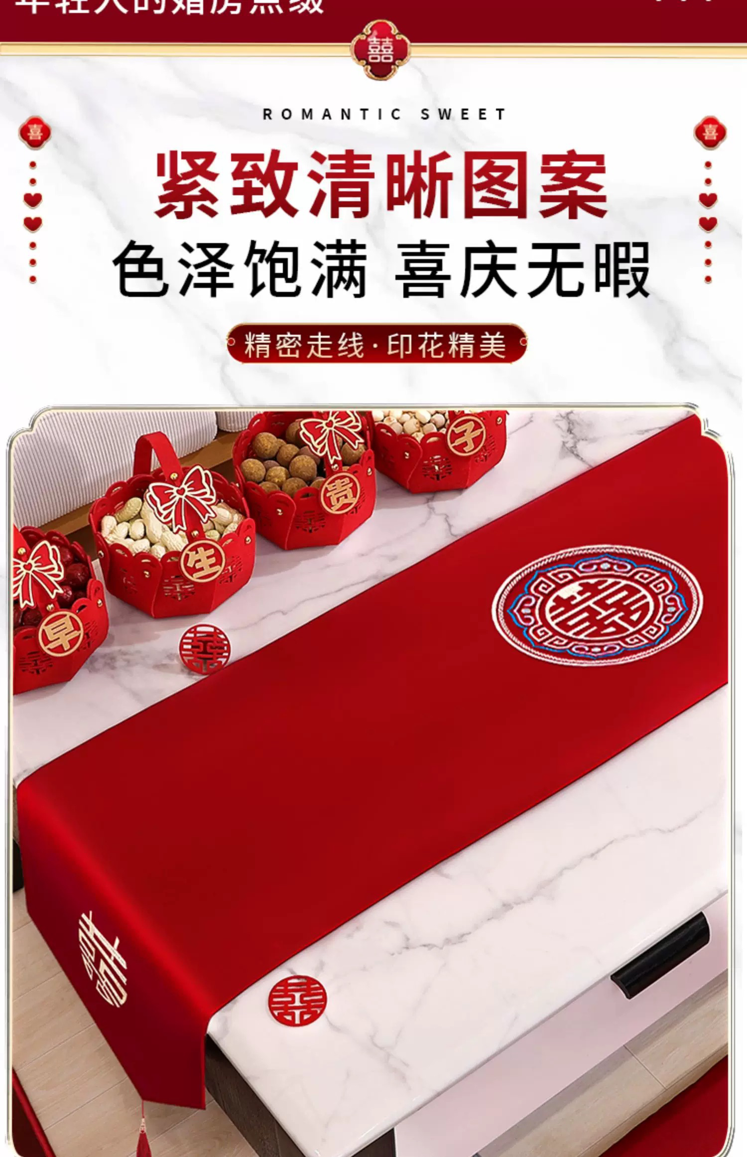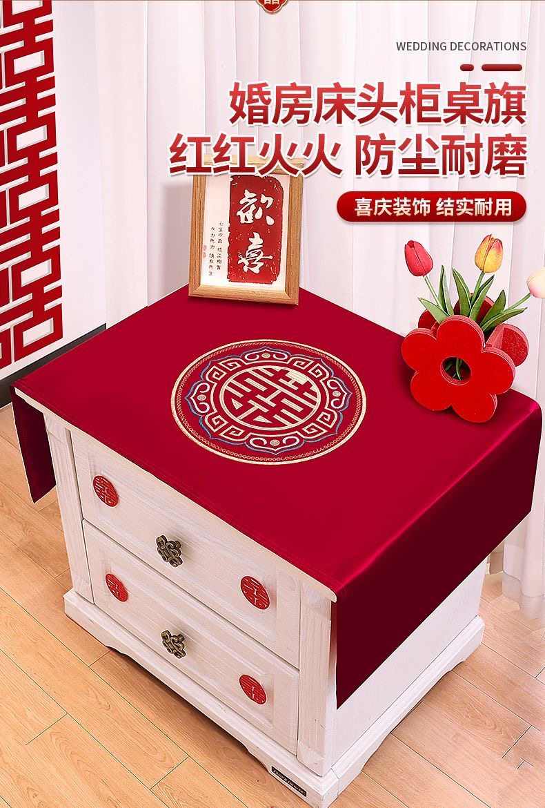 结婚桌旗红色茶几桌布婚房布置装饰订婚新婚台布餐桌电视柜红盖布