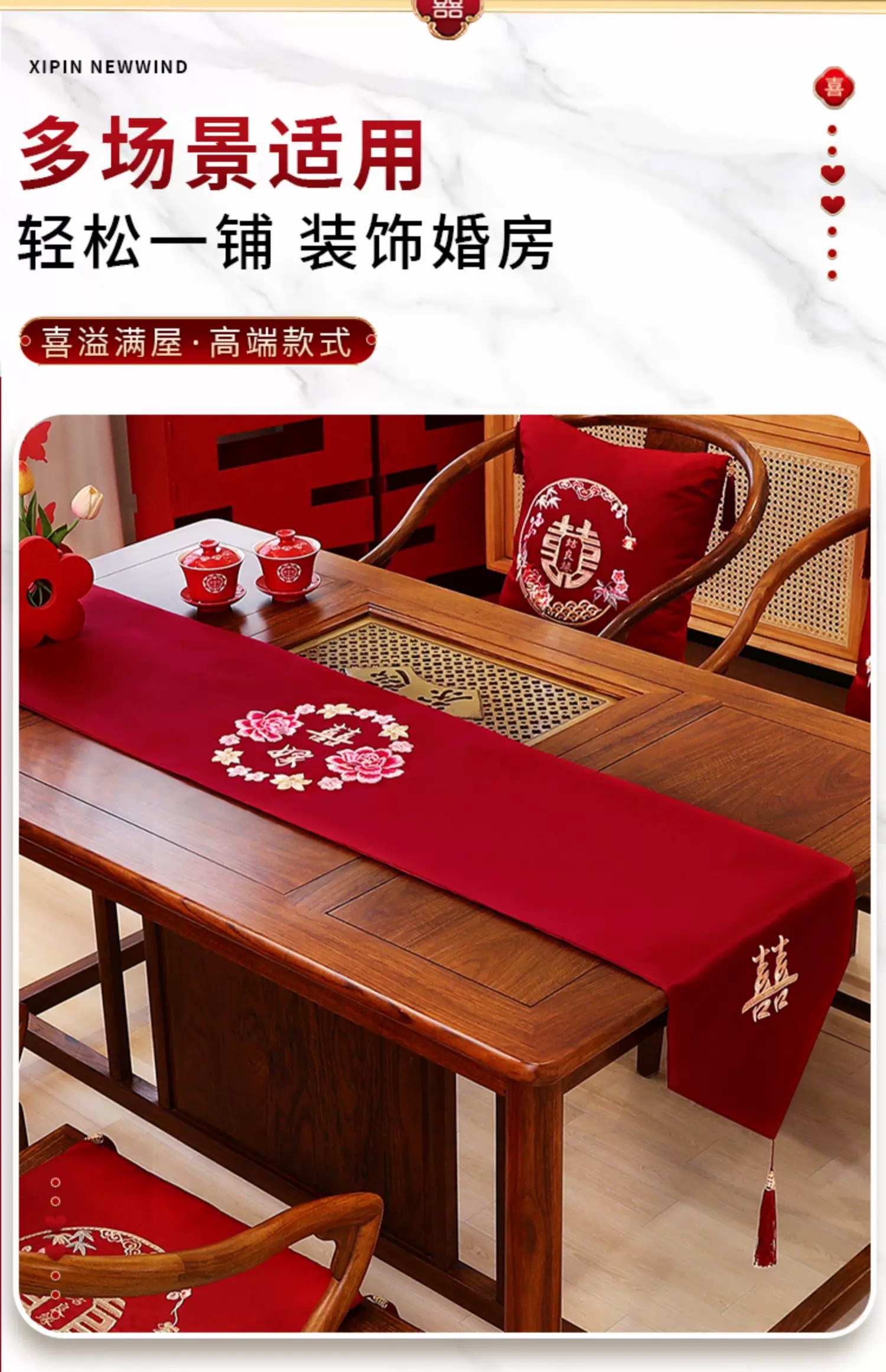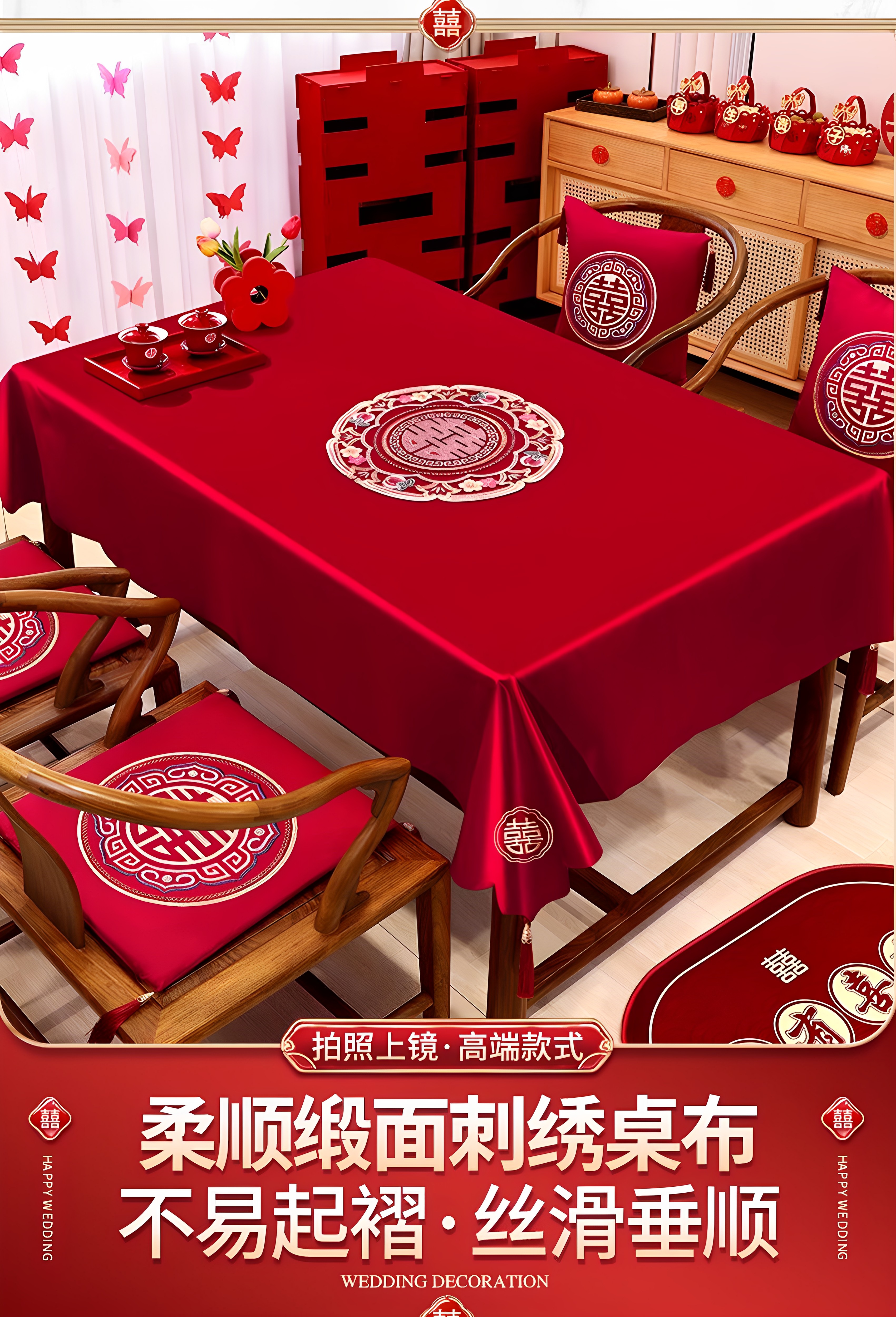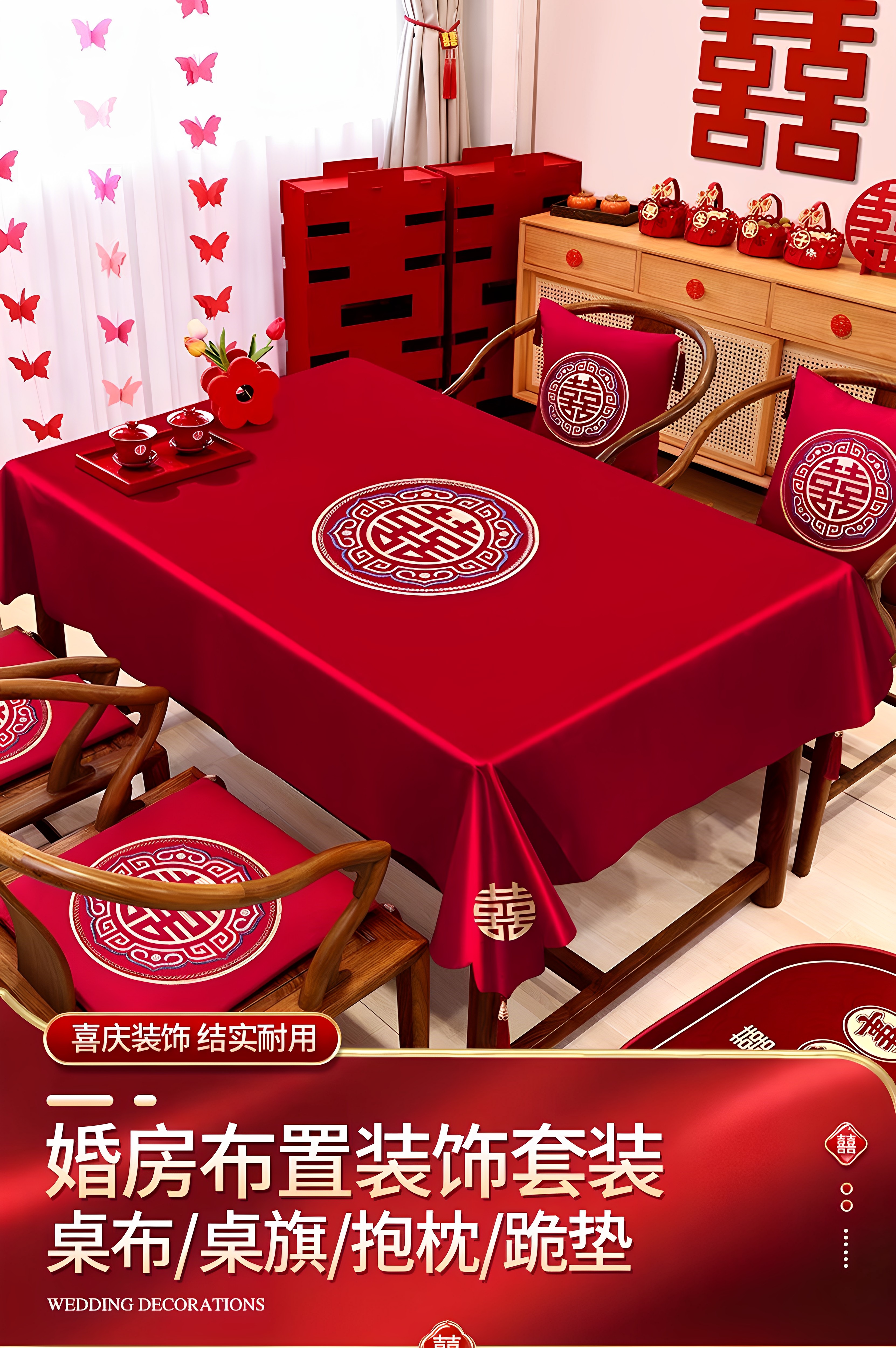 结婚桌旗红色茶几桌布婚房布置装饰订婚新婚台布餐桌电视柜红盖布