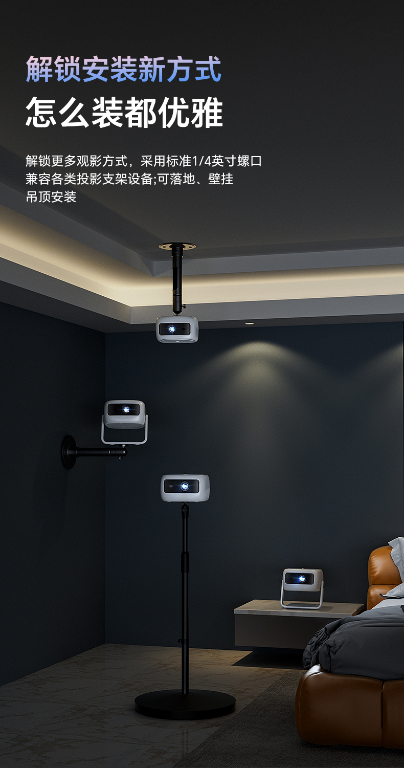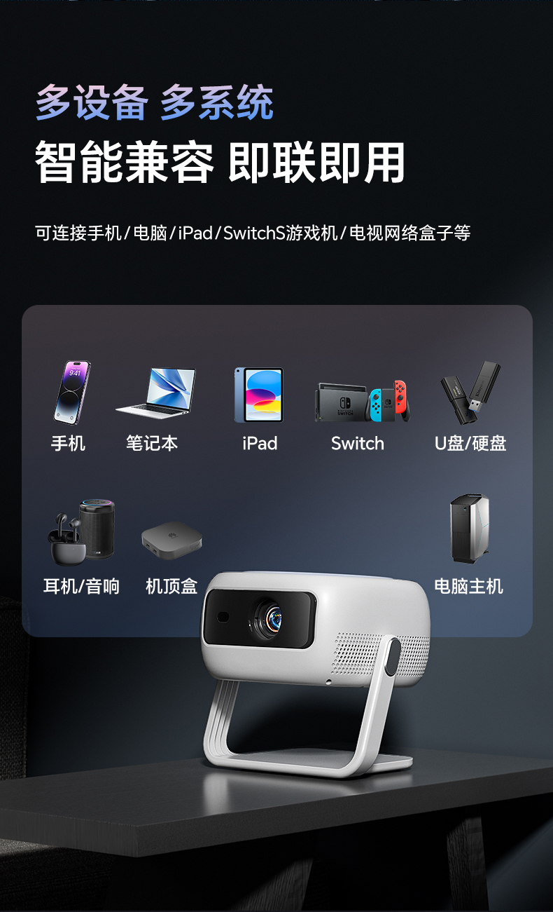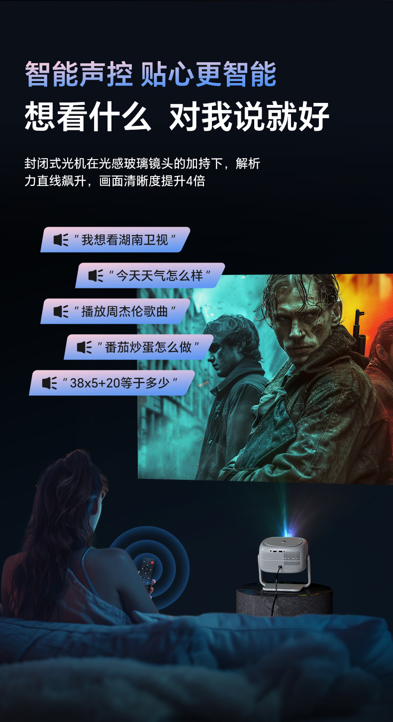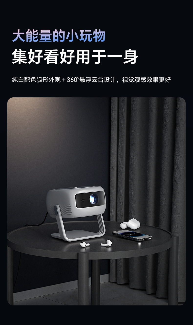 虾皮S3智能投影仪超高清家用投墙卧室客厅家庭影院手机投屏投影机小型便携宿舍学生床头