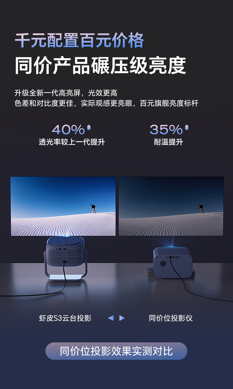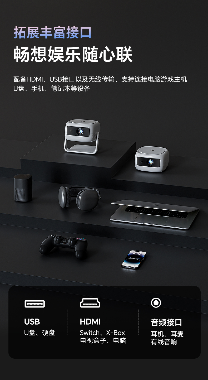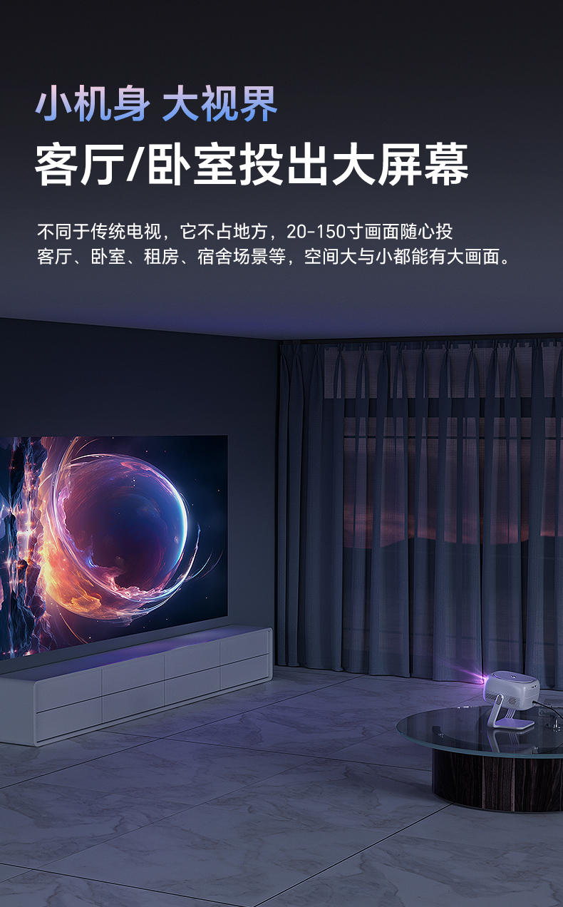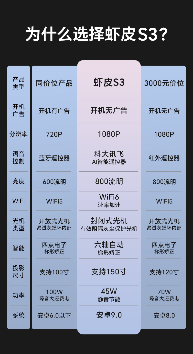 虾皮S3智能投影仪超高清家用投墙卧室客厅家庭影院手机投屏投影机小型便携宿舍学生床头