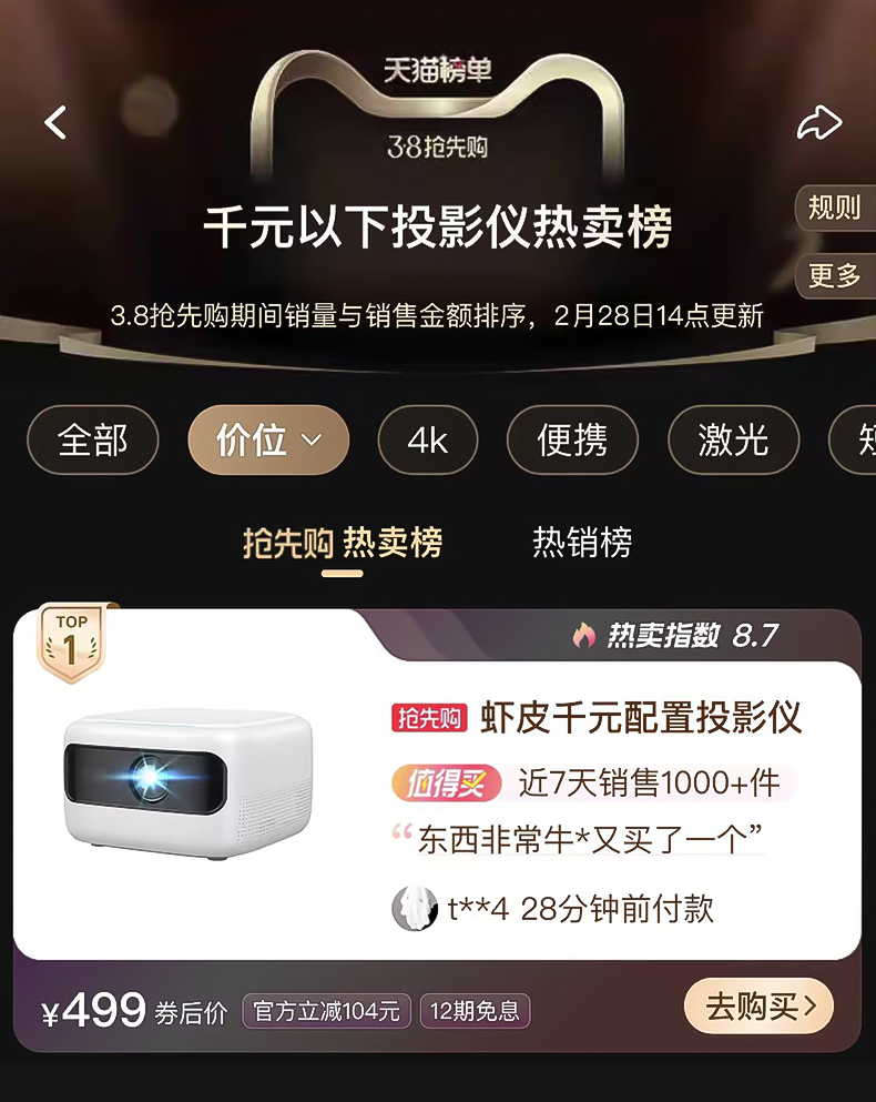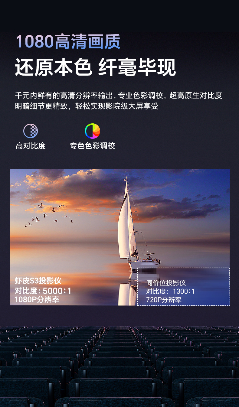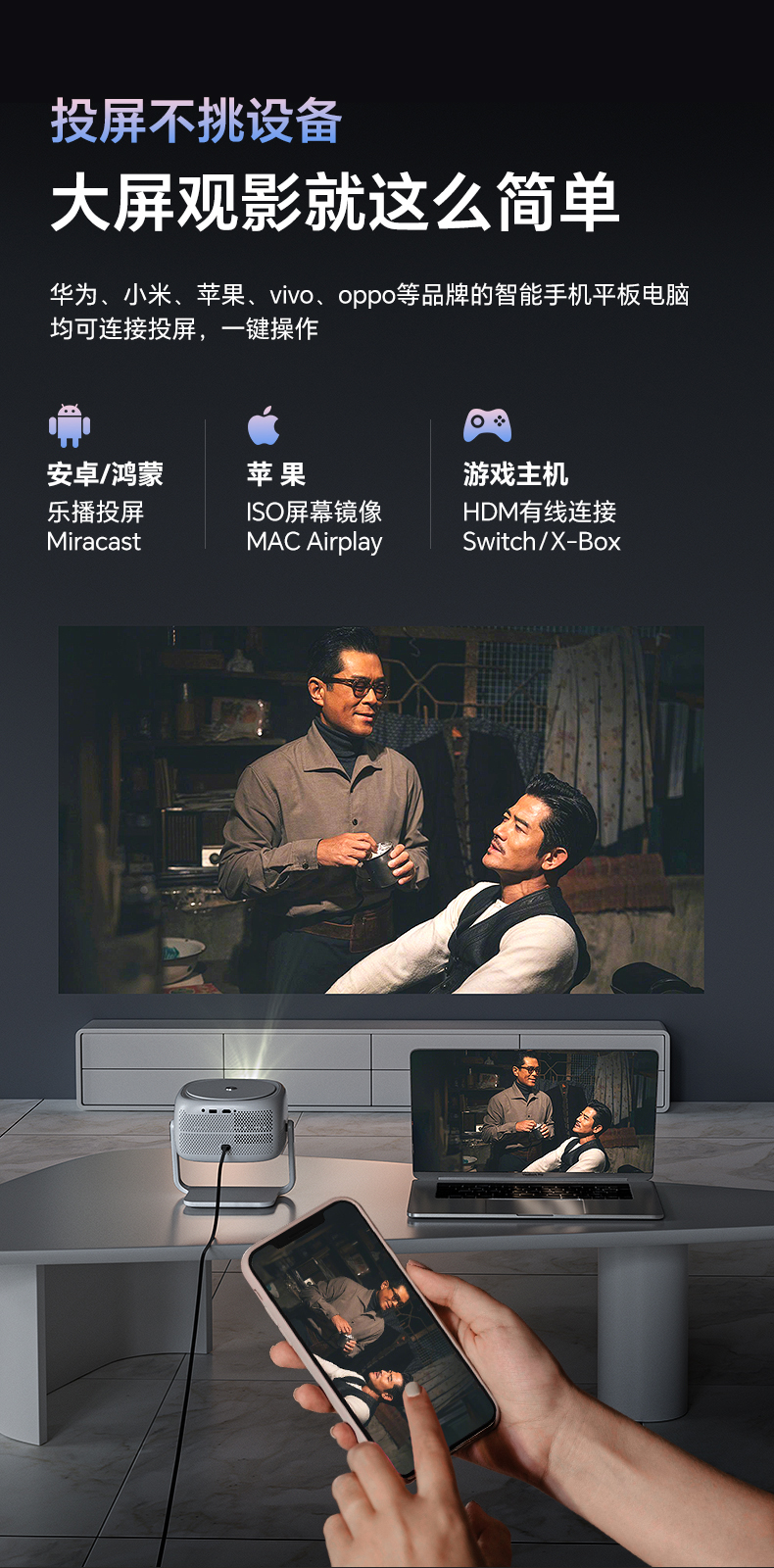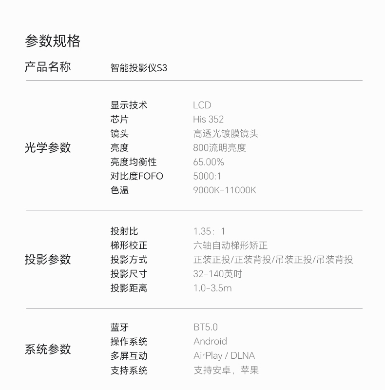 虾皮S3智能投影仪超高清家用投墙卧室客厅家庭影院手机投屏投影机小型便携宿舍学生床头