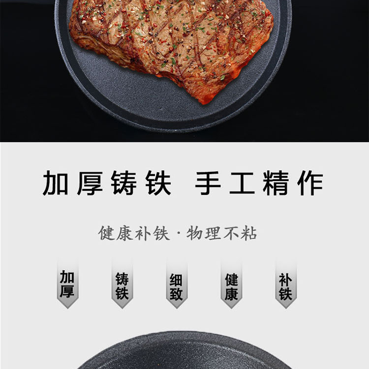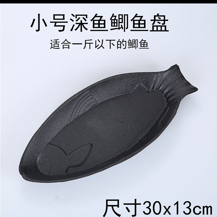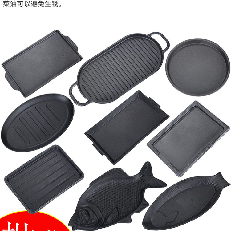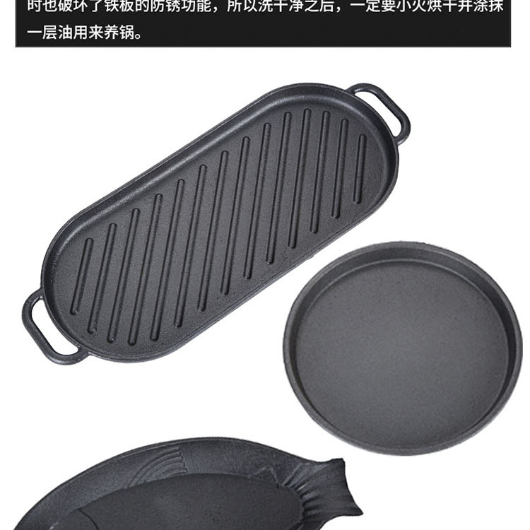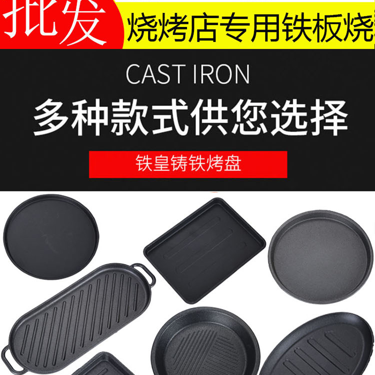铸铁铁板烧盘商用圆形烧烤盘家用铁板鲫鱼烧盘西餐牛排盘铁板烤鱼
