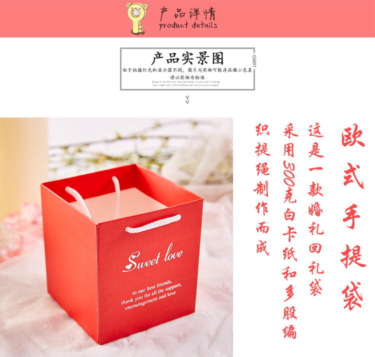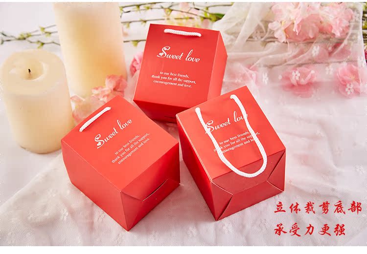 小号红色圆形喜糖盒配套纸手提回礼袋结婚婚庆用品欧式礼品袋包邮