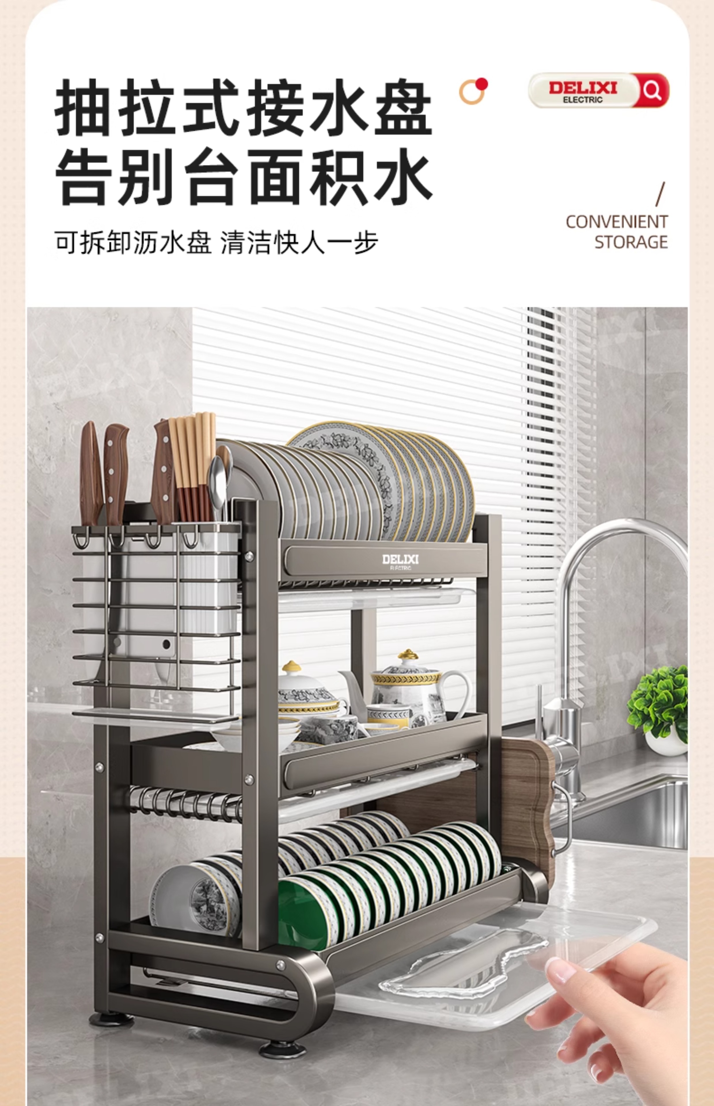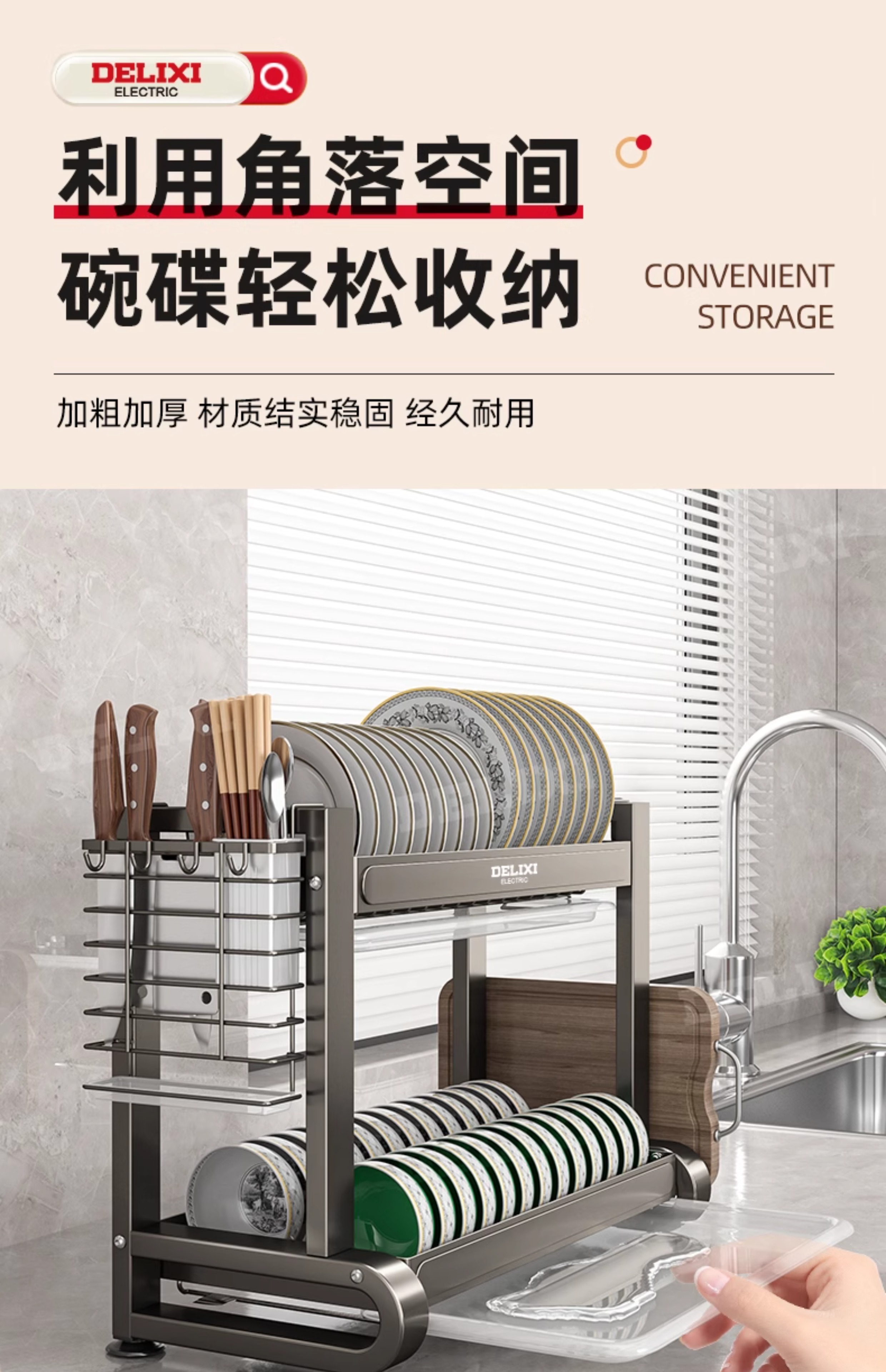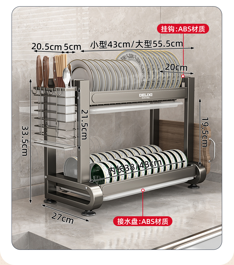 德力西碗碟收纳架沥水架厨房置物架多功能碗架碗柜碗盘收纳盒刀架
