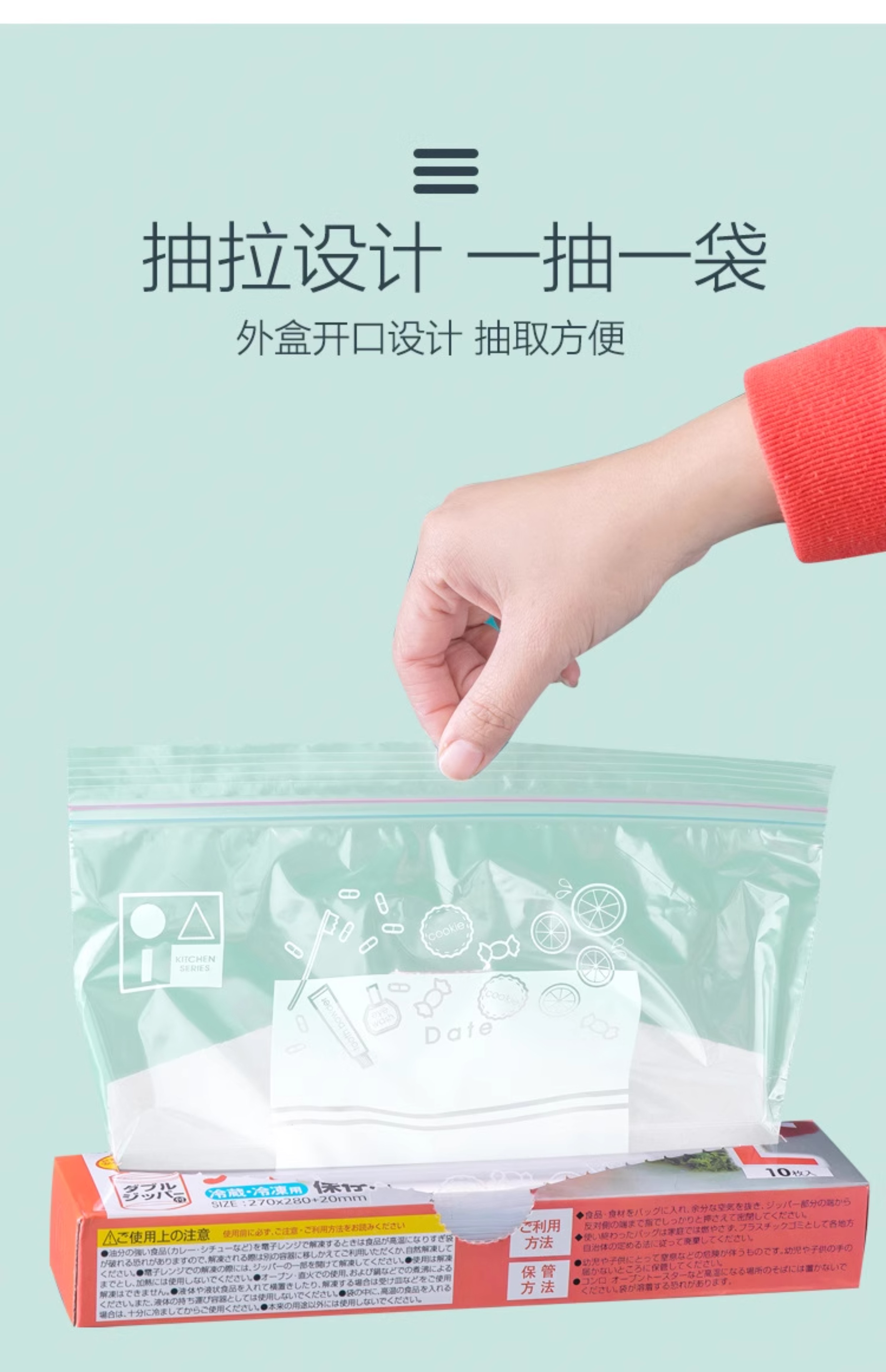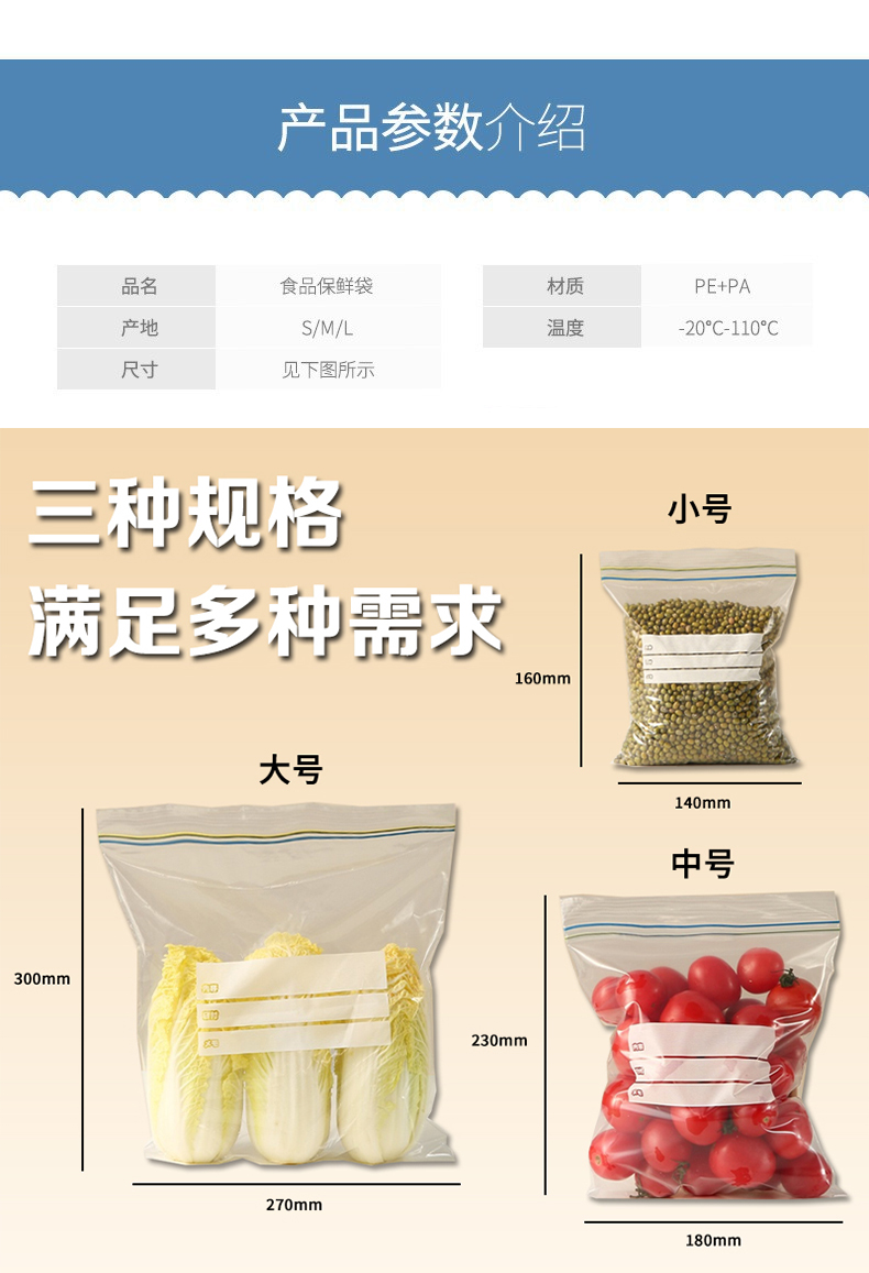oakliving密封袋食品级保鲜袋家用厨房冰箱收纳袋冷冻专用自封袋