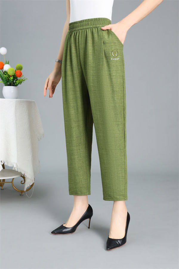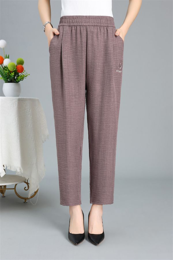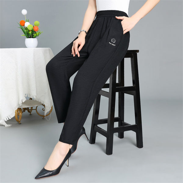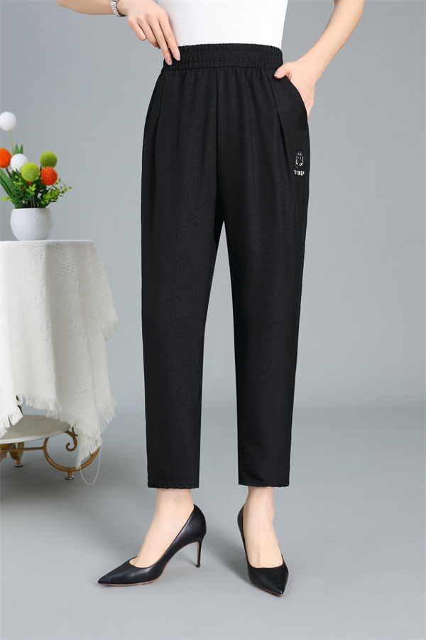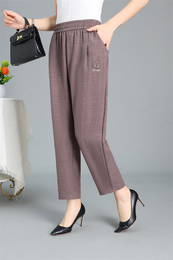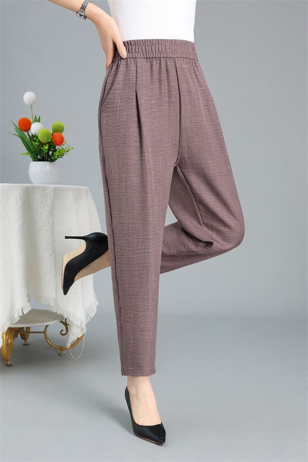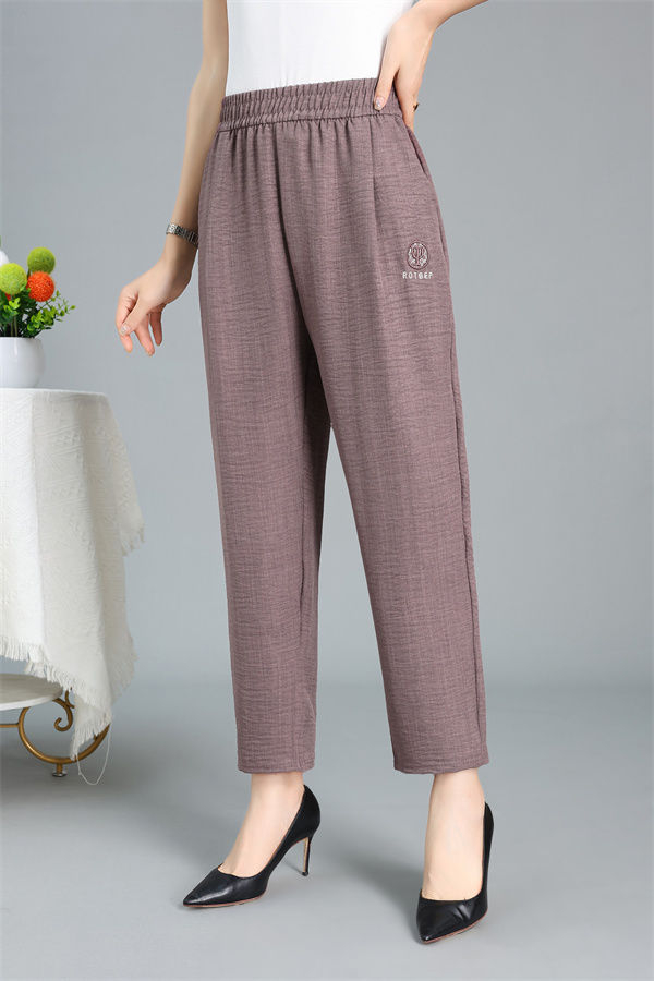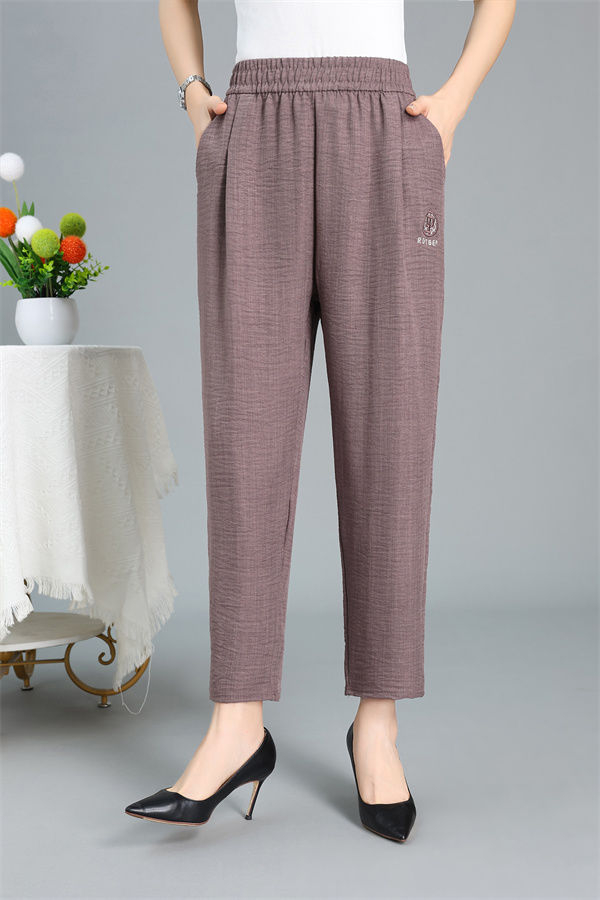 夏季新款洋气中老年女裤宽松大码松紧腰妈妈裤子高腰哈伦裤九分裤