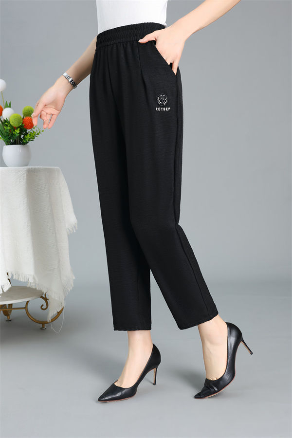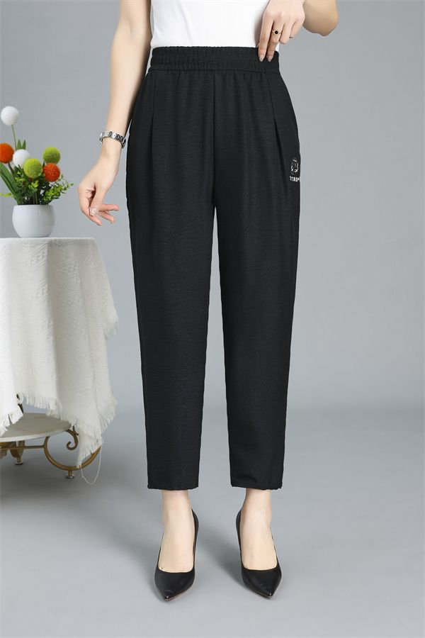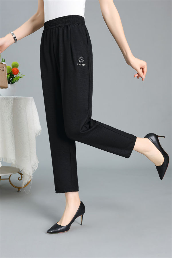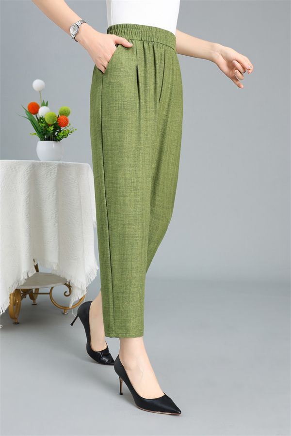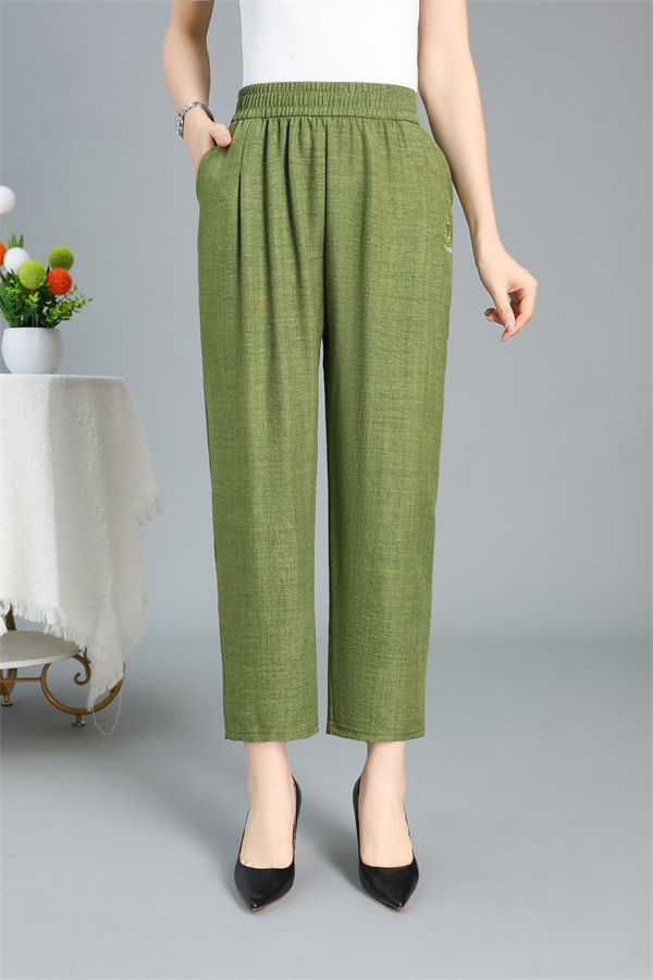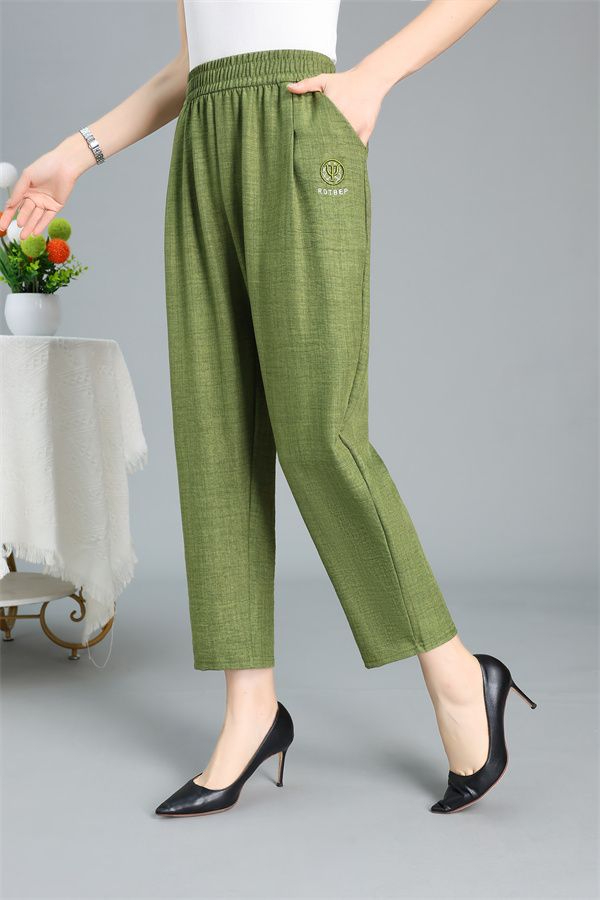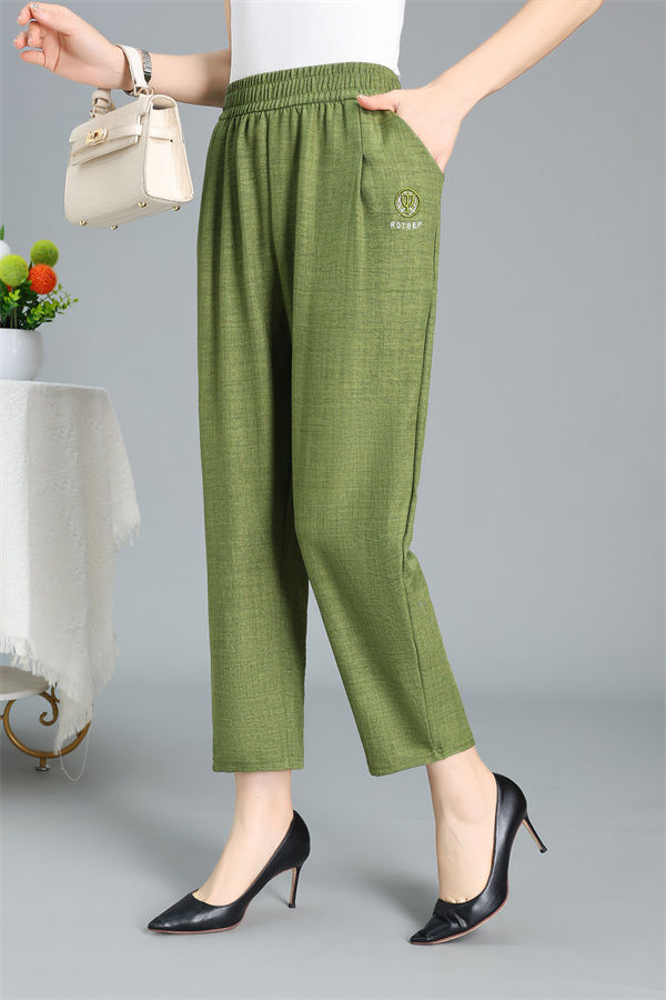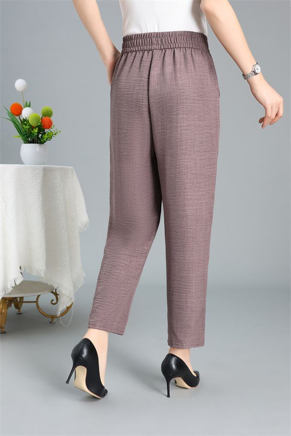 夏季新款洋气中老年女裤宽松大码松紧腰妈妈裤子高腰哈伦裤九分裤