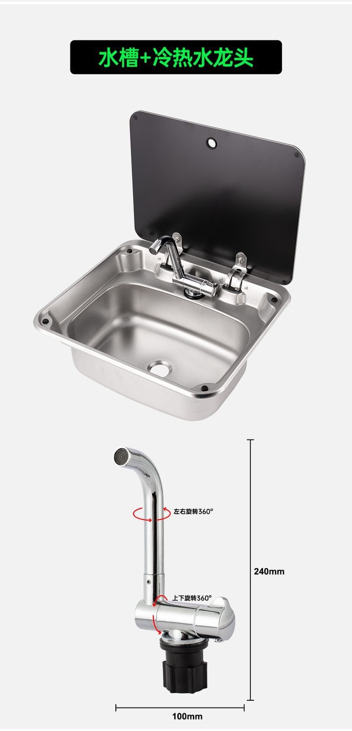 房车水槽带盖厨房洗手盆不锈钢水槽单槽洗菜盆方形折叠水盆车载