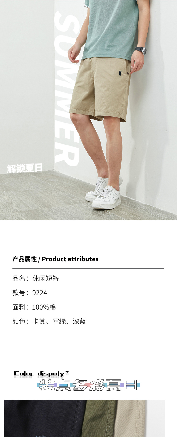 保罗正品男士短裤夏季宽松大裤衩纯棉休闲五分裤子男