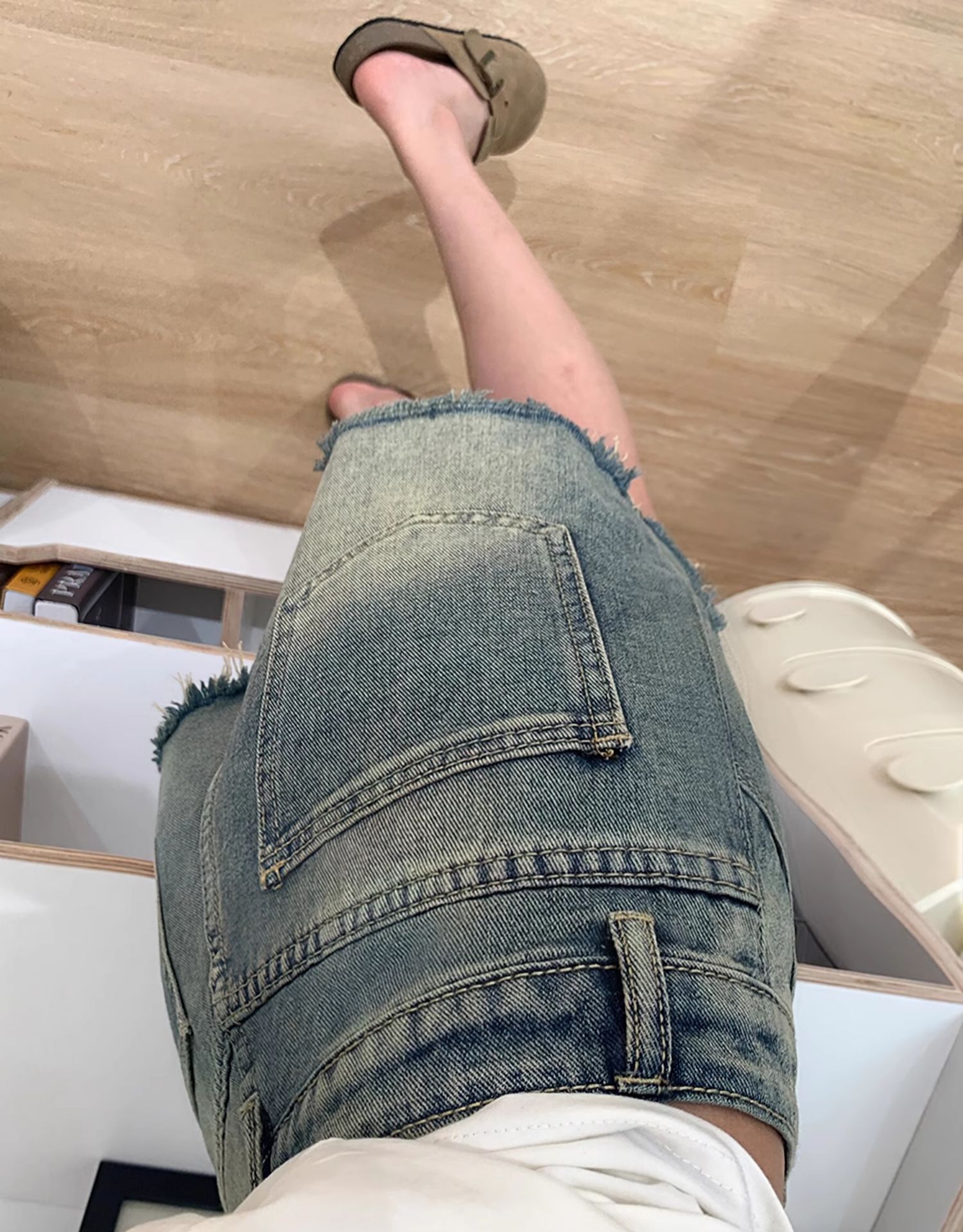 复古牛仔短裤女夏薄款胖妹妹mm高腰遮胯显瘦梨形身材a字阔腿热裤