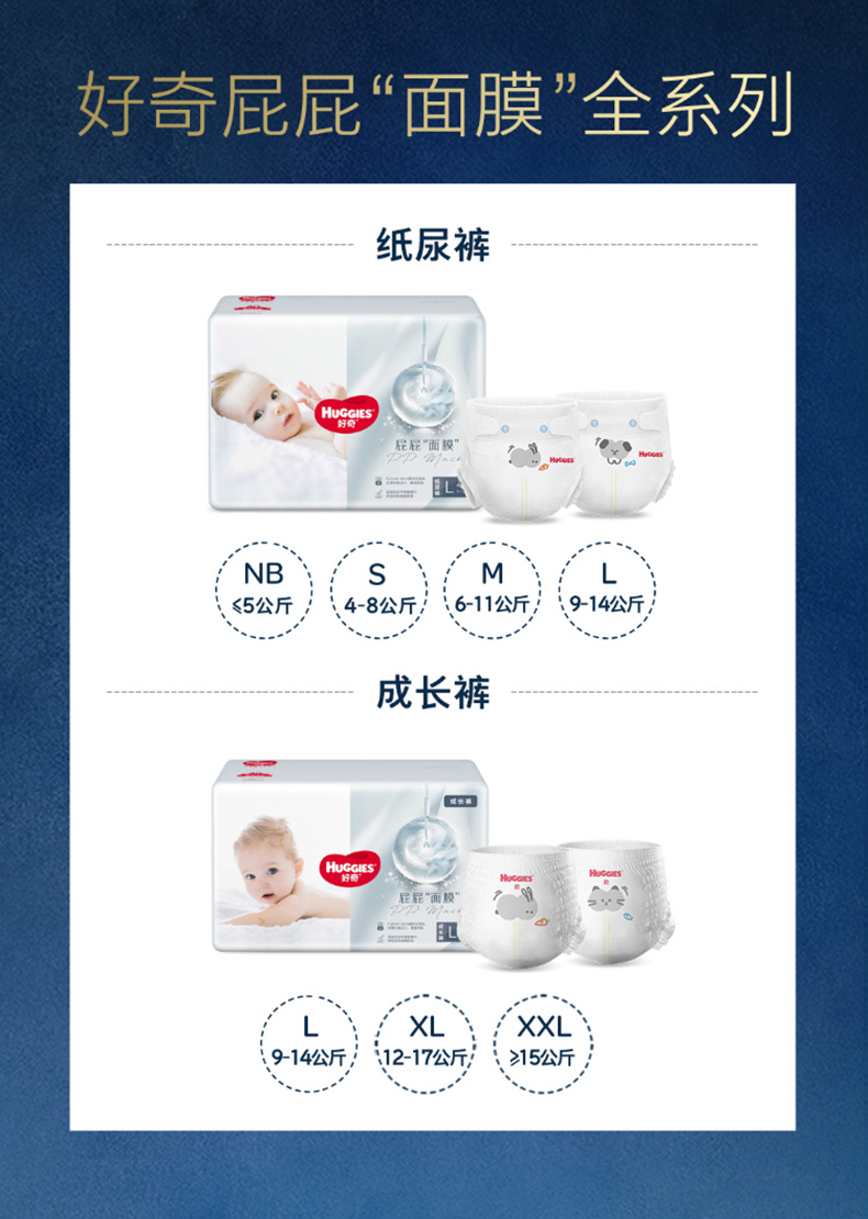 好奇屁屁面膜纸尿裤纸尿裤NB/S/M/L码拉拉裤L/XL码试用装
