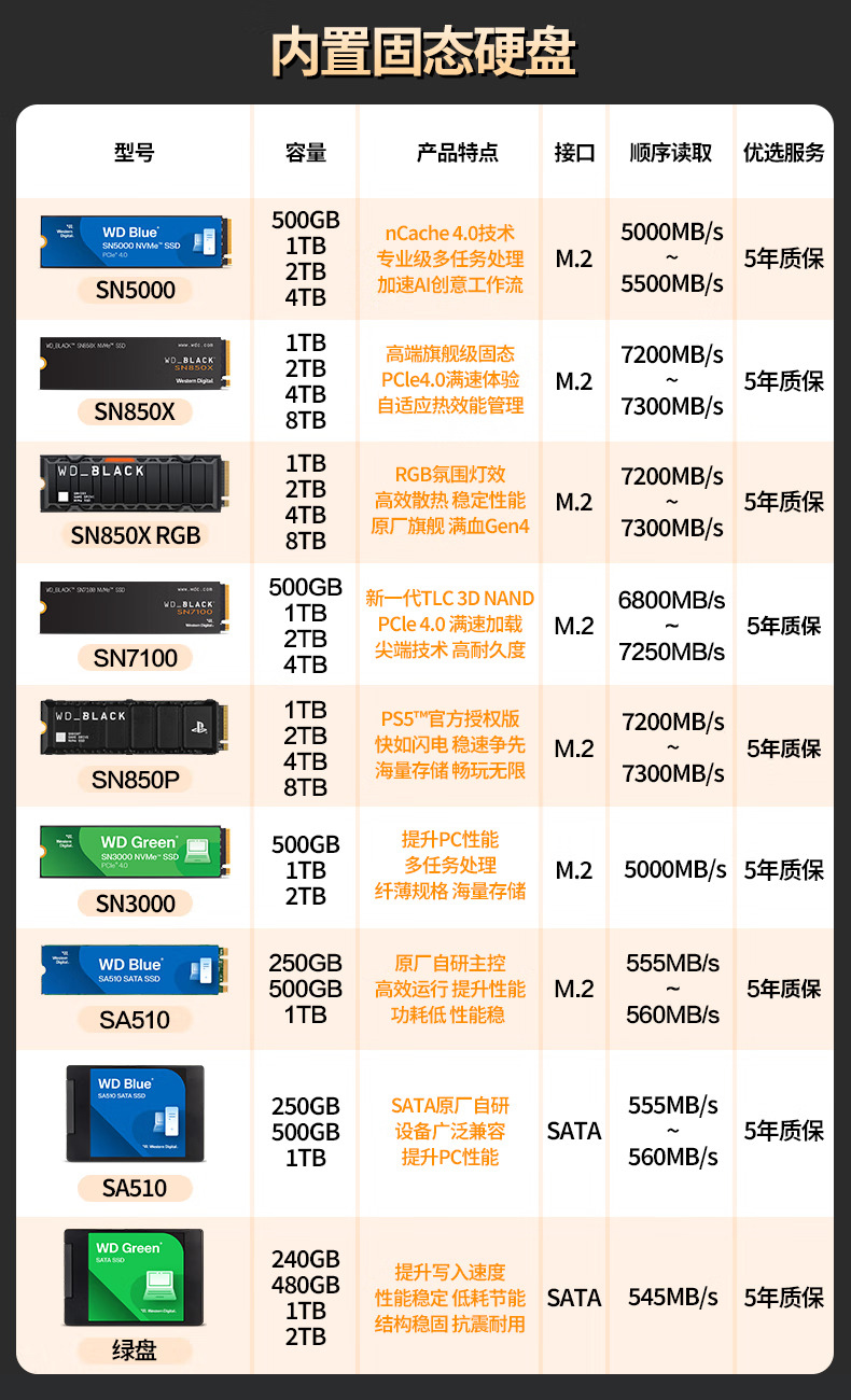 WD西部数据SN350/570/580/770 500G/1T/2T西数NVME协议M2固态硬盘