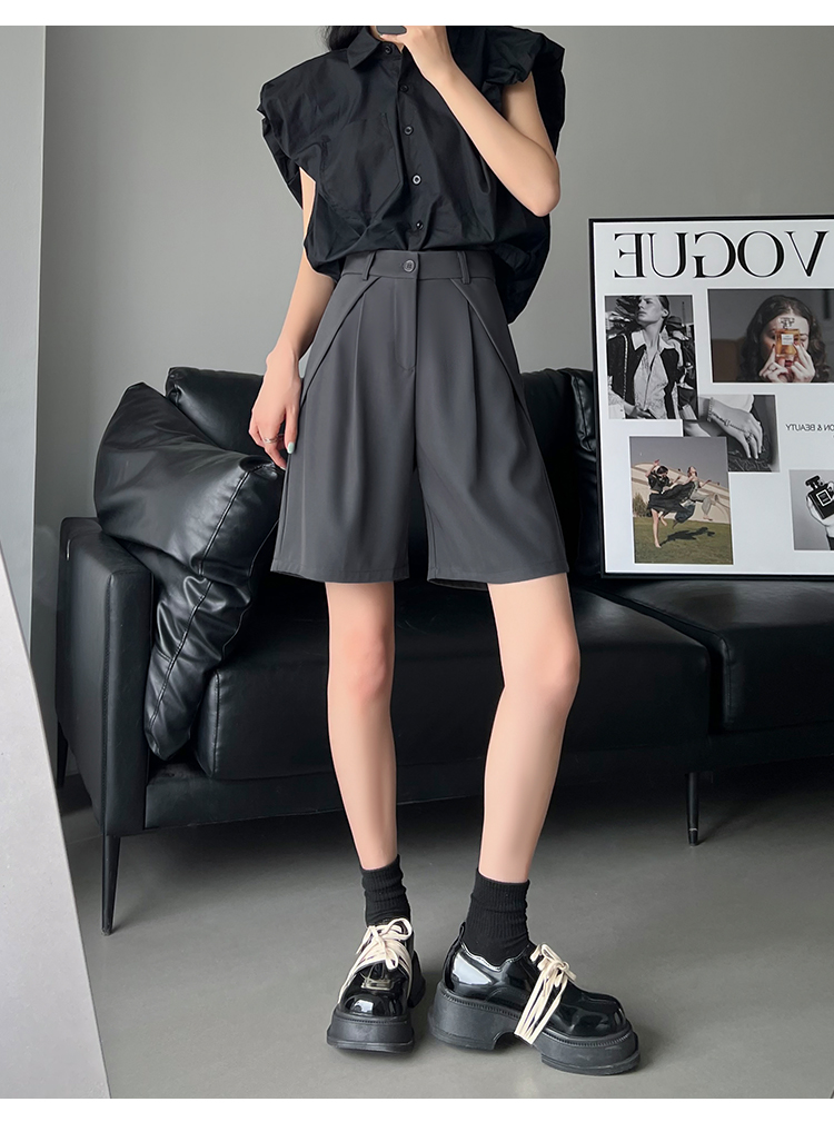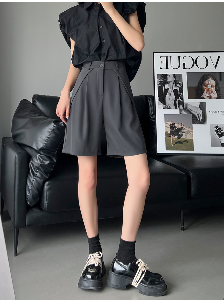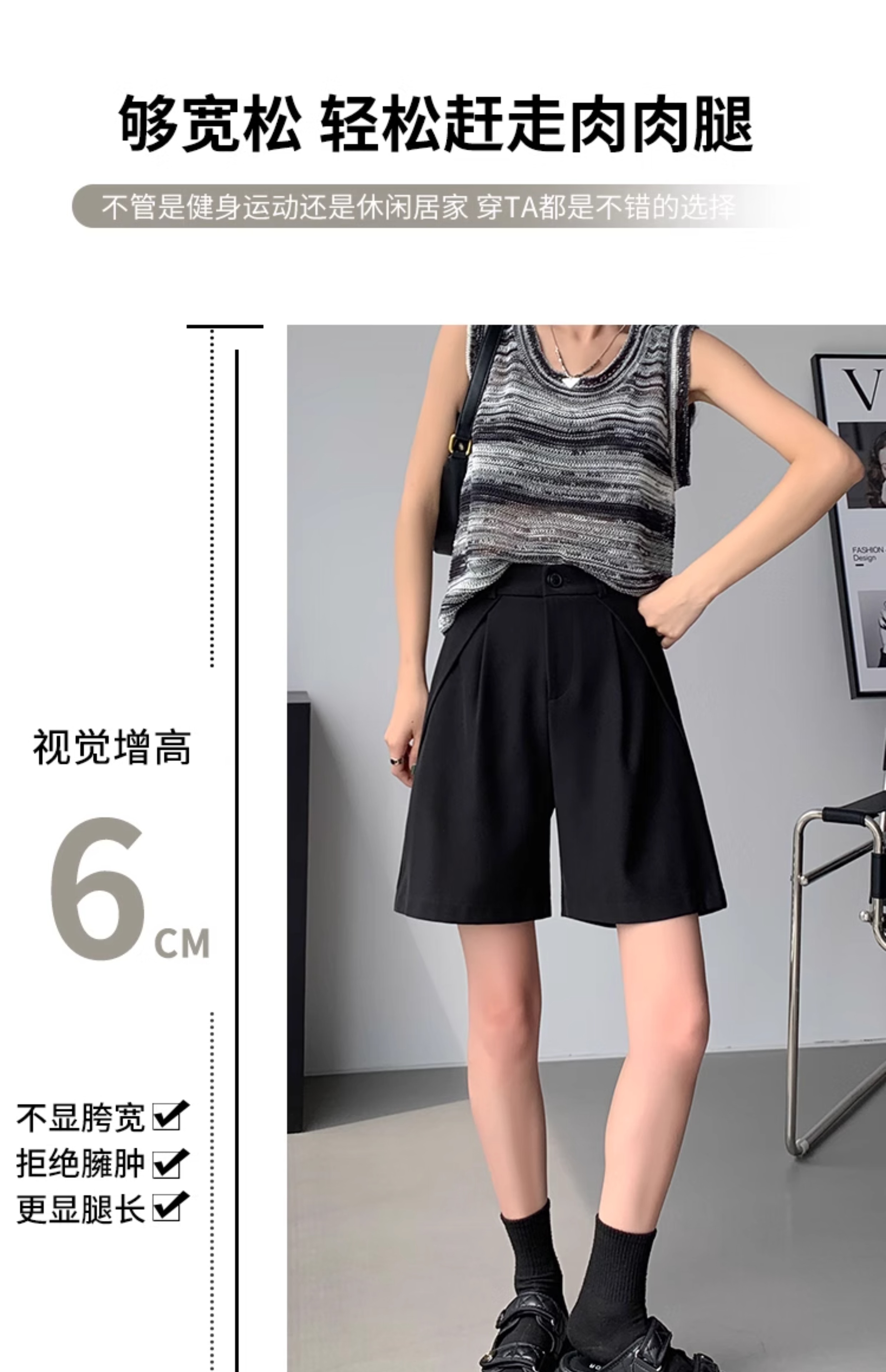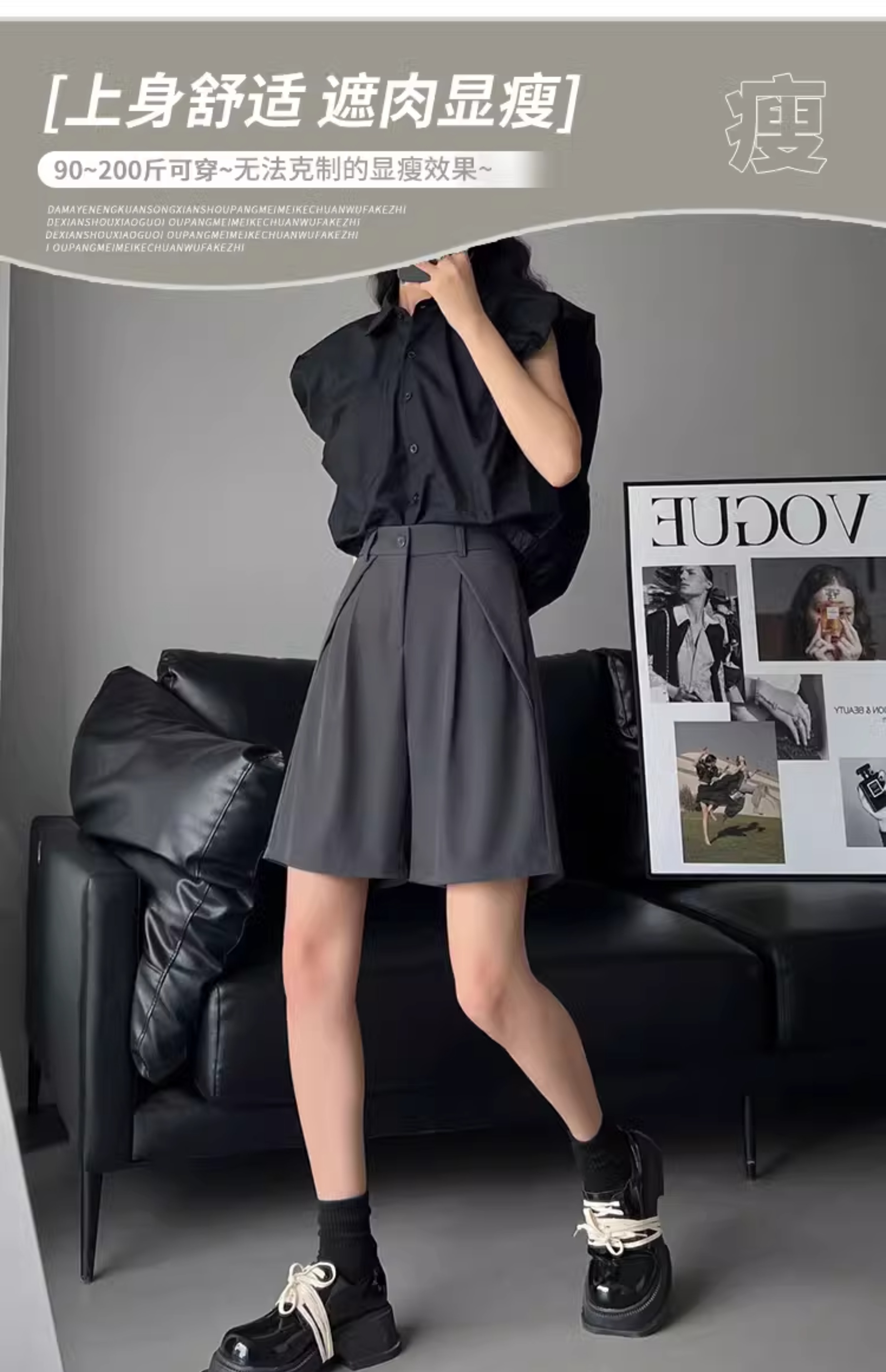短裤大码女胖mm夏季高腰宽松显瘦大码梨型身材冰丝阔腿五分西装裤