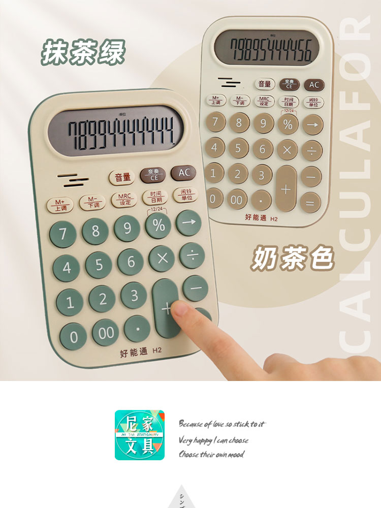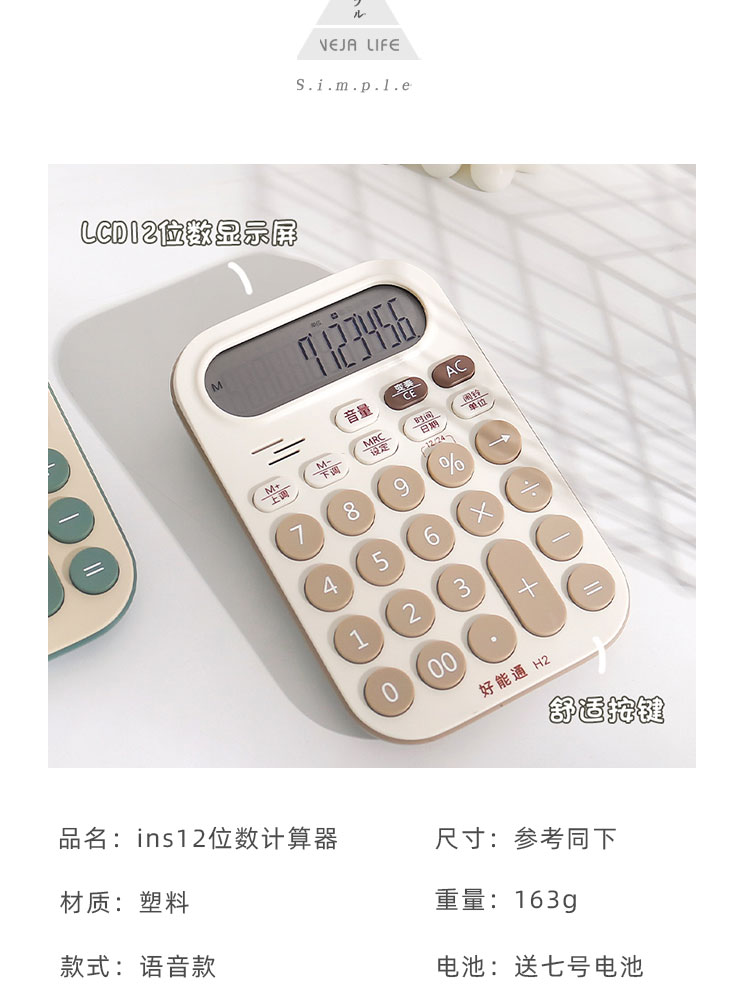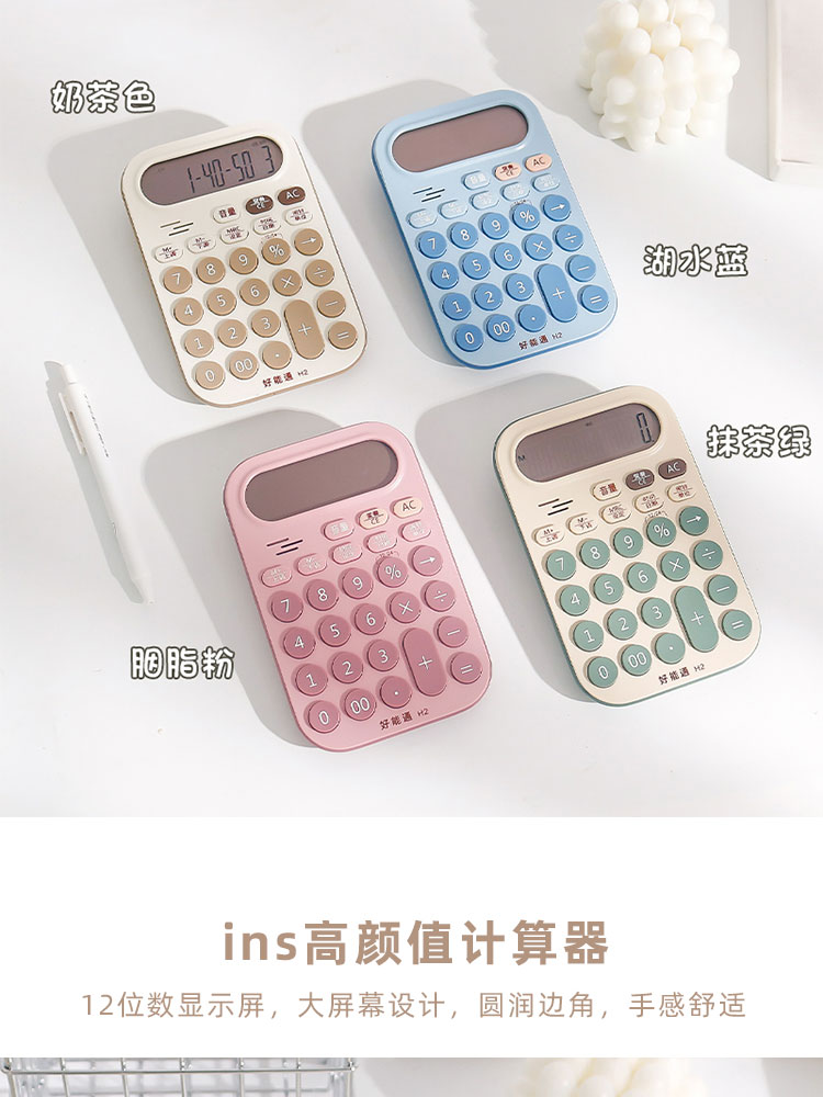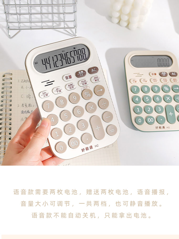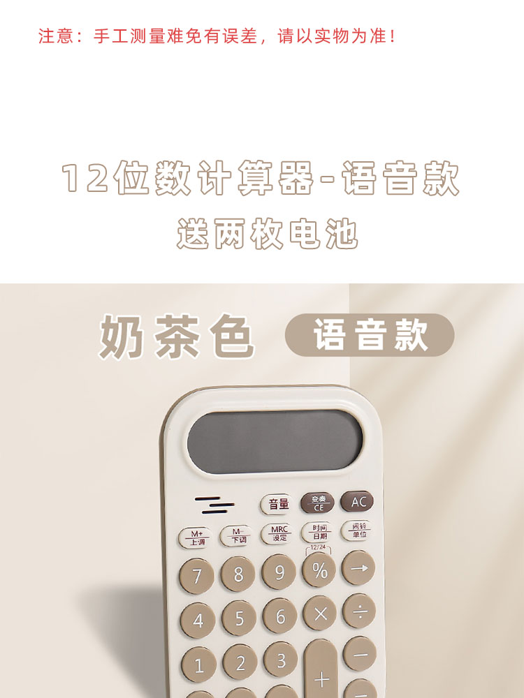 奶茶色计算器12位语音款财务会计办公专用大号多功能大学生计算机