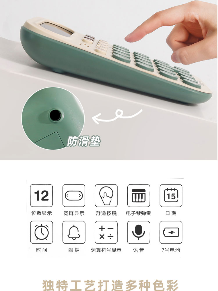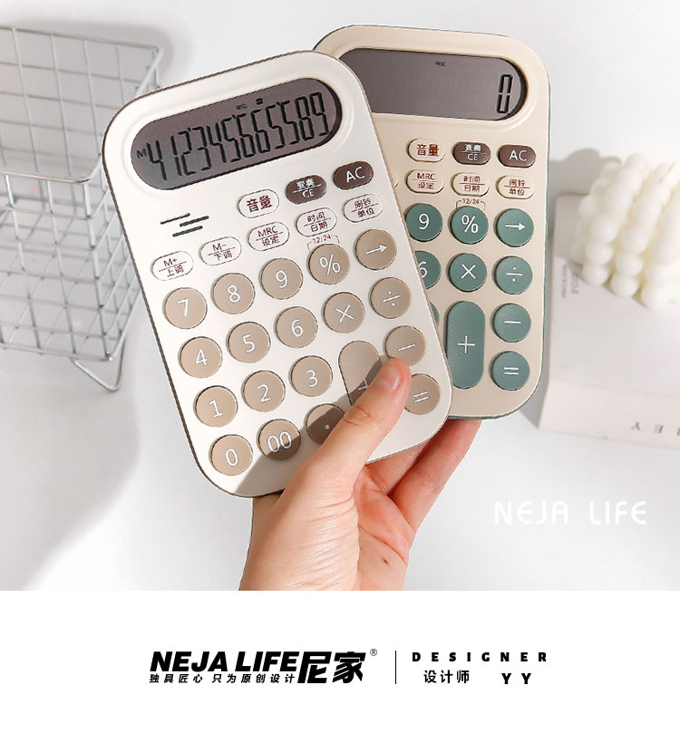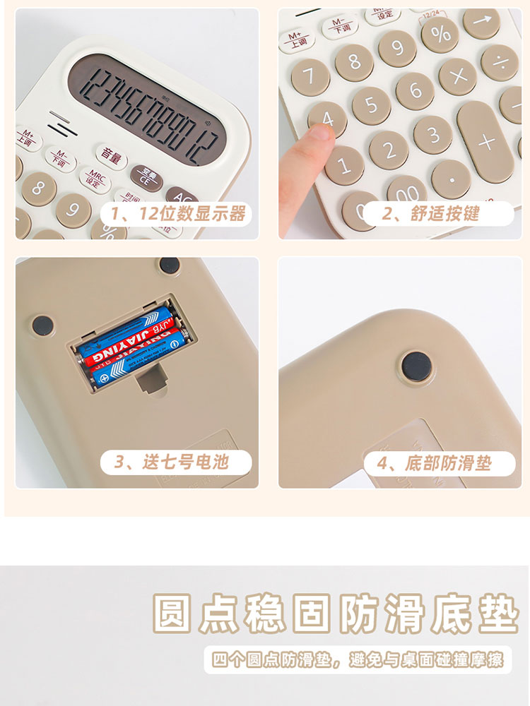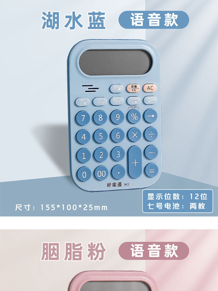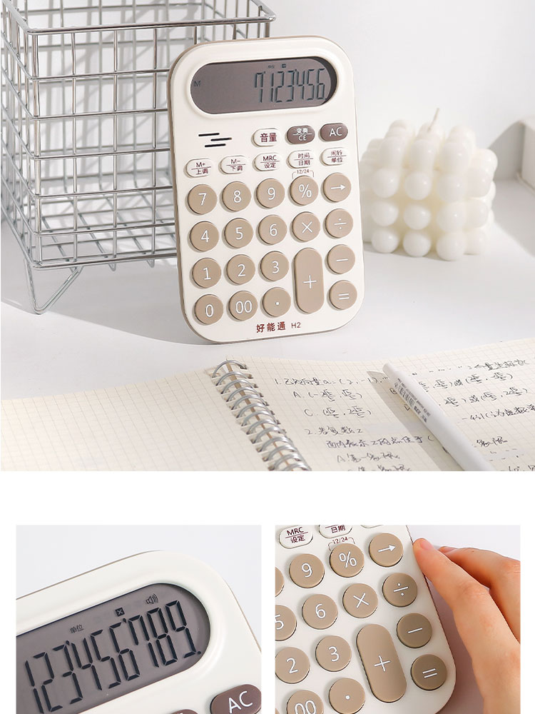 奶茶色计算器12位语音款财务会计办公专用大号多功能大学生计算机