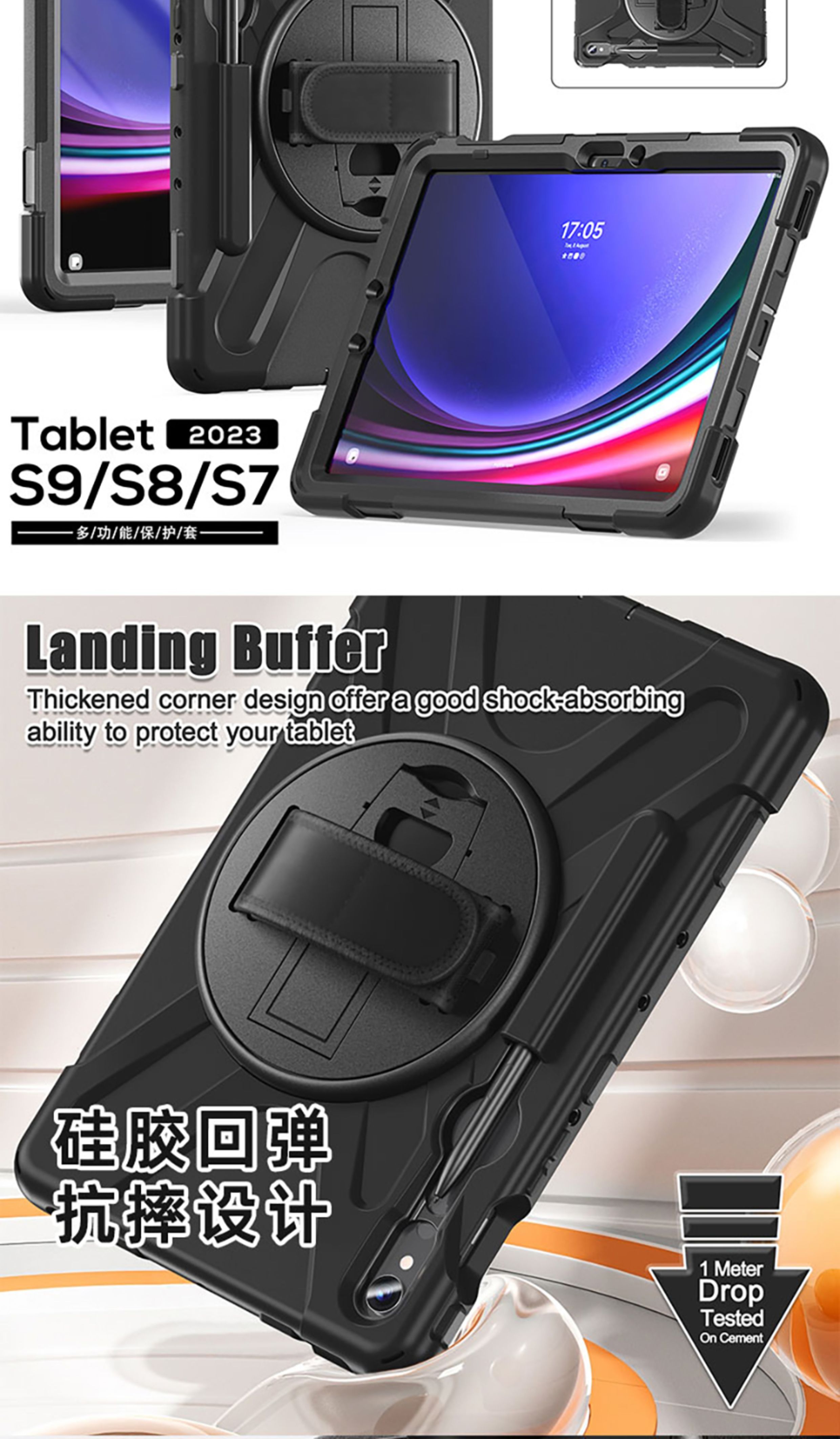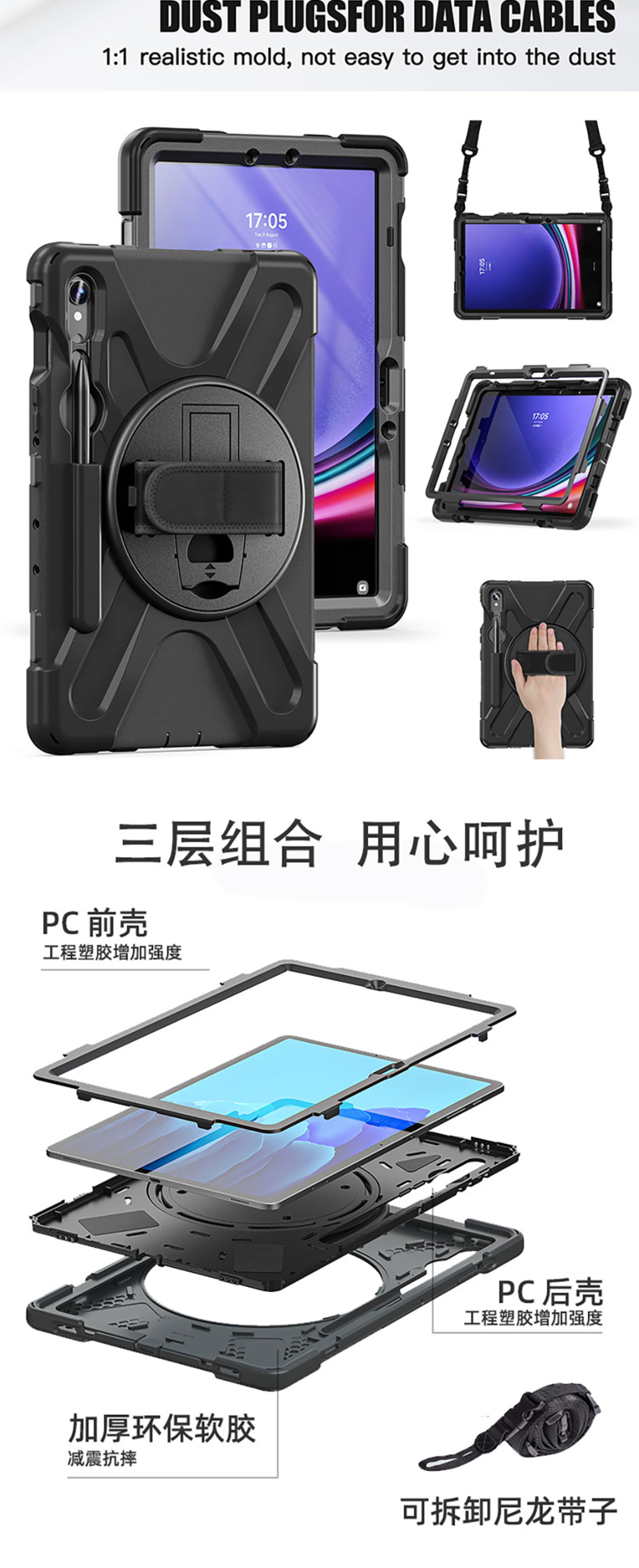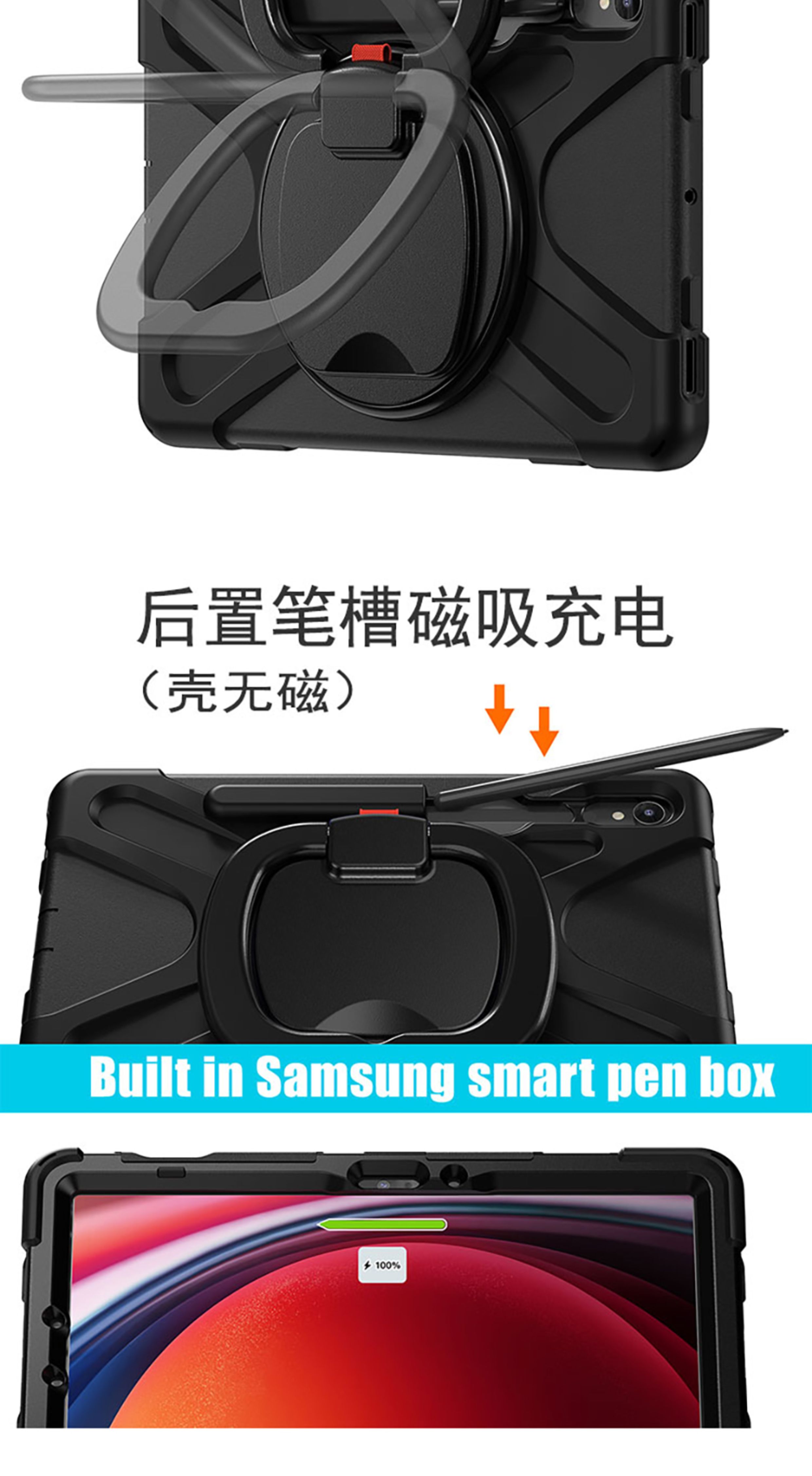 适用于三星平板S9 Ultra 2023 X910 14.6寸保护套Tab S7 8 9 X710保护壳带笔槽防摔手持硅胶旋转支架无磁商务