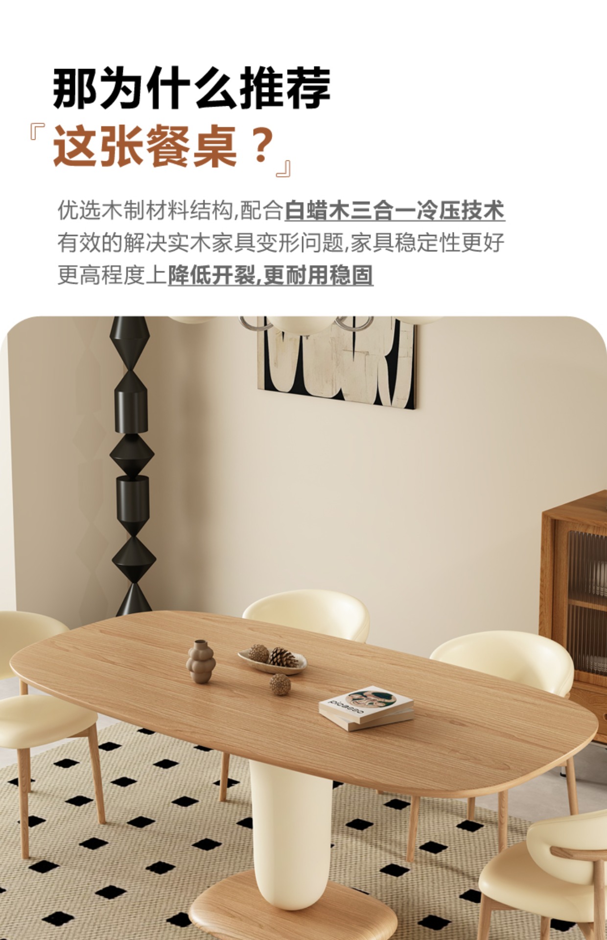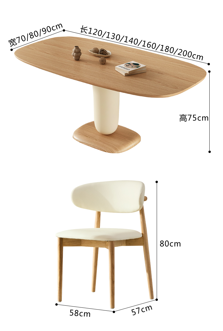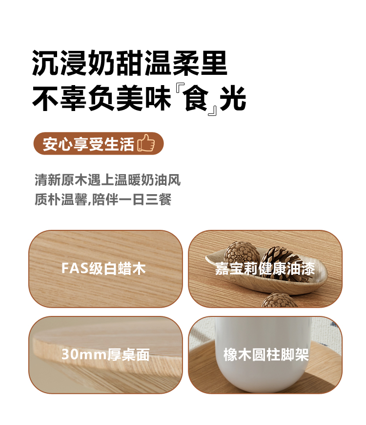 北欧奶油风原木长方形实木餐桌椅组合家用网红高端大小户型吃饭桌