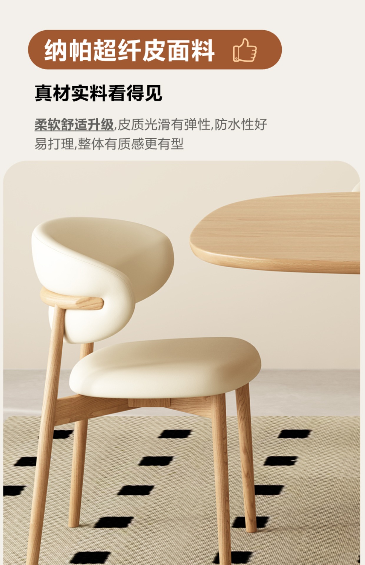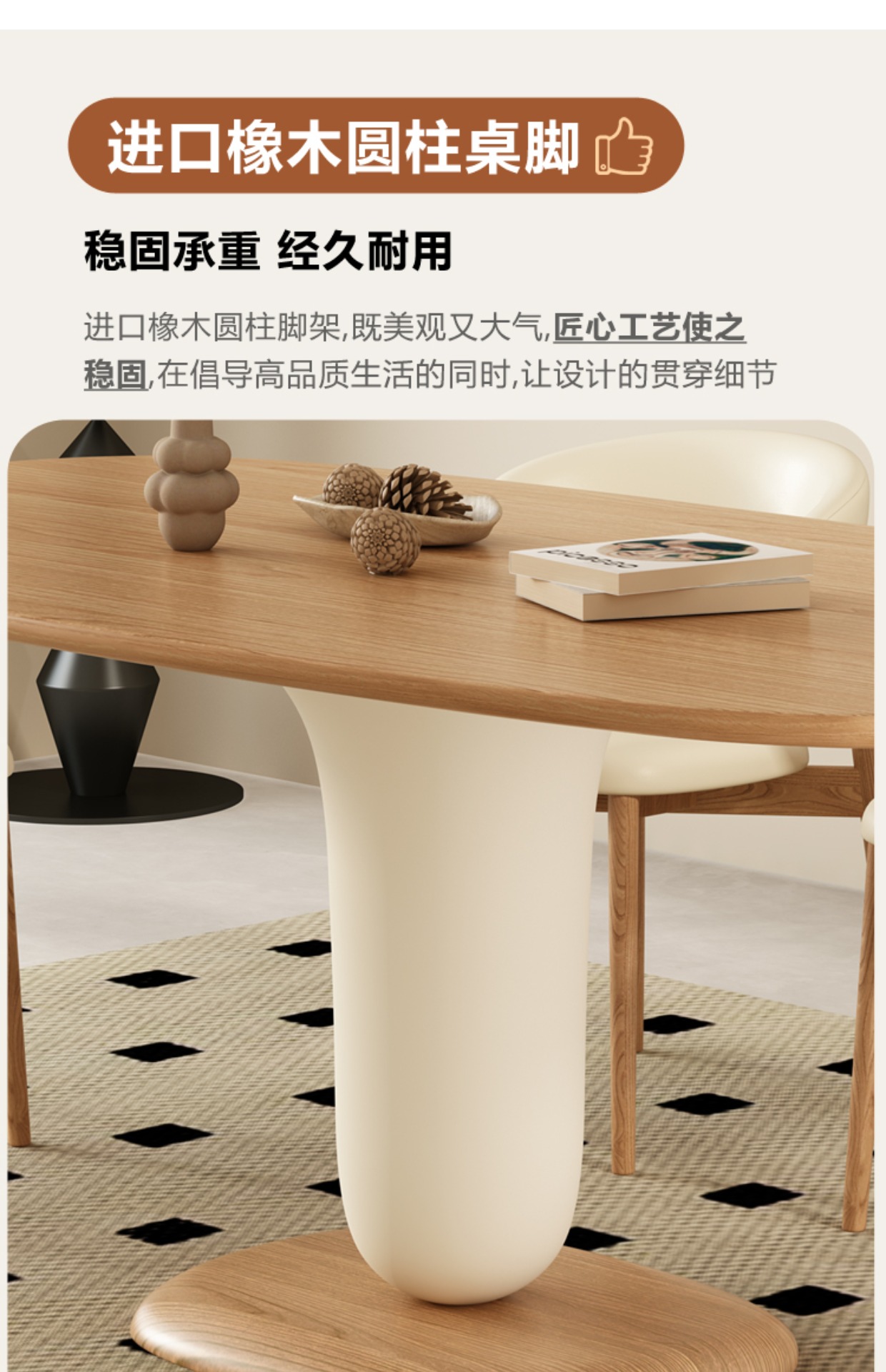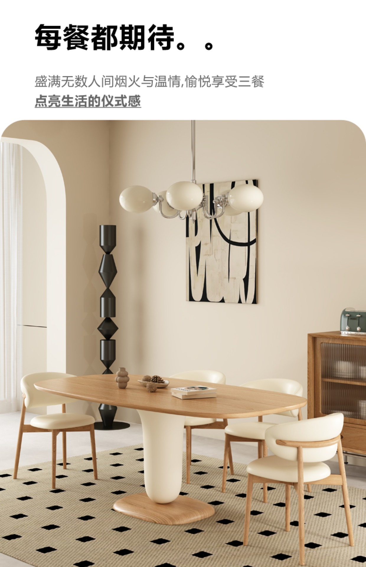 北欧奶油风原木长方形实木餐桌椅组合家用网红高端大小户型吃饭桌