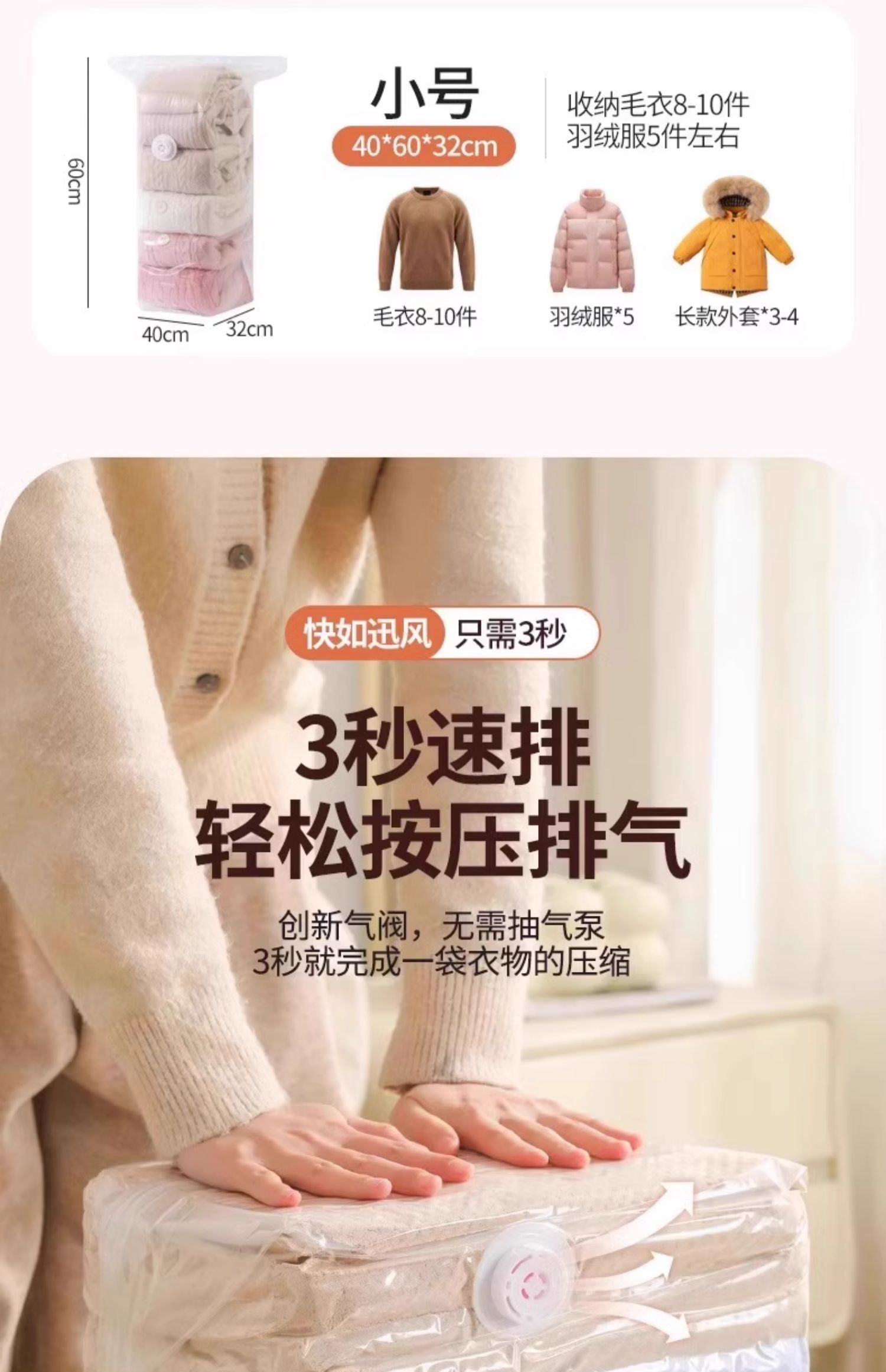 真空压缩袋立体式加厚衣服被子外套家居宿舍整理收纳袋装免抽气