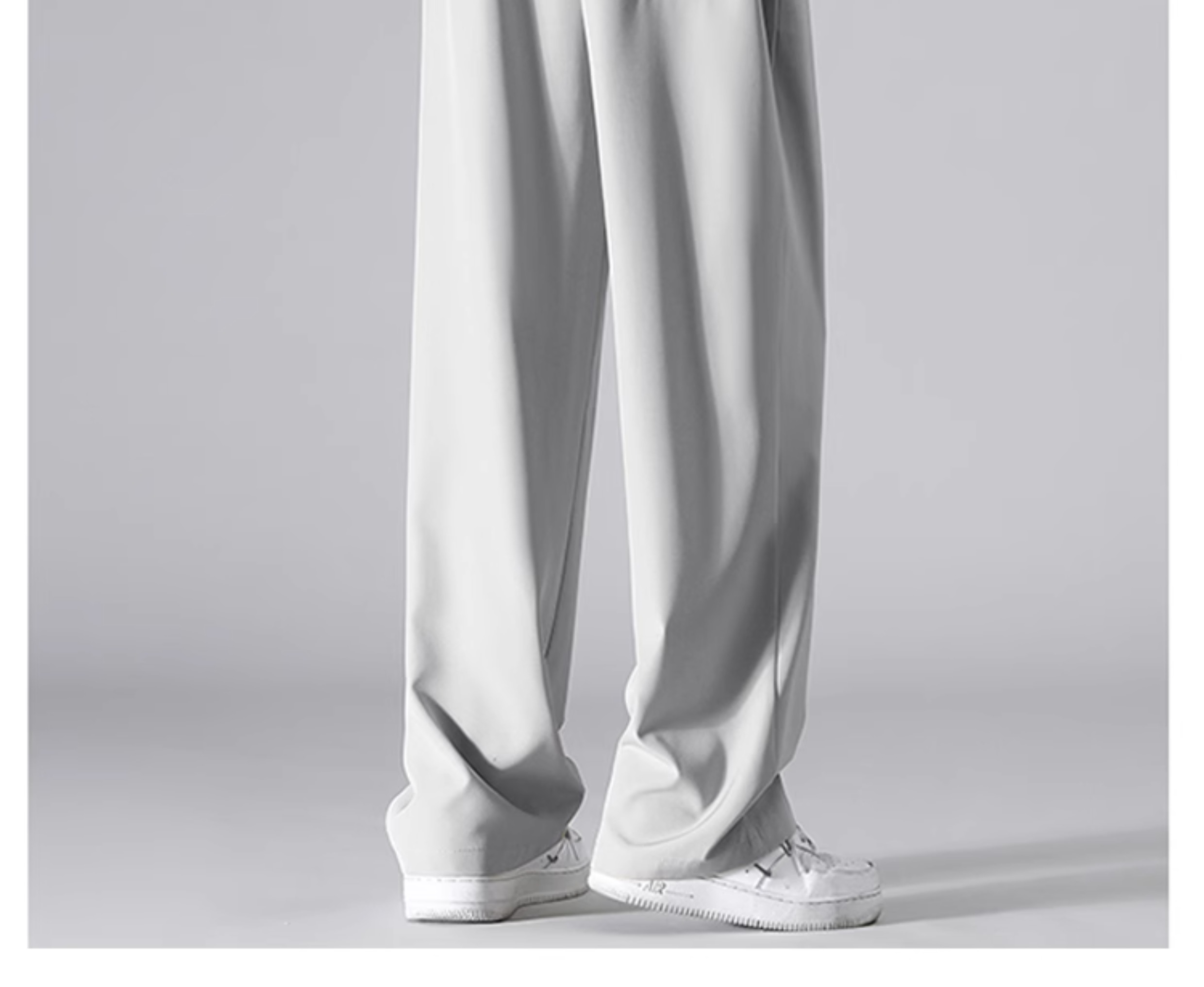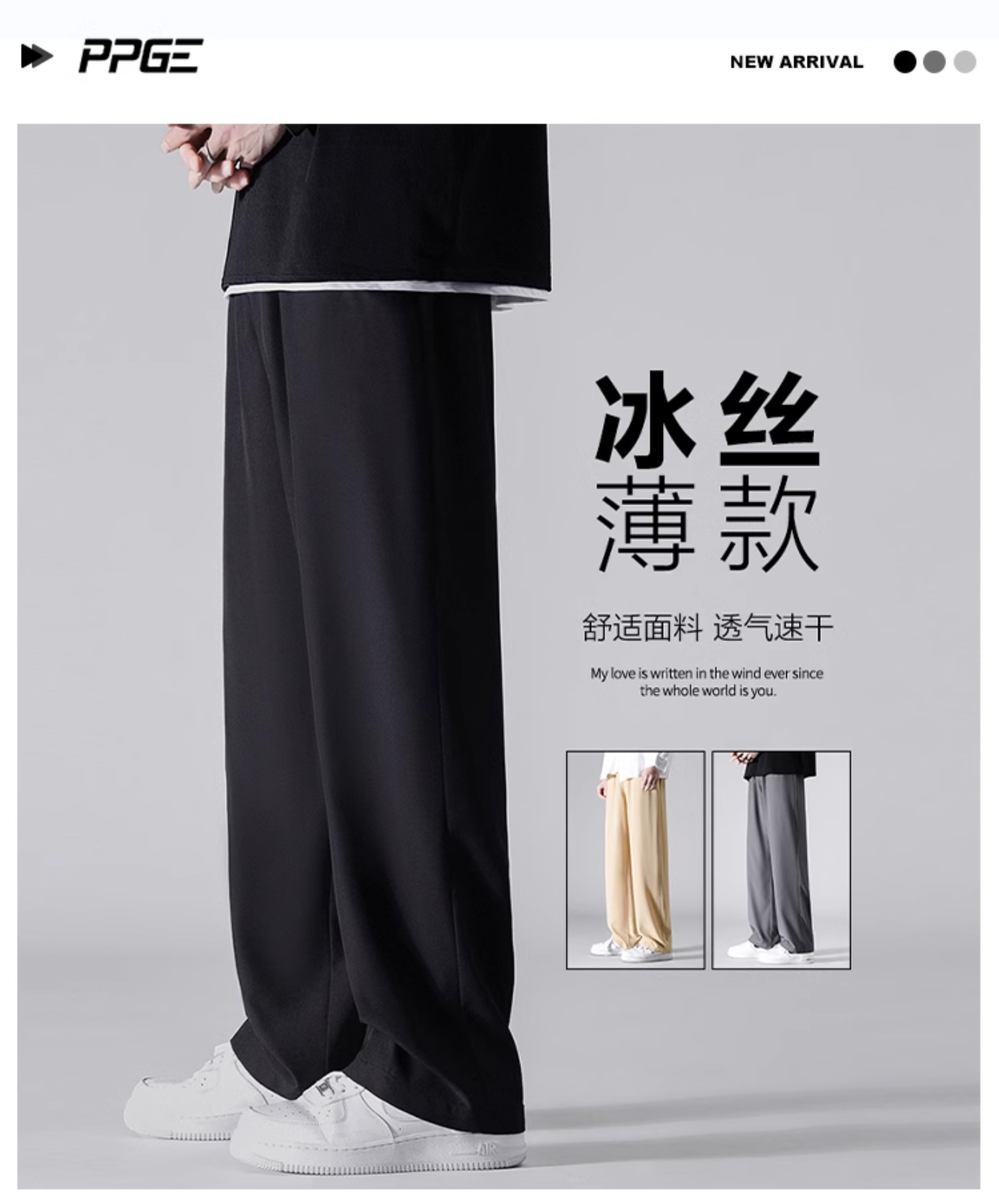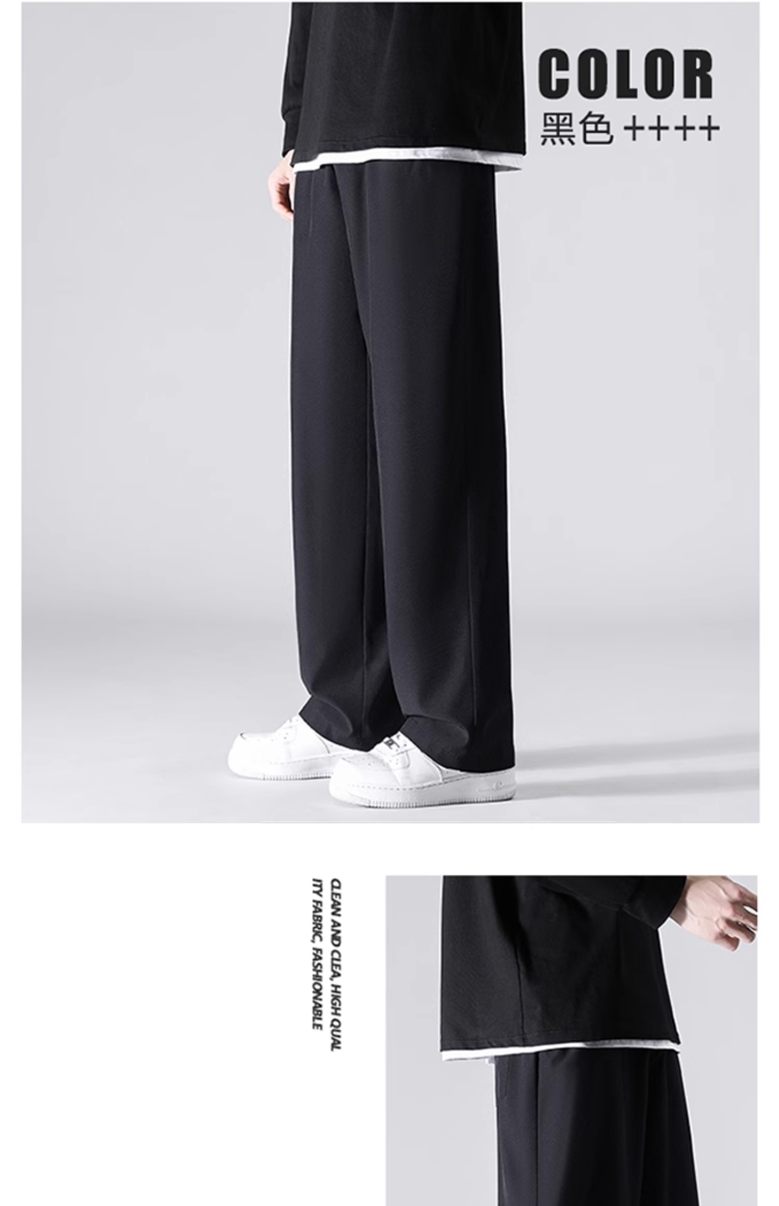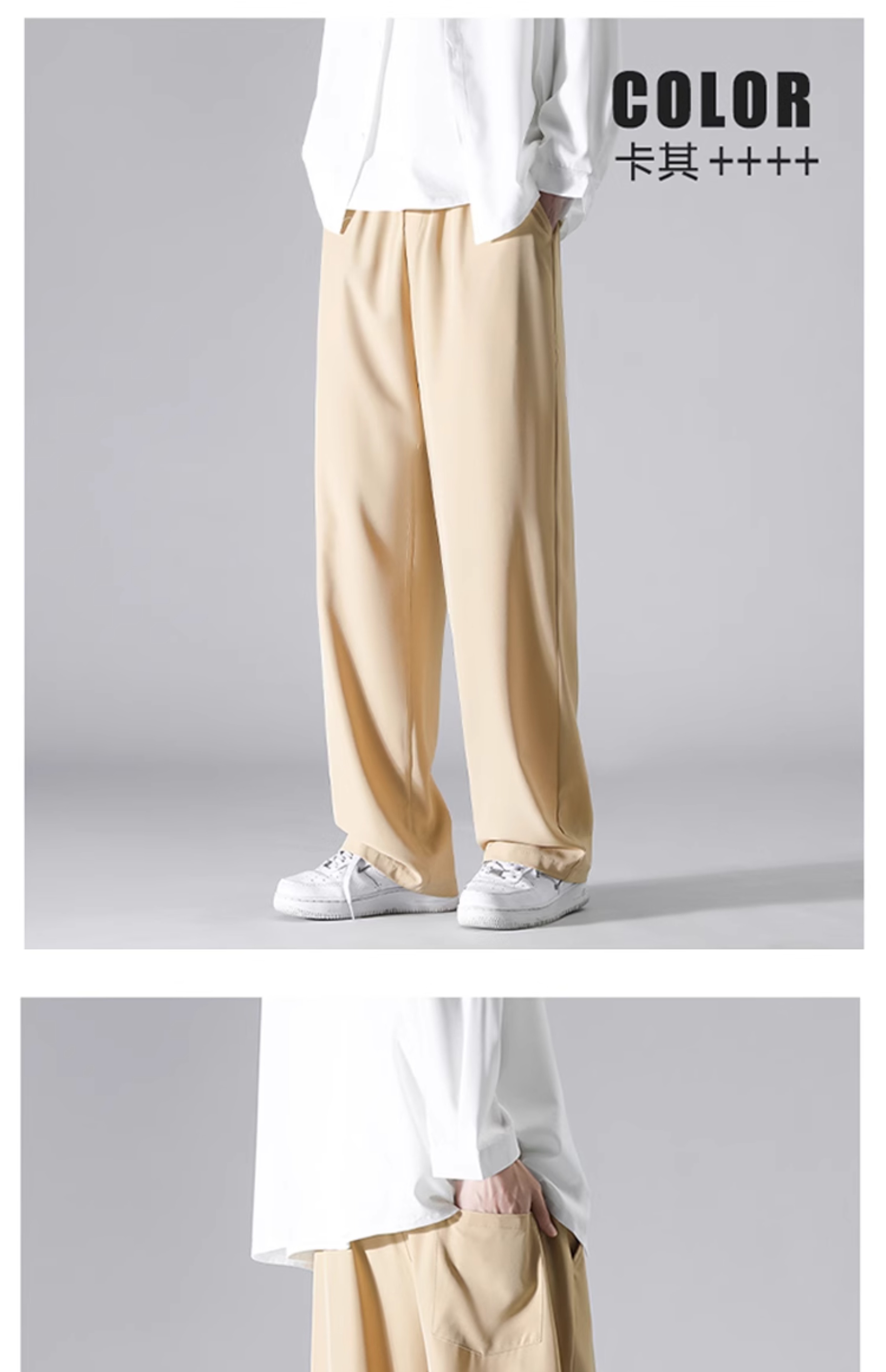 胖胖哥夏季垂感冰丝裤子男士新款潮牌宽松大码高级感直筒薄款西裤