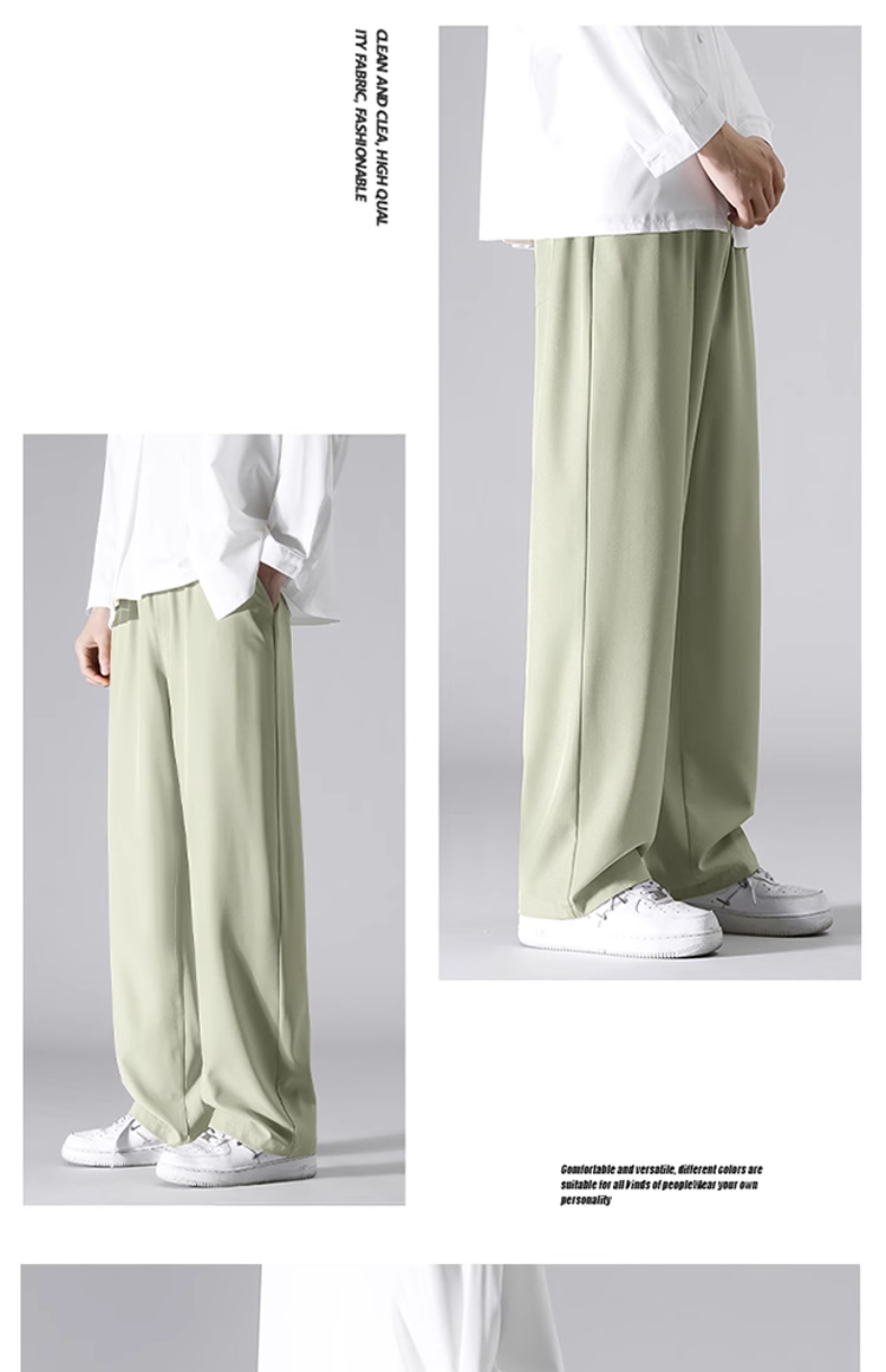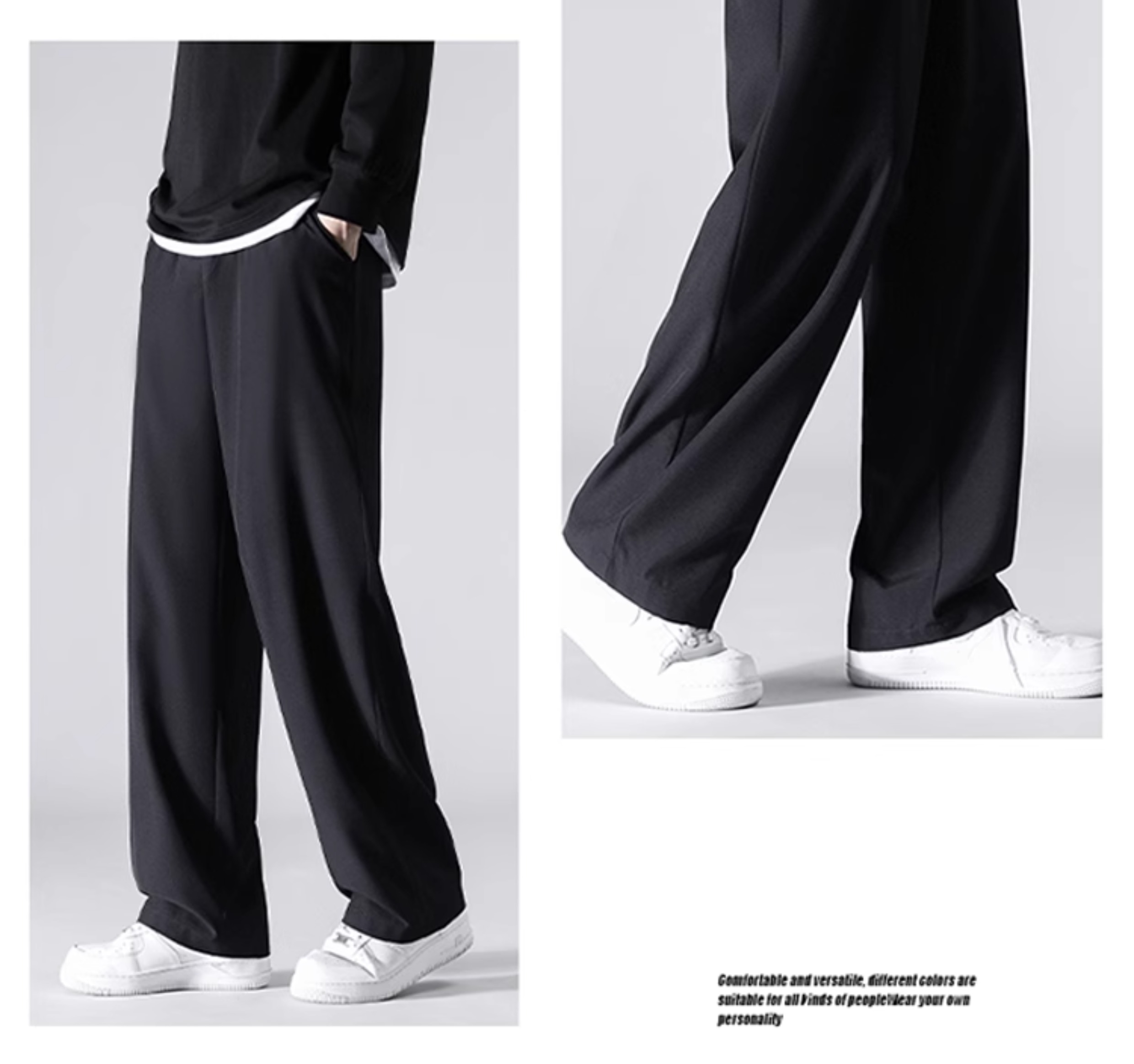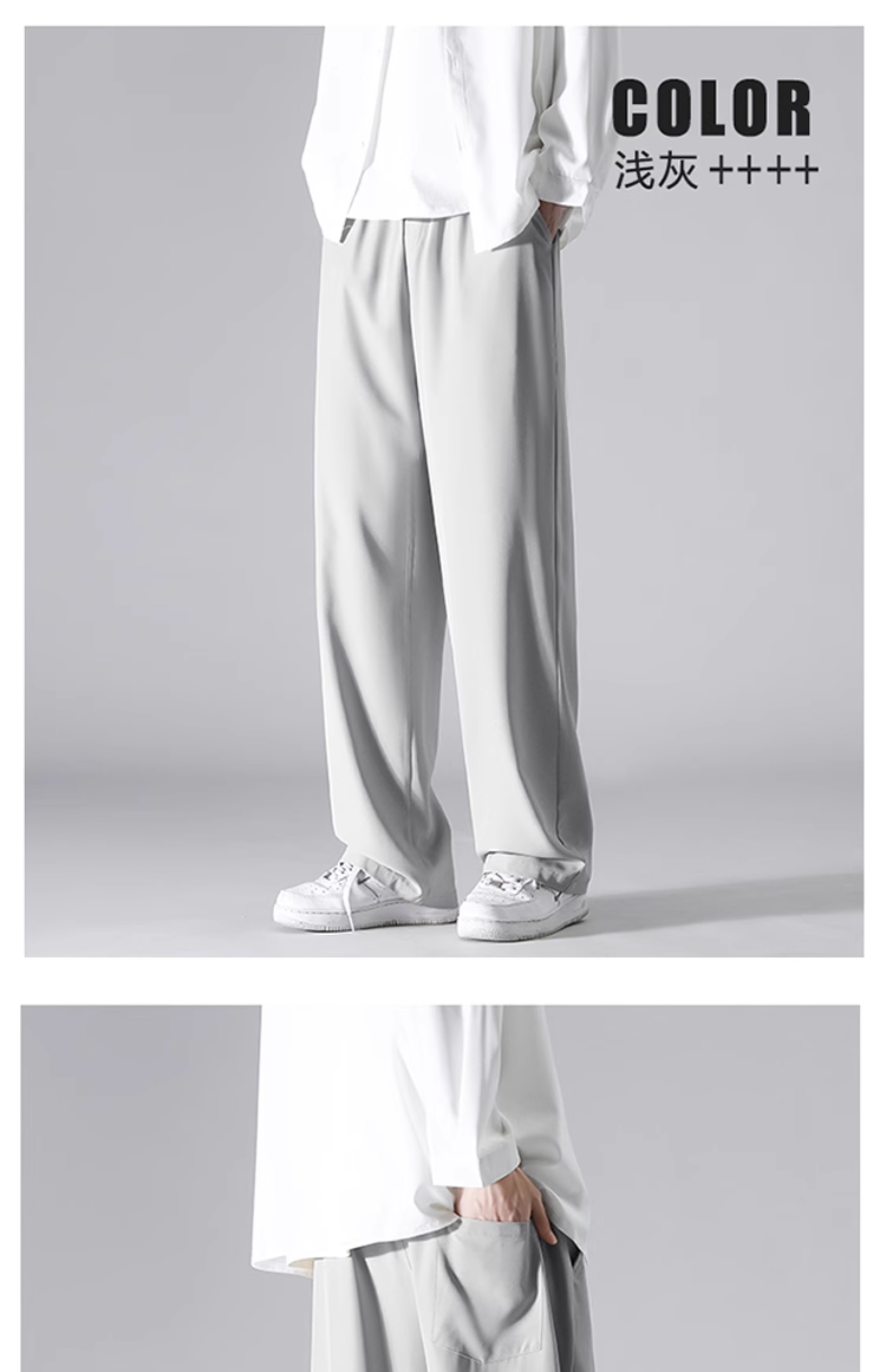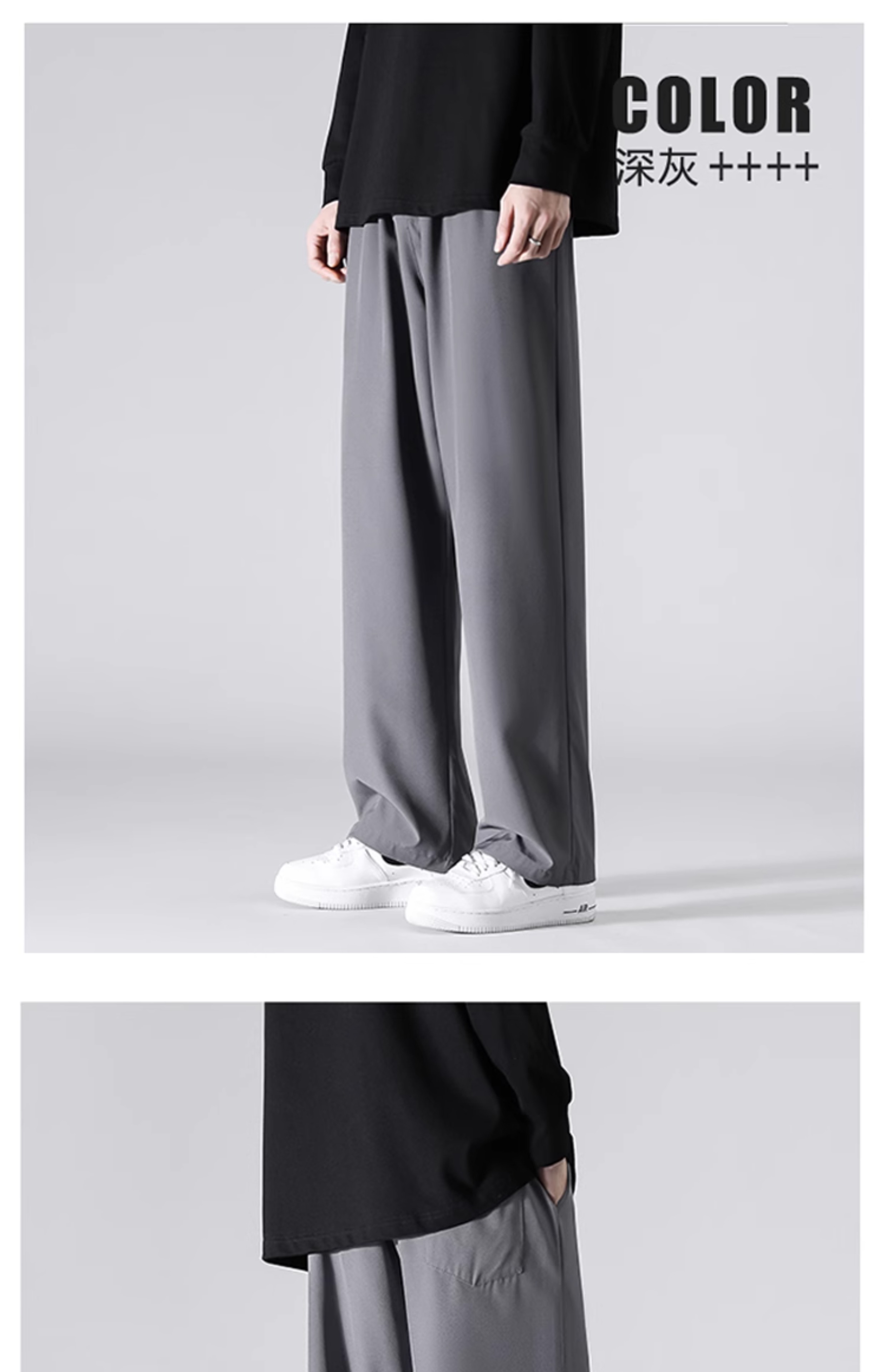 胖胖哥夏季垂感冰丝裤子男士新款潮牌宽松大码高级感直筒薄款西裤