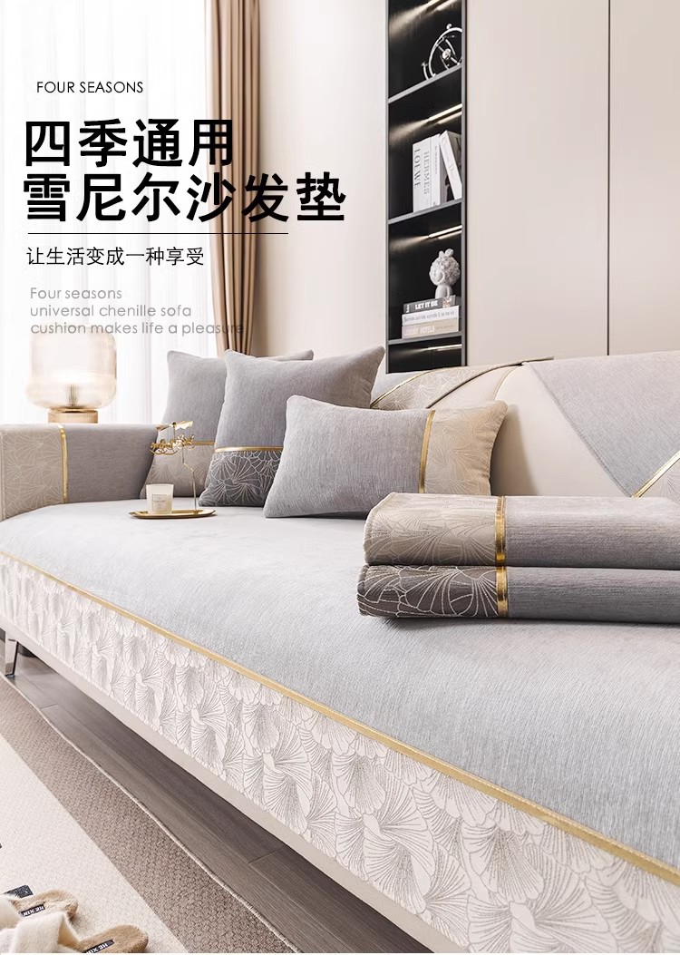 雪尼尔沙发垫四季通用2025新款皮沙发套罩巾固定防滑坐垫子盖布