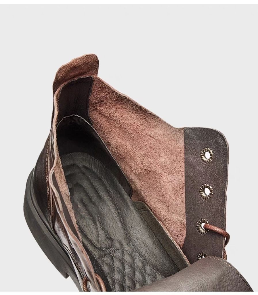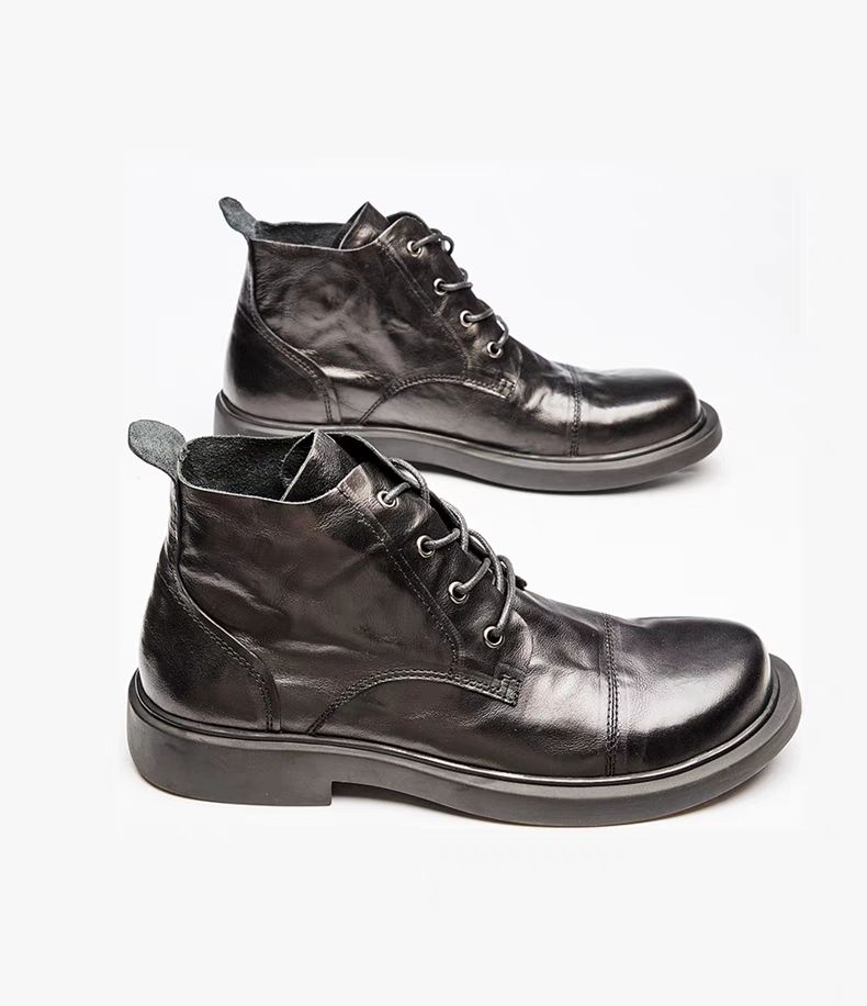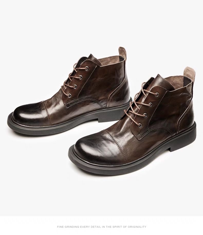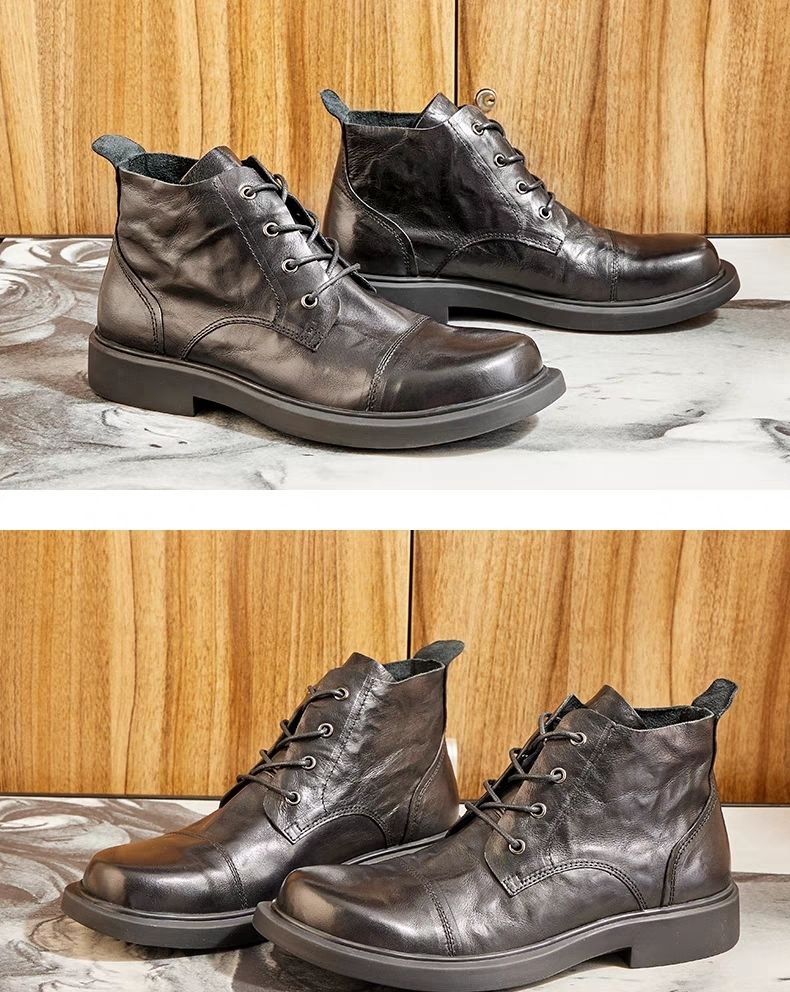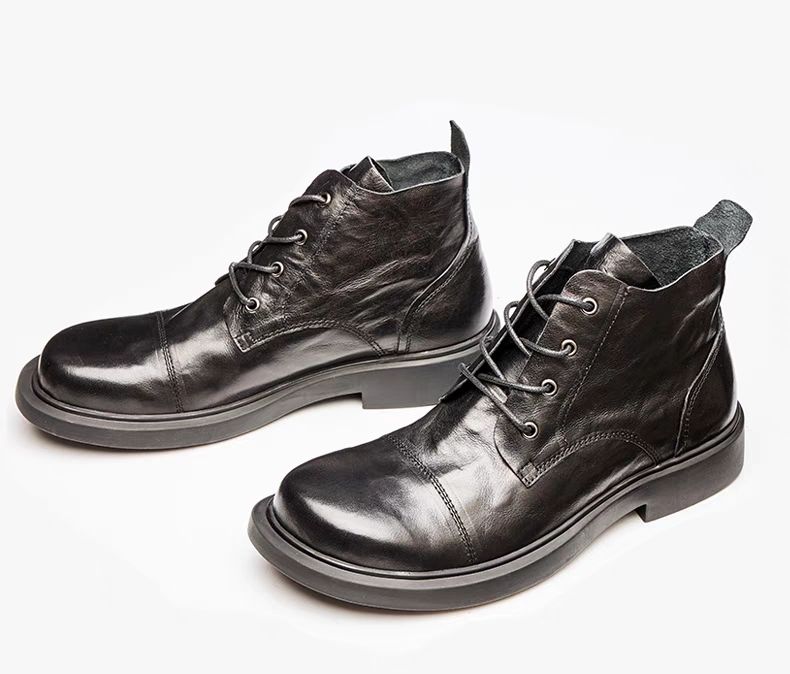新款马丁靴男士真皮软底休闲男靴子商务圆头百搭潮流中帮牛皮皮靴