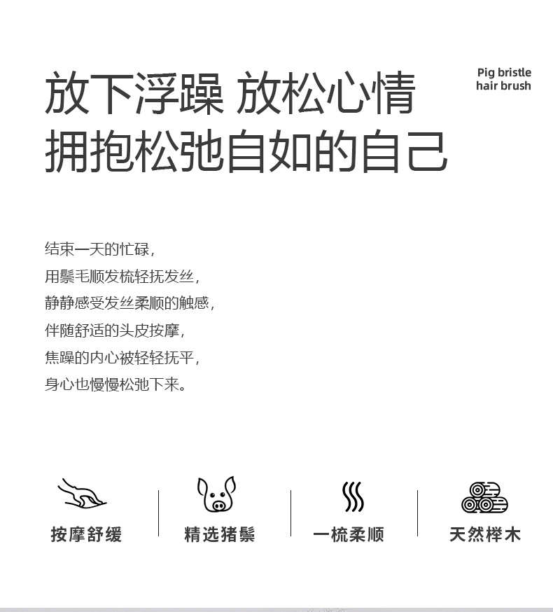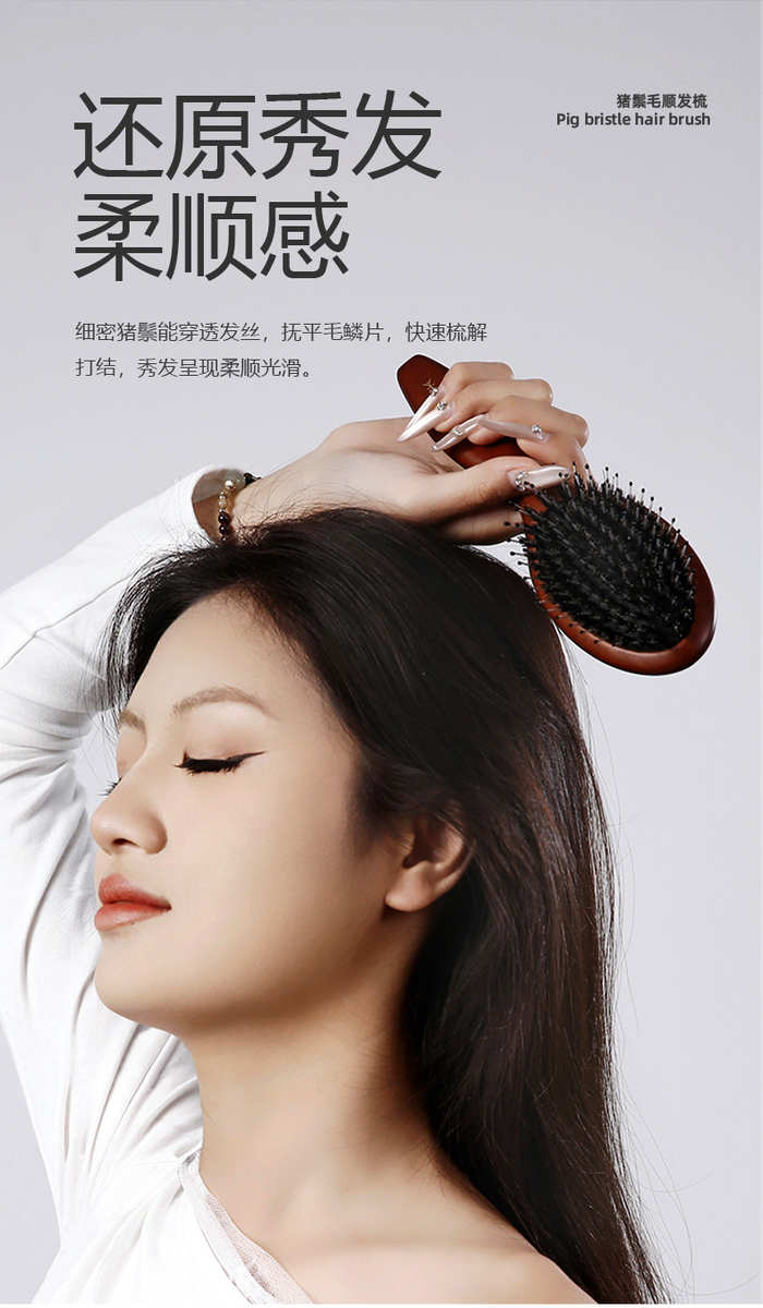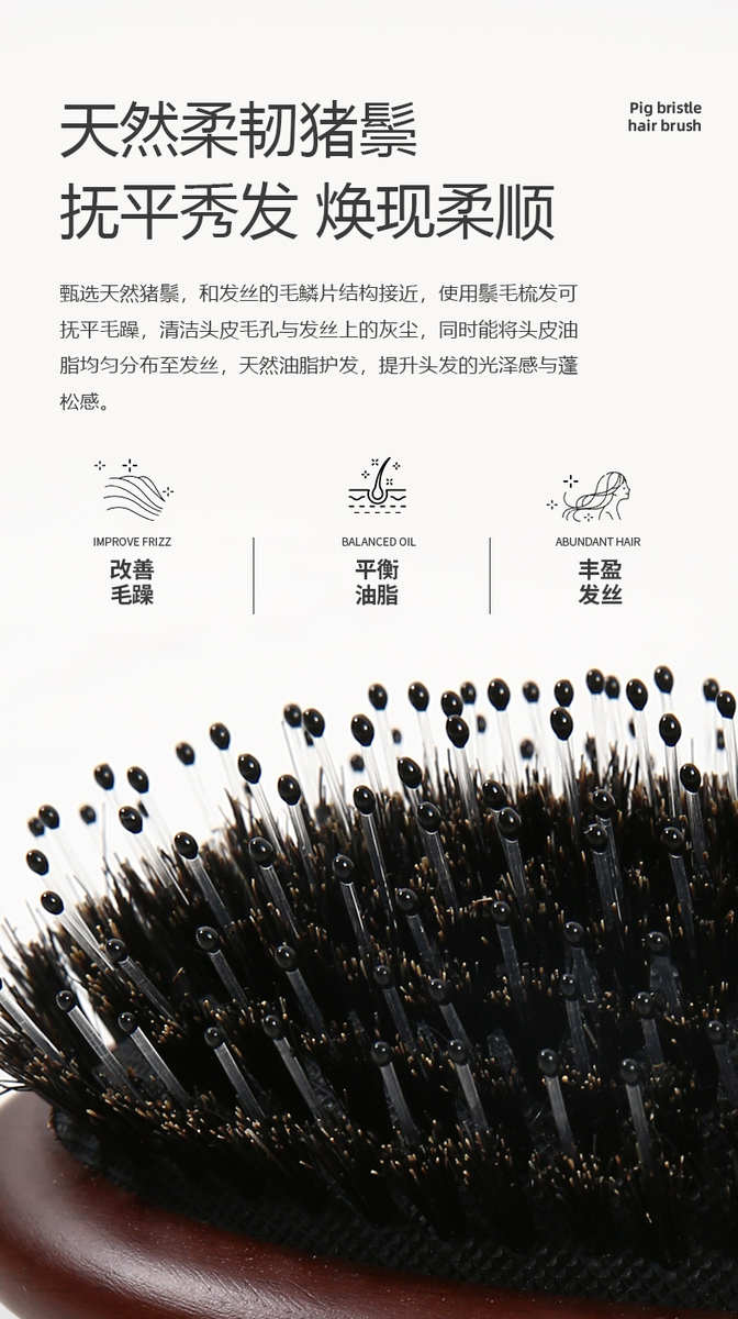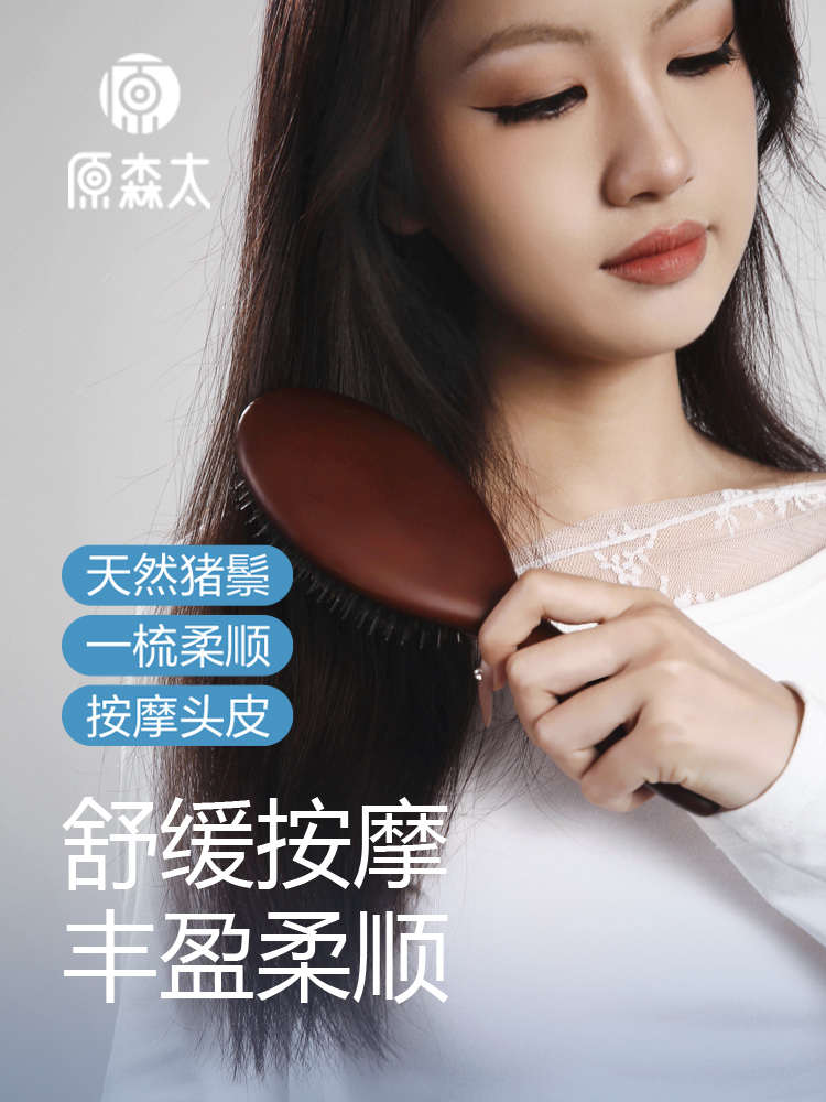 原森太头皮按摩护发猪鬃毛气垫气囊梳防静电女顺美发头部经络梳子